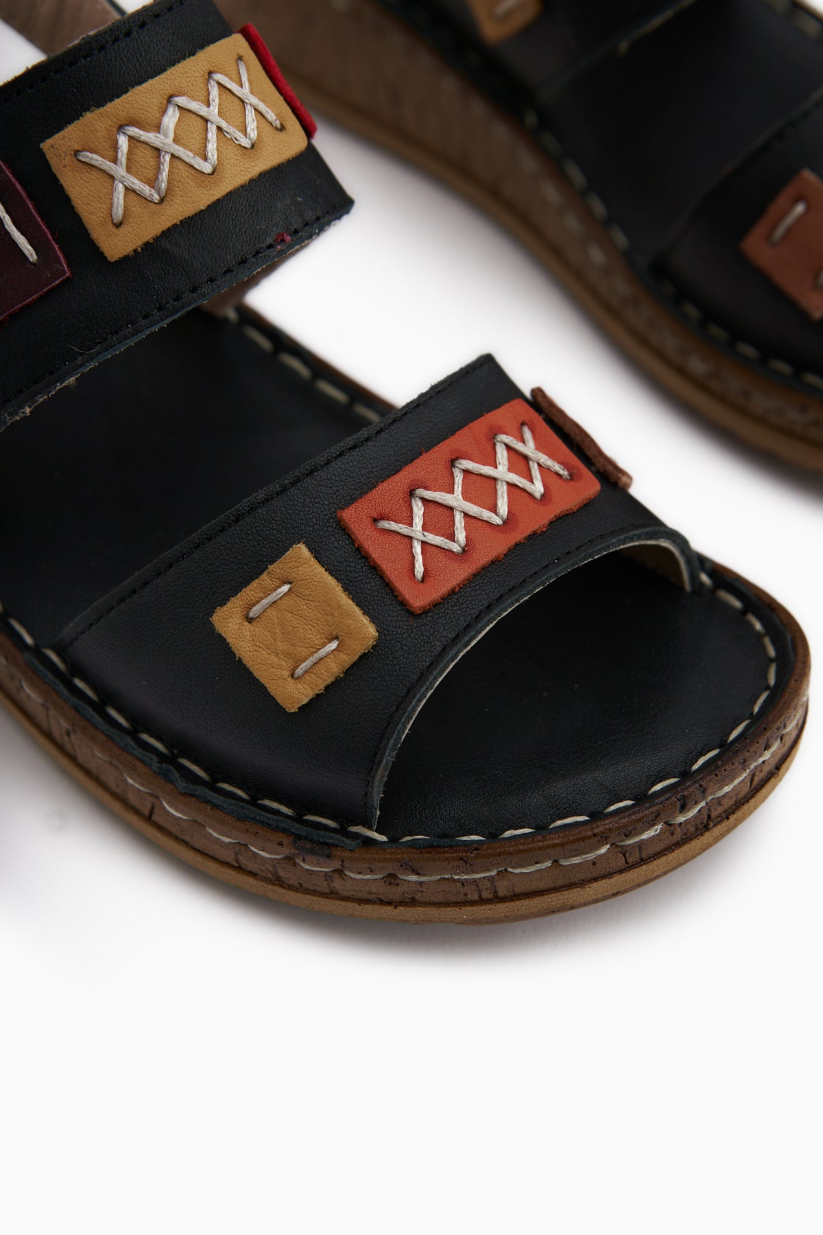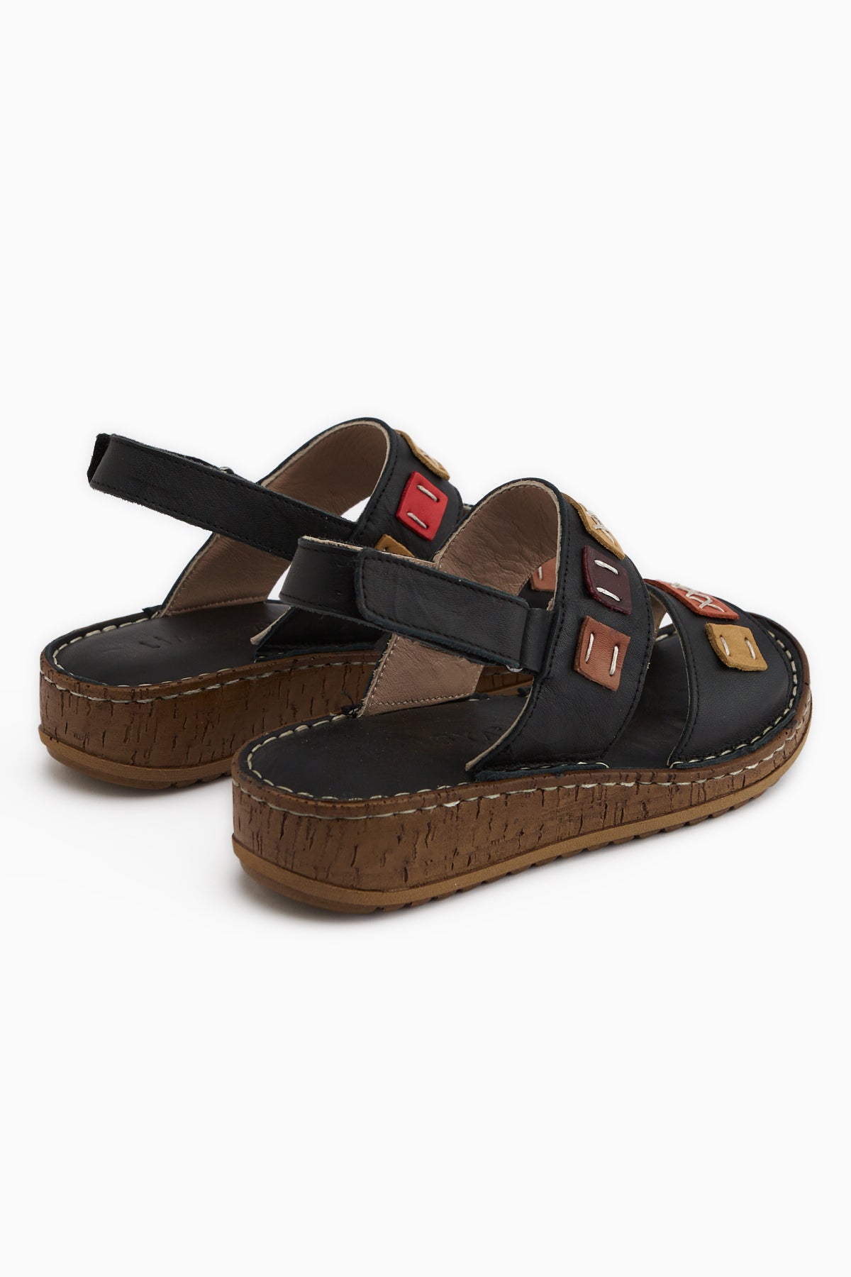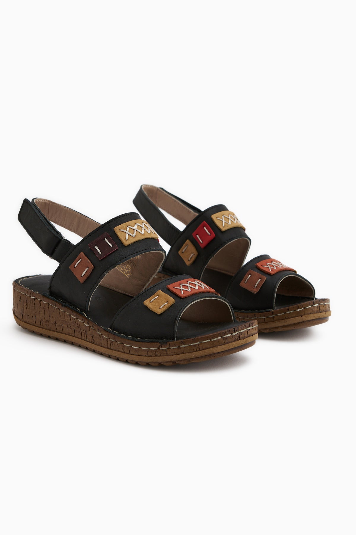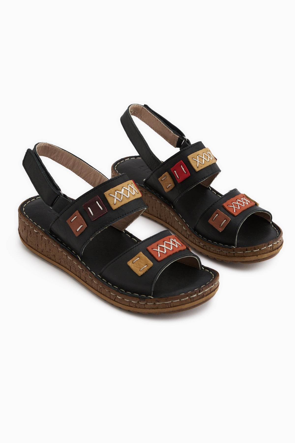 Loreta Hakiki Deri Siyah Çift Bantlı Kadın Sandalet