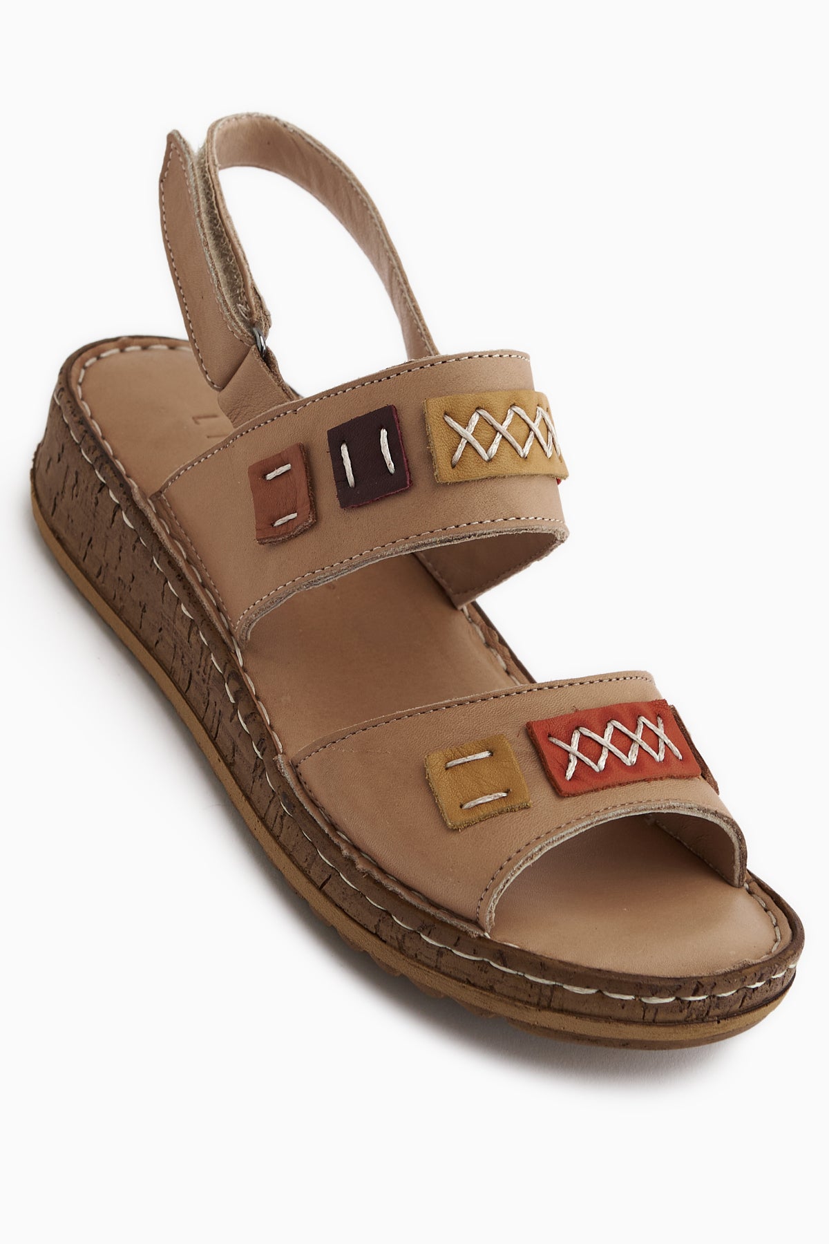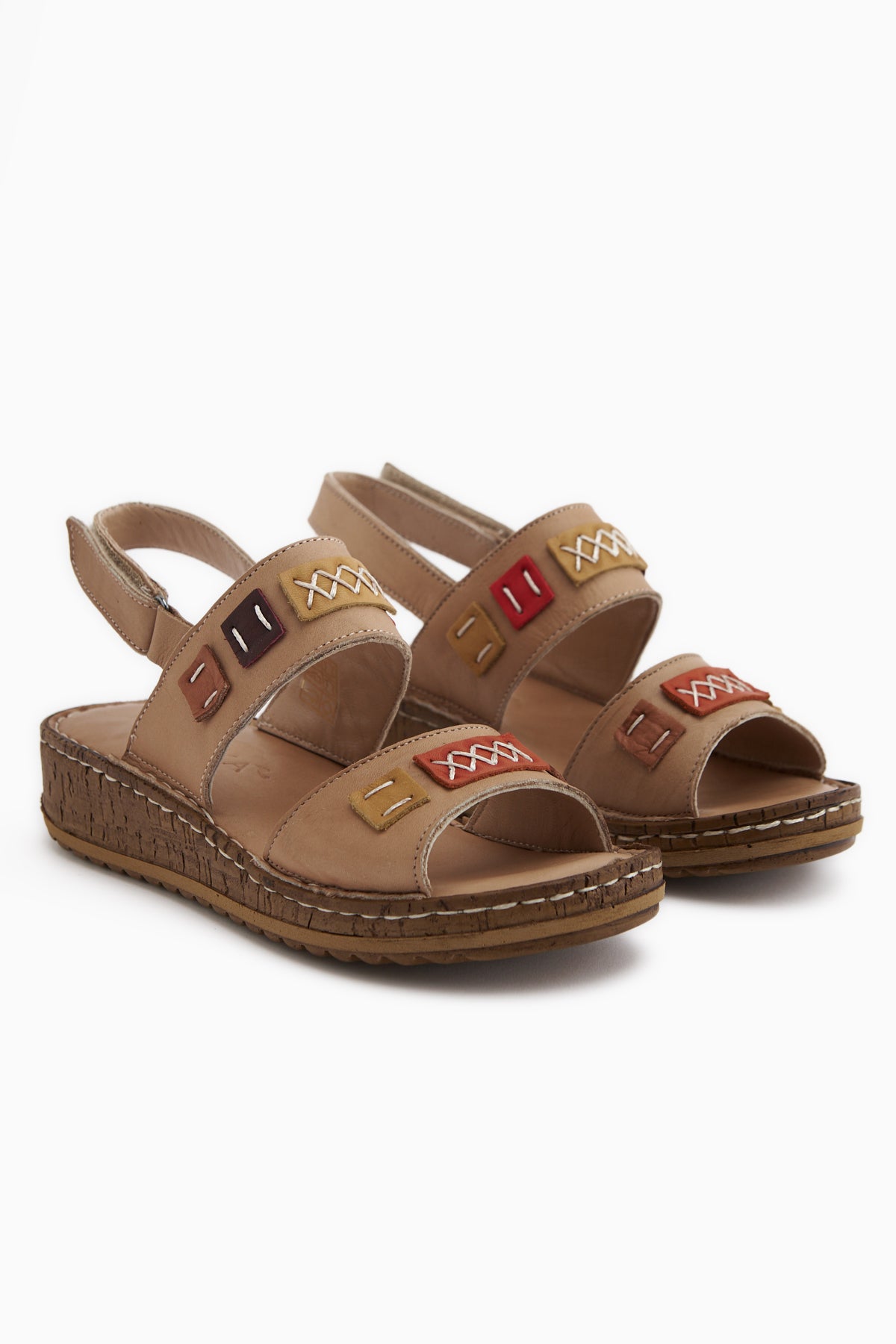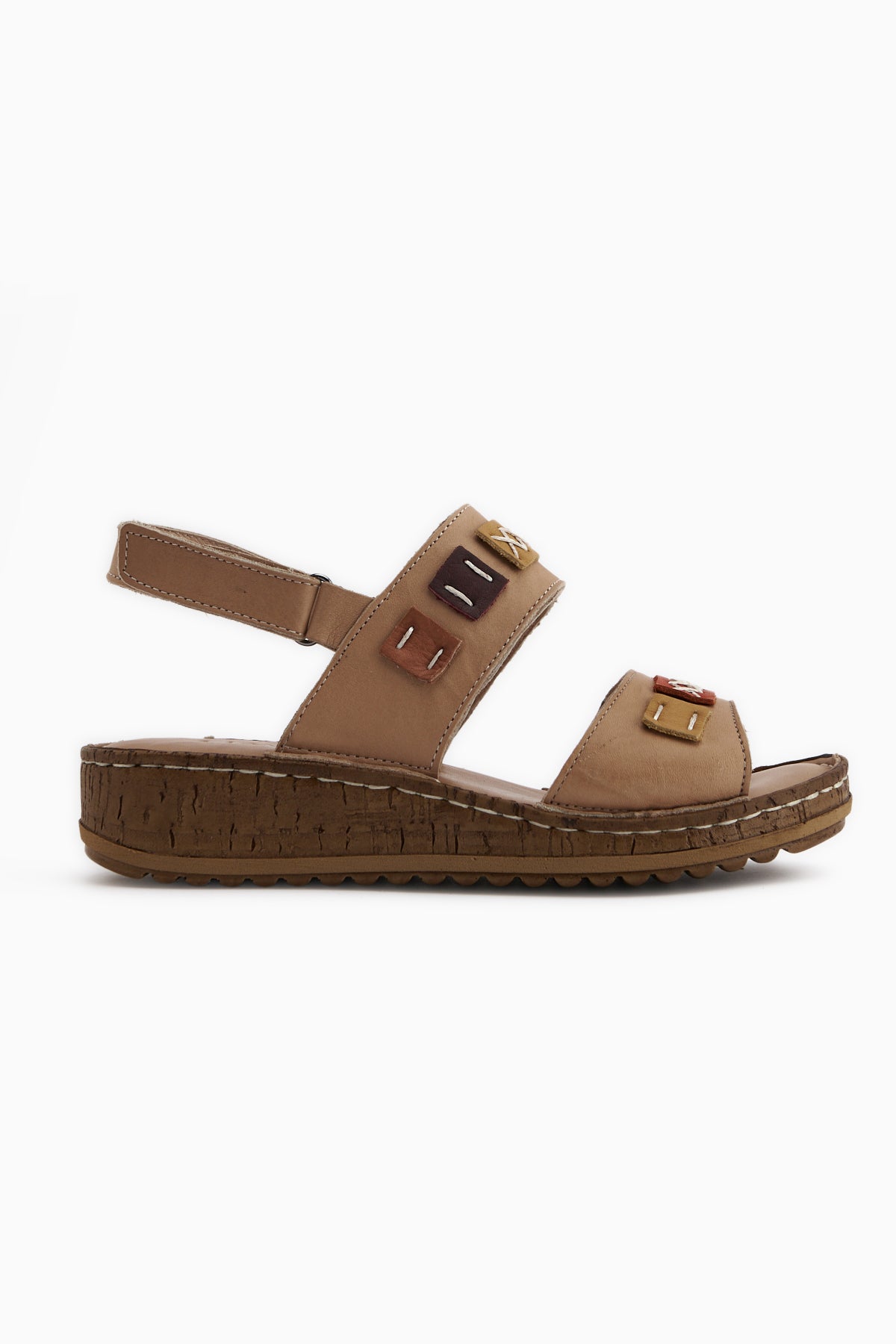 Loreta Hakiki Deri Vizon Çift Bantlı Kadın Sandalet
