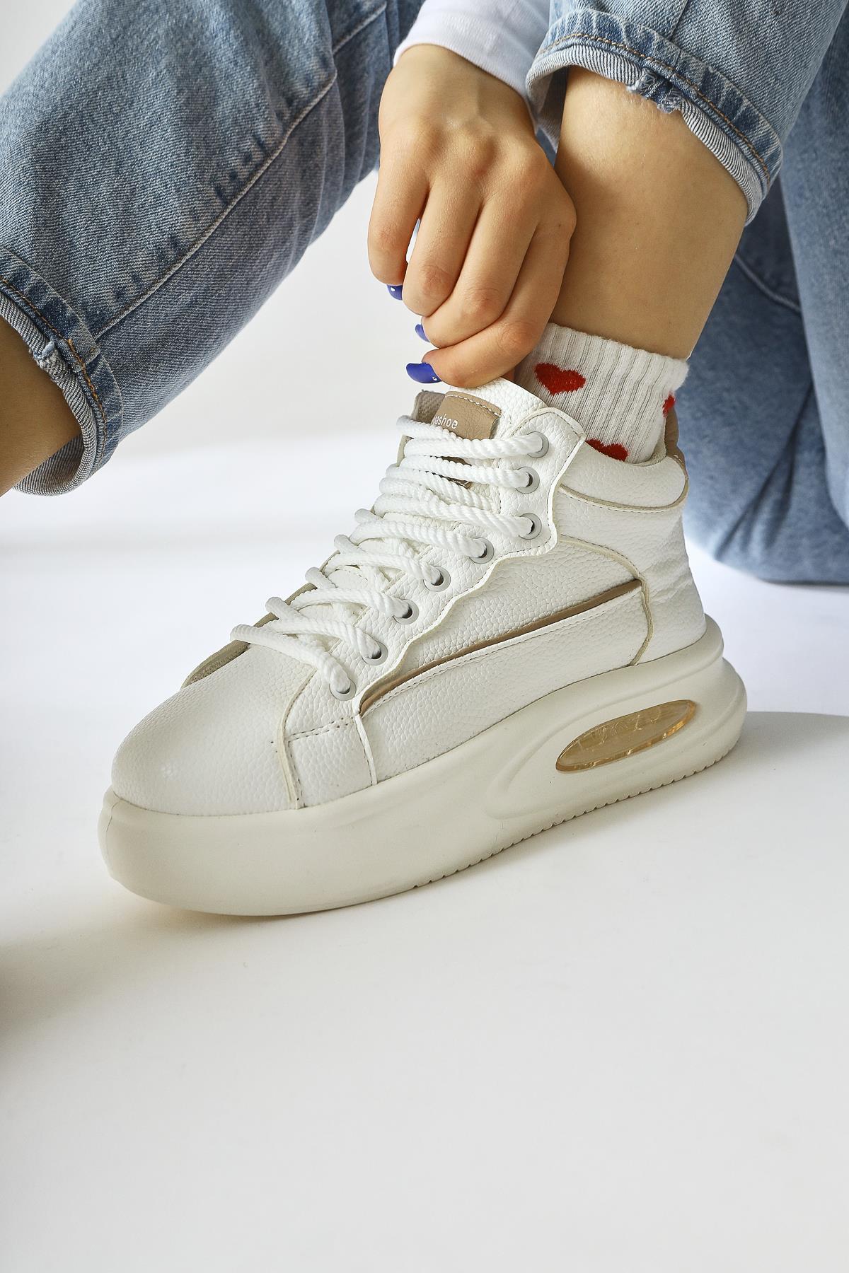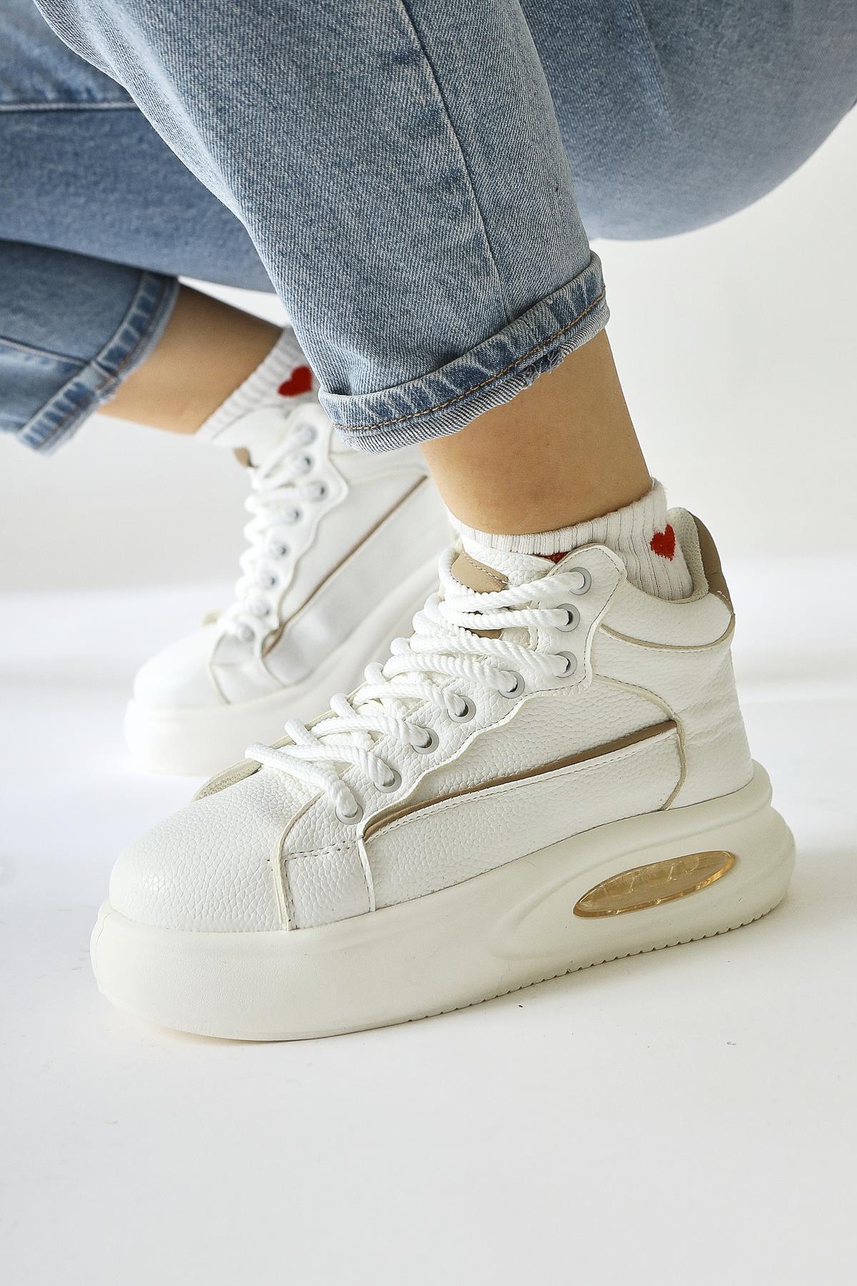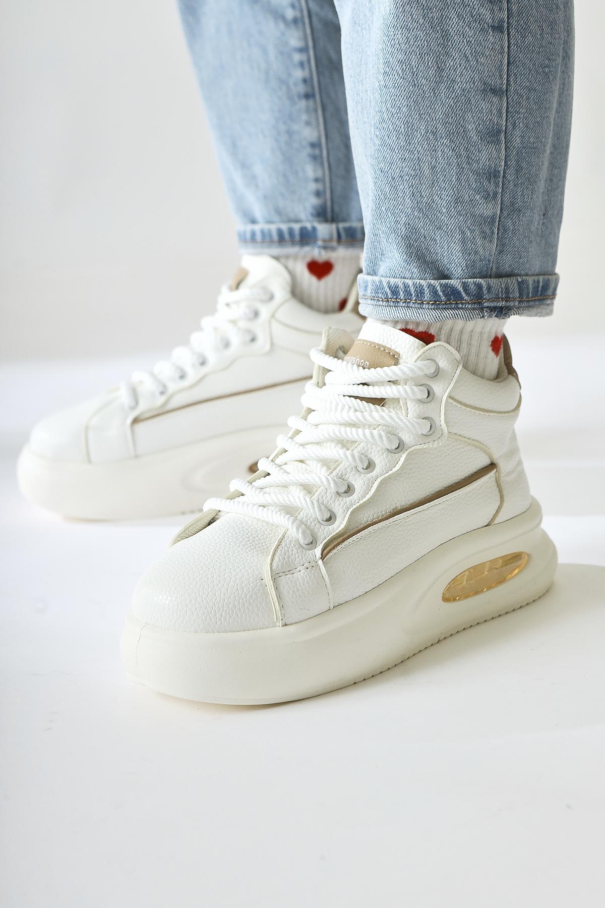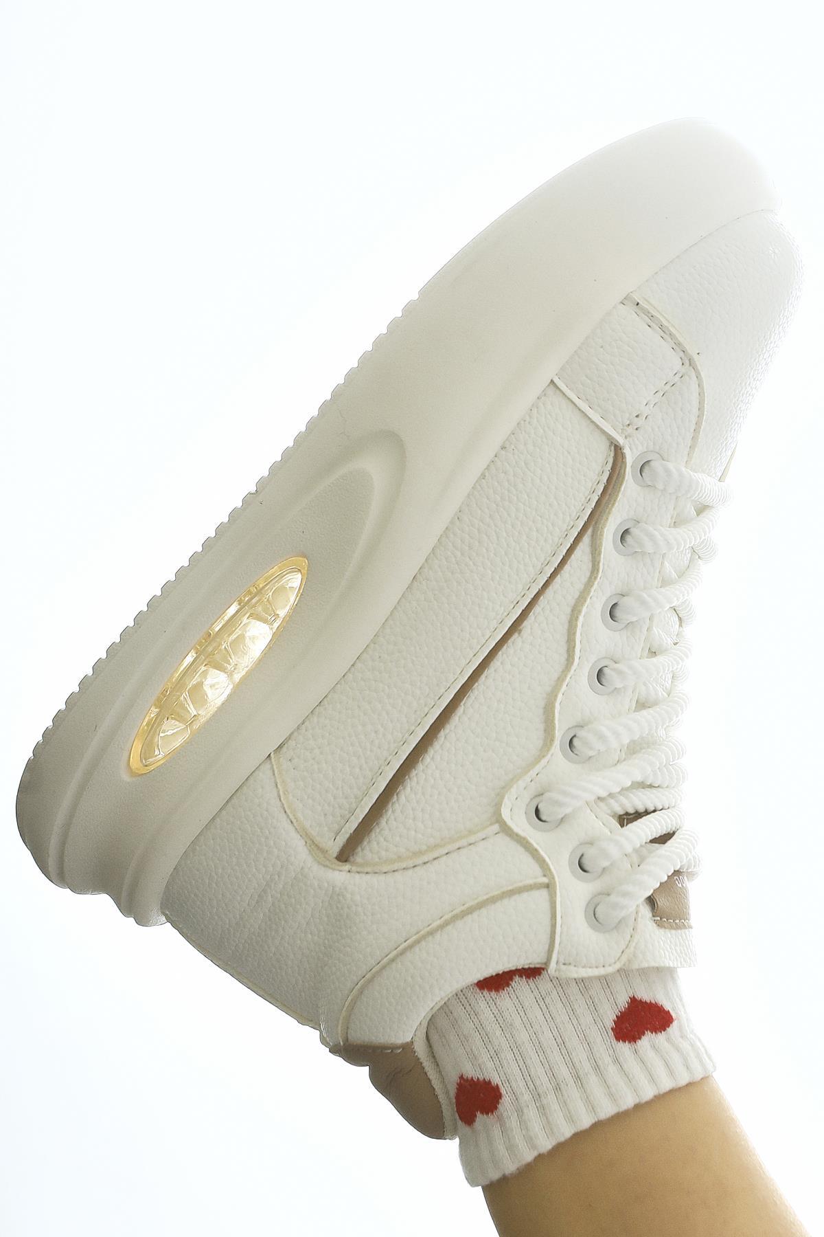Lourin Ekru Deri Desenli Havalı Taban Bağcıklı Spor Bot