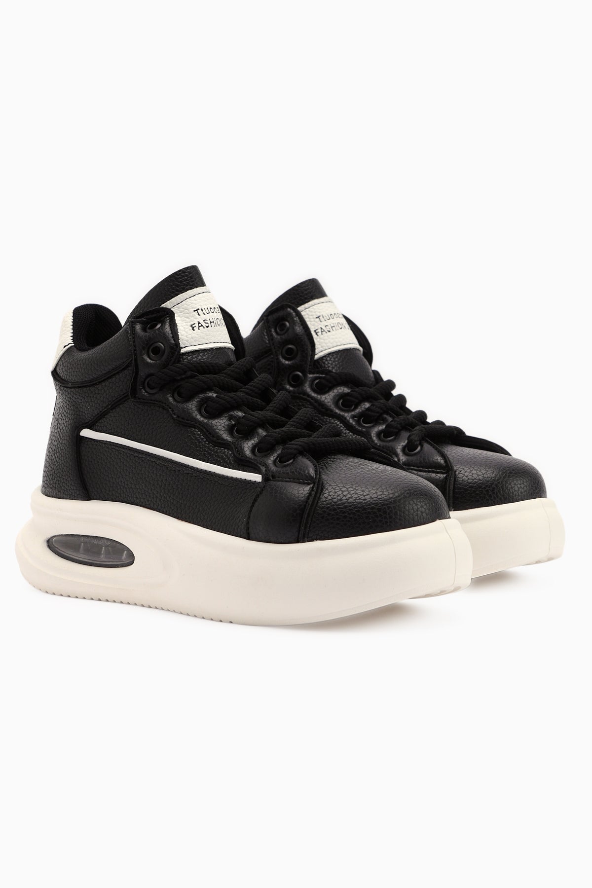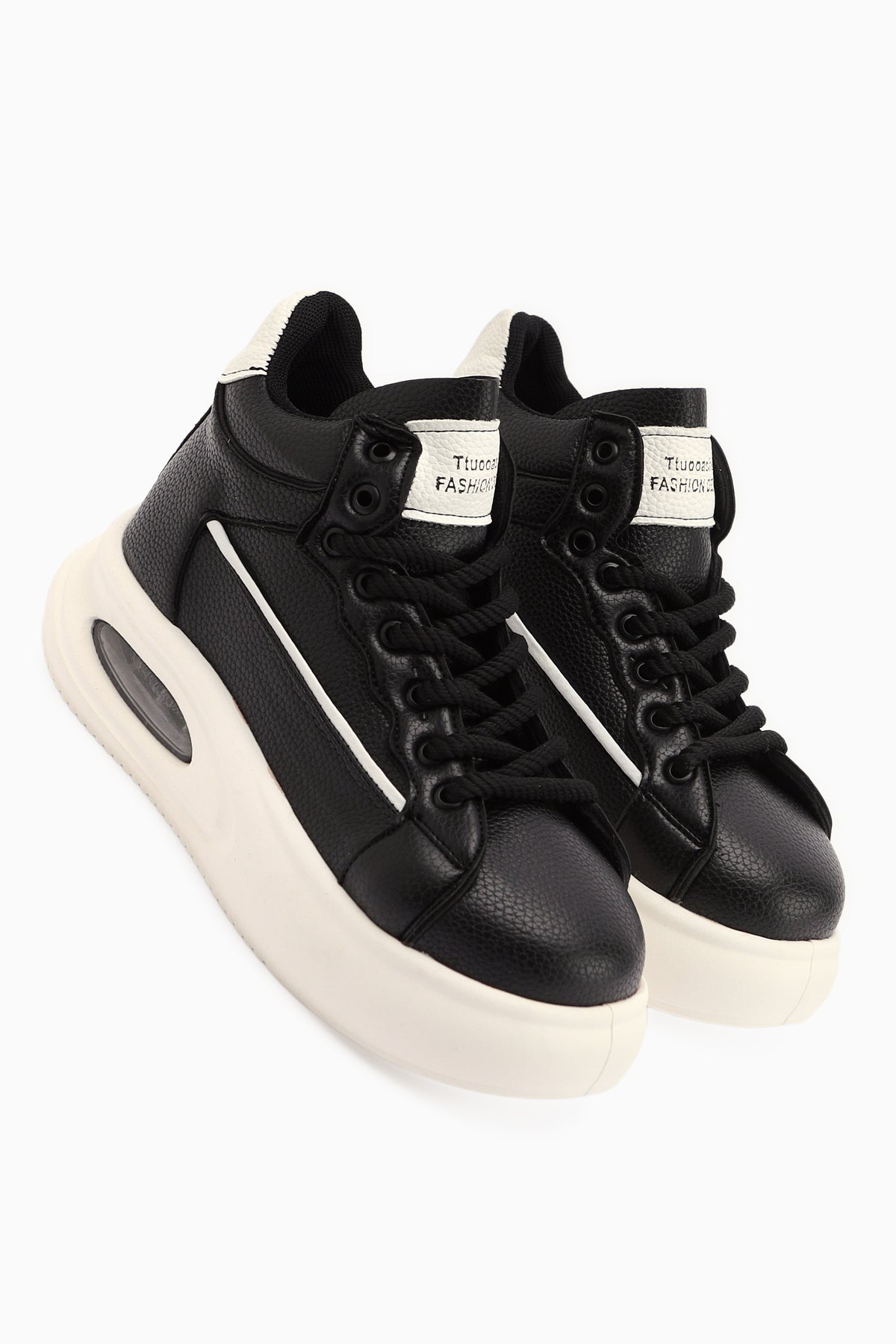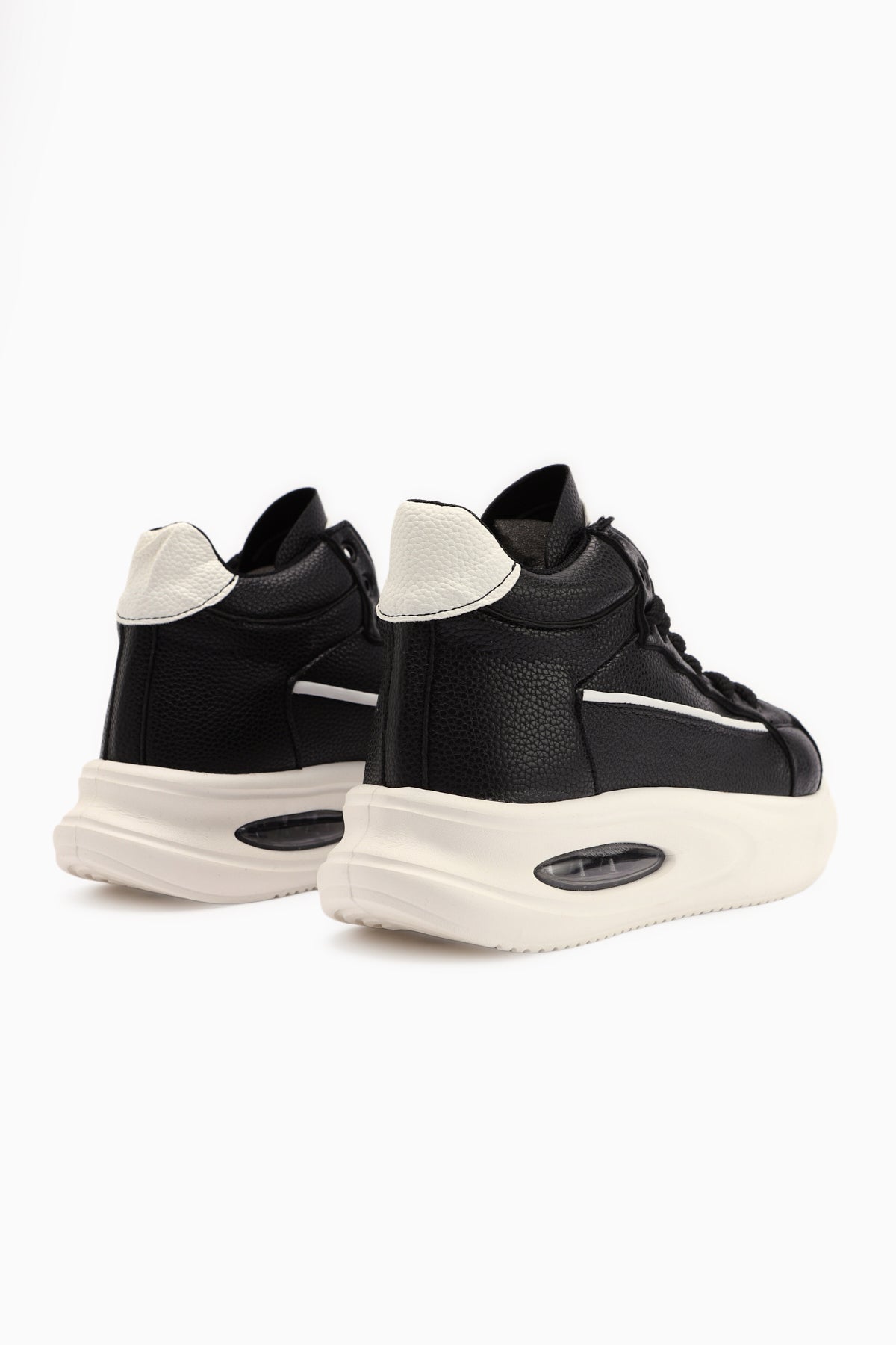 Lourin Siyah Deri Desenli Havalı Taban Bağcıklı Spor Bot