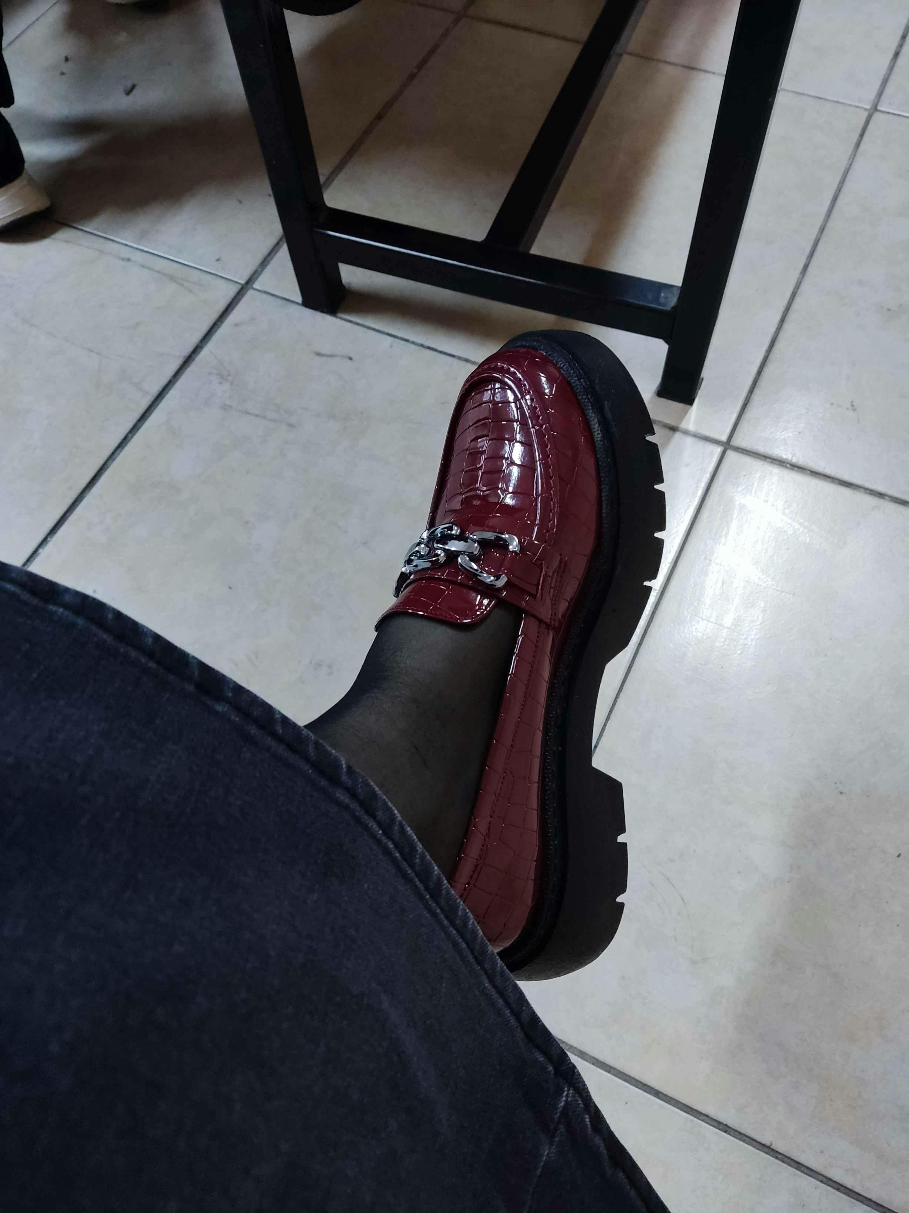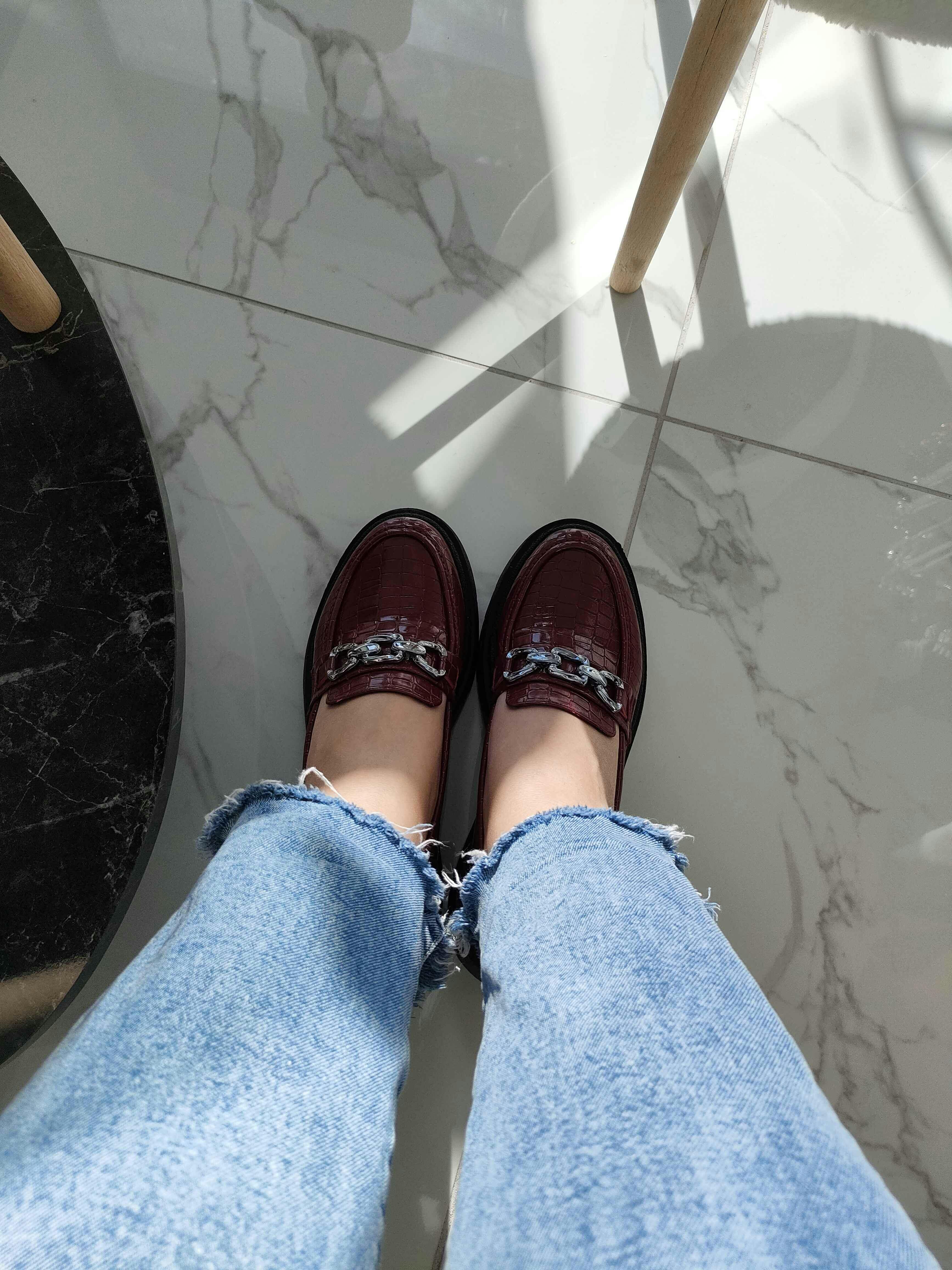 Lucin Bordo Kroko Desenli Zincir Toka Detaylı Makosen Ayakkabı