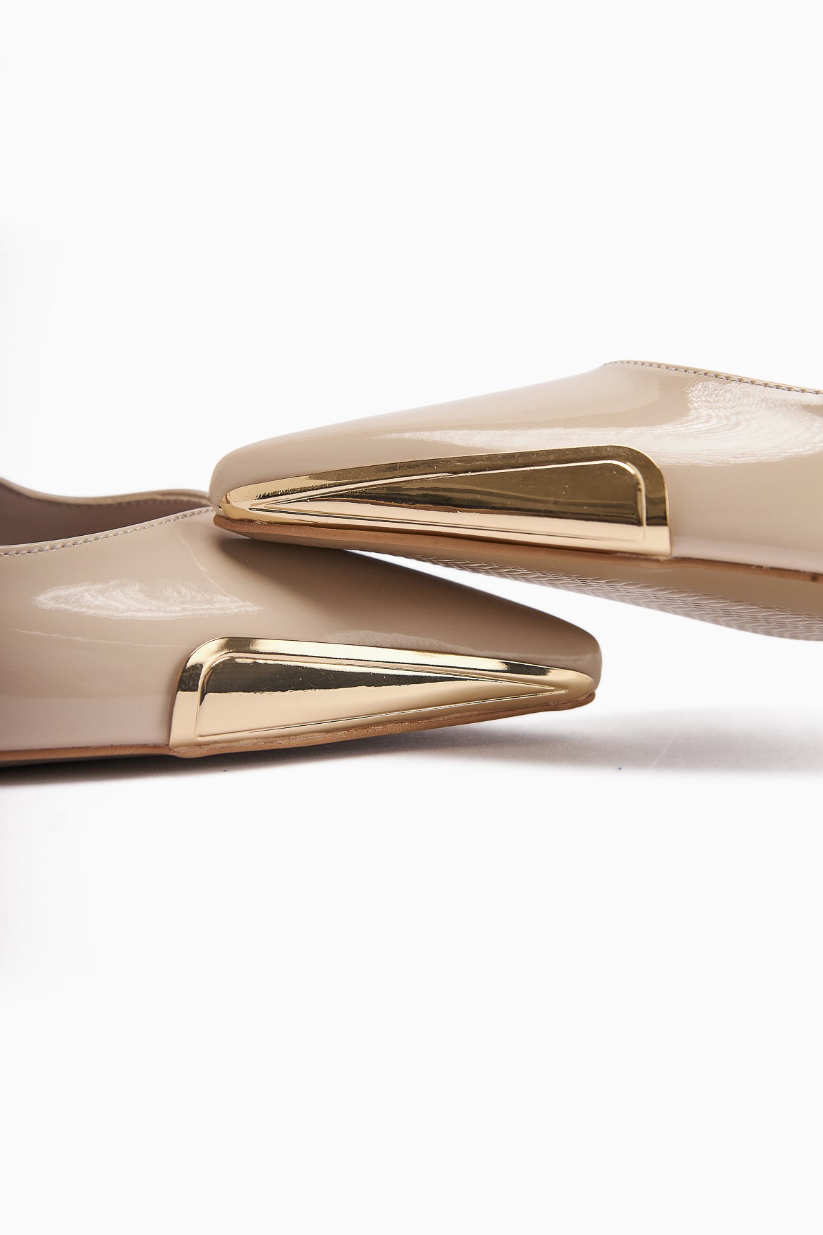 Lula Bej Rugan Metal Tokalı Sivri Burunlu Kadın Topuklu Ayakkabı