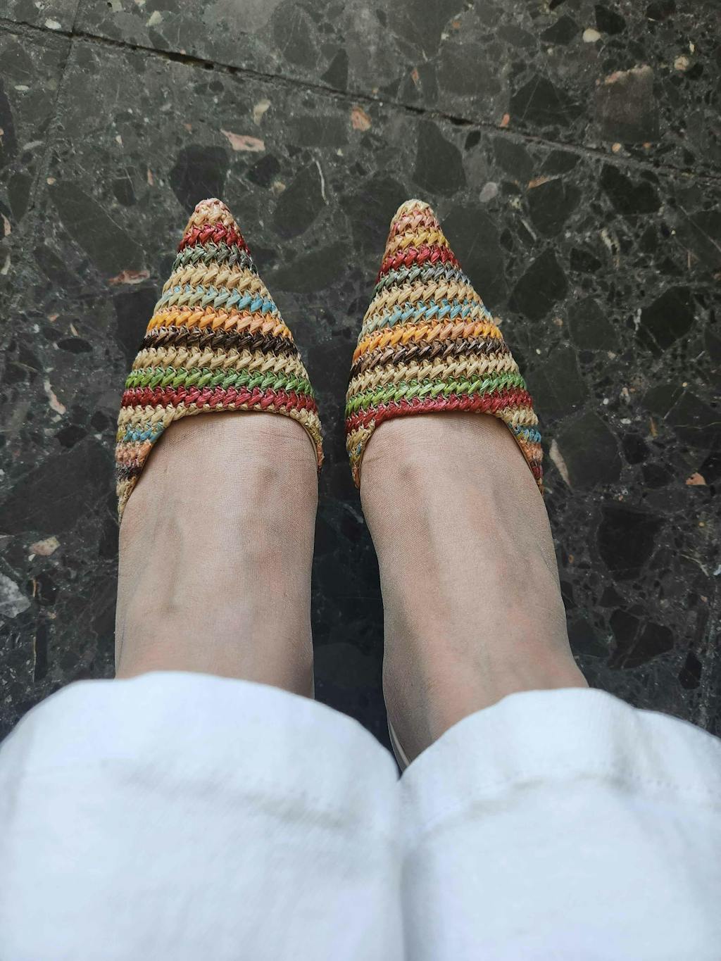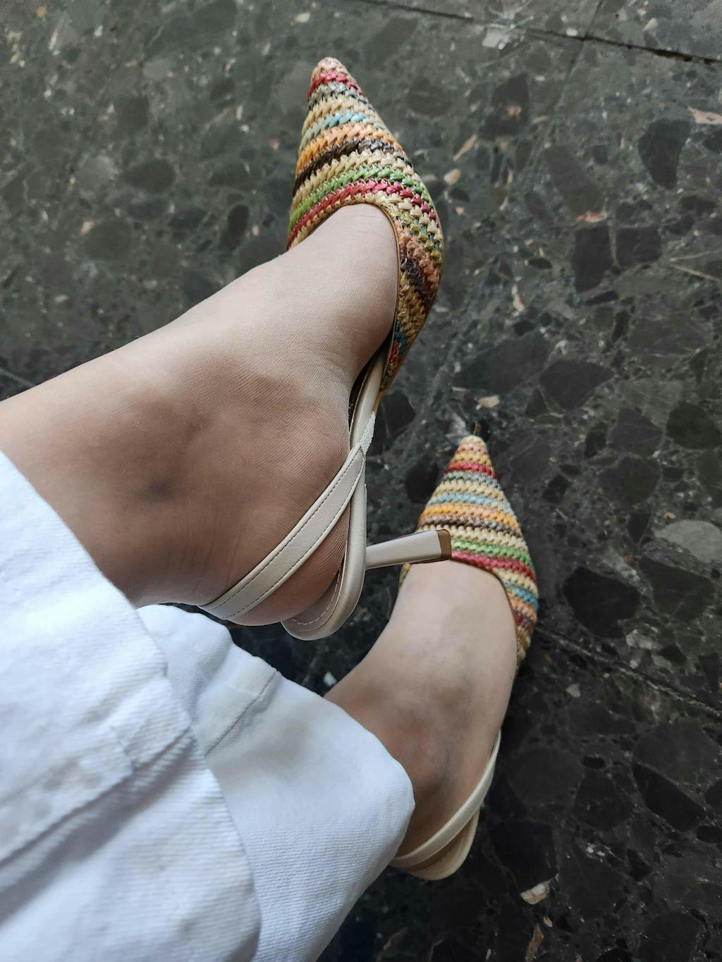 Maddy Çok Renkli Örgü Detaylı Sivri Burunlu Topuklu Sandalet