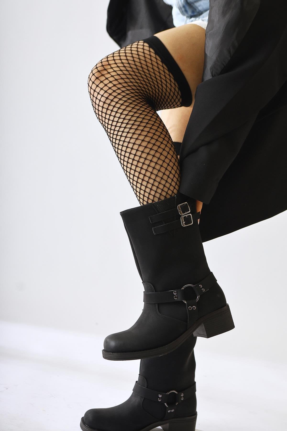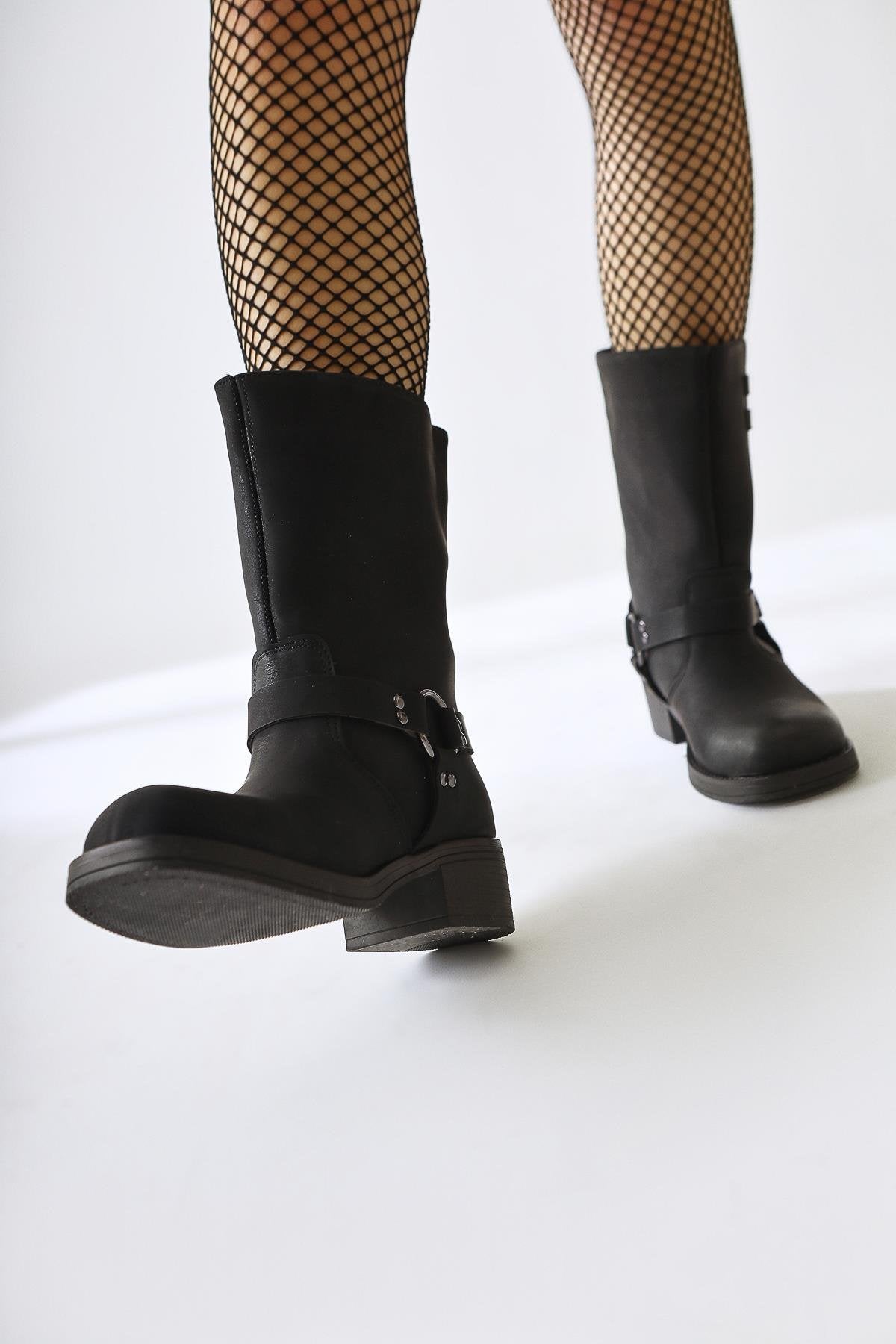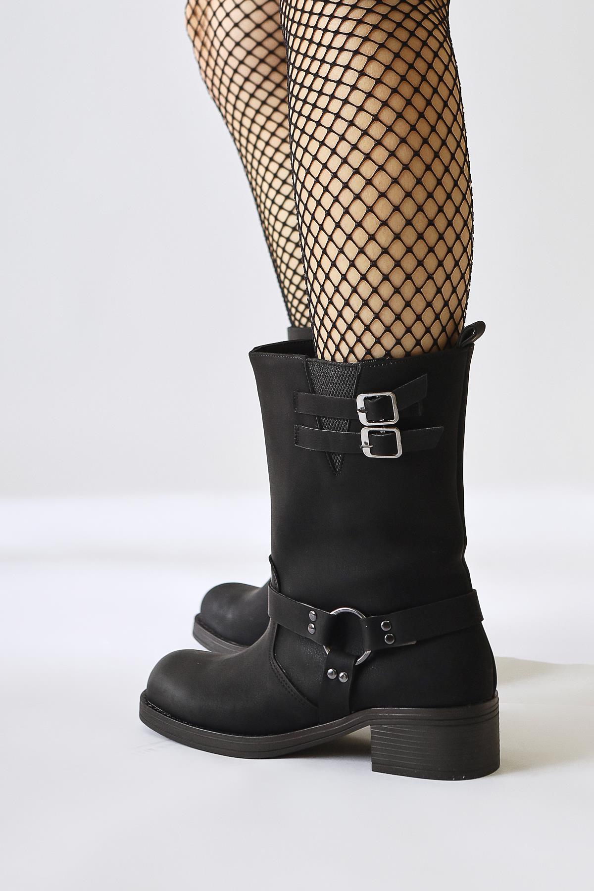 Maggie Siyah Toka Detaylı Lastikli Uzun Çekme Bot