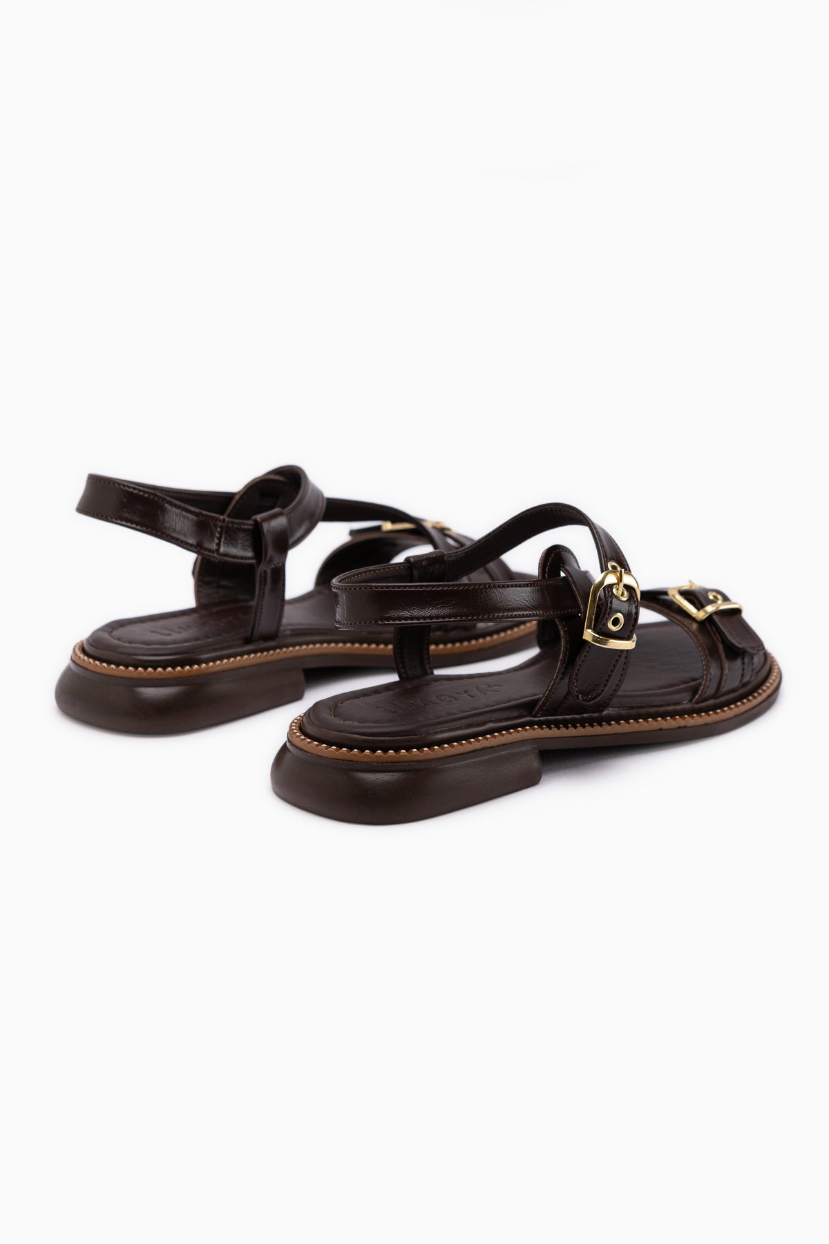 Maggy Kahve Çapraz Bantlı Kadın Sandalet