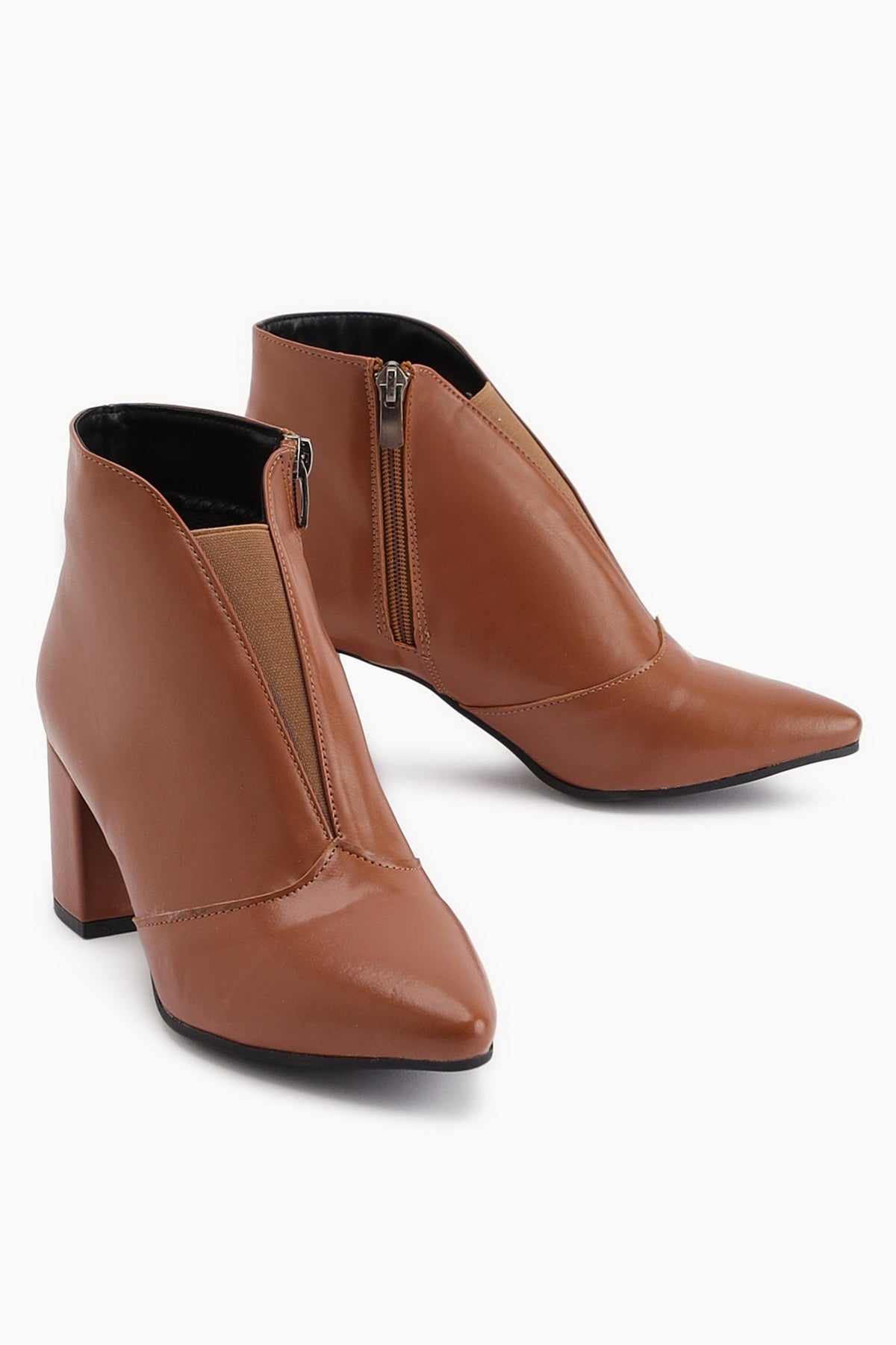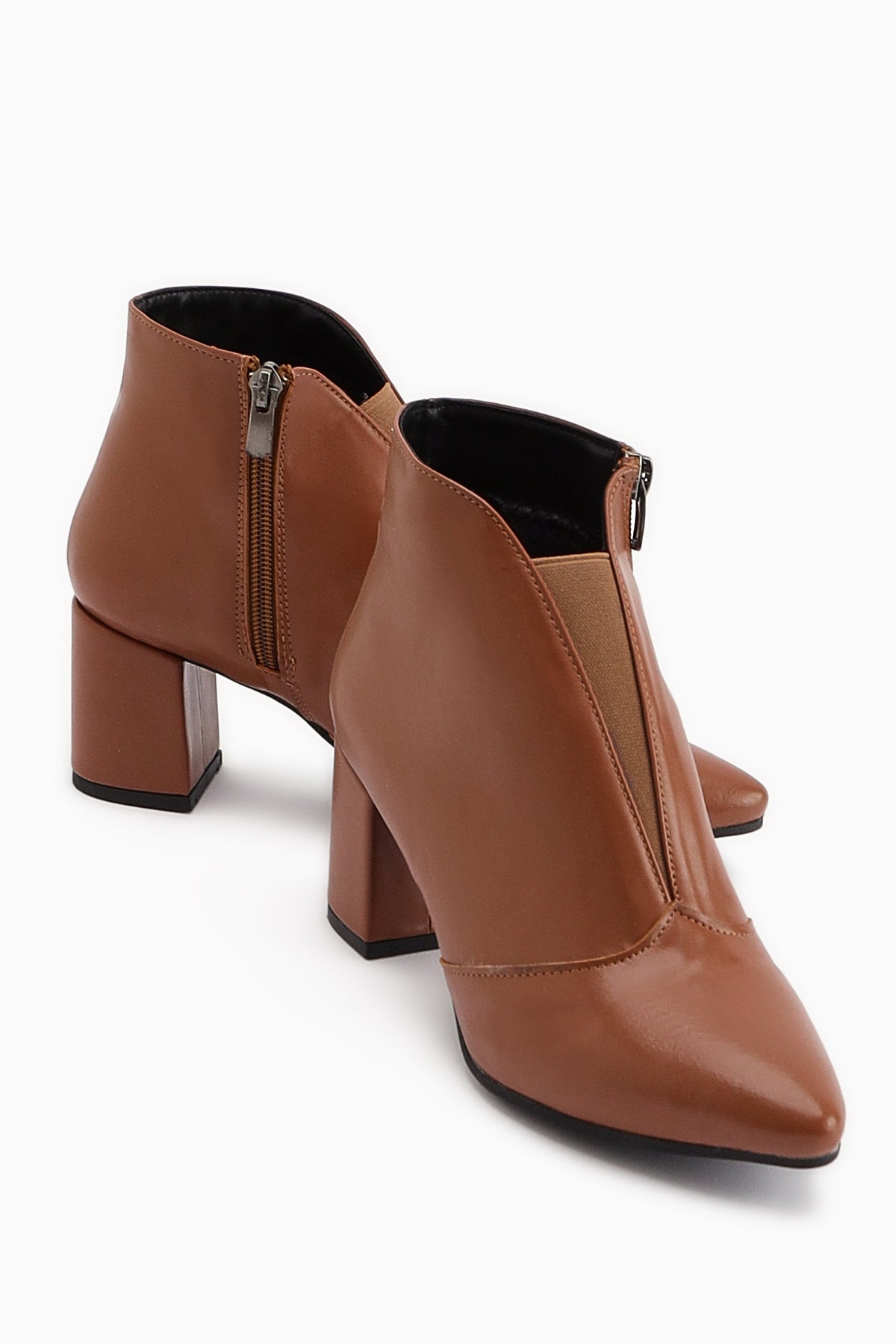 Maria Elena Taba Sivri Burunlu Fermuarlı Topuklu Bot