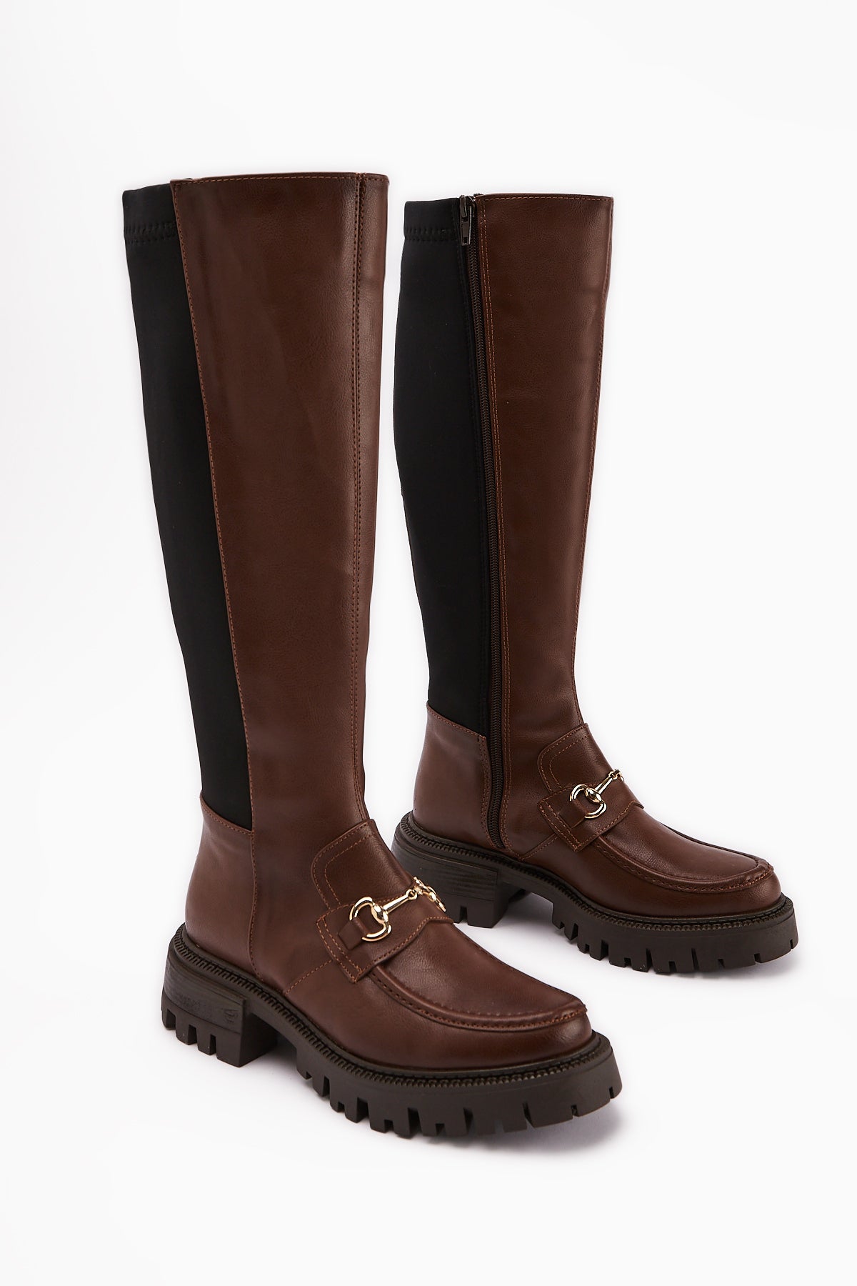 Meli Taba Toka Detaylı Dalgış Kumaşlı Tokalı Çizme