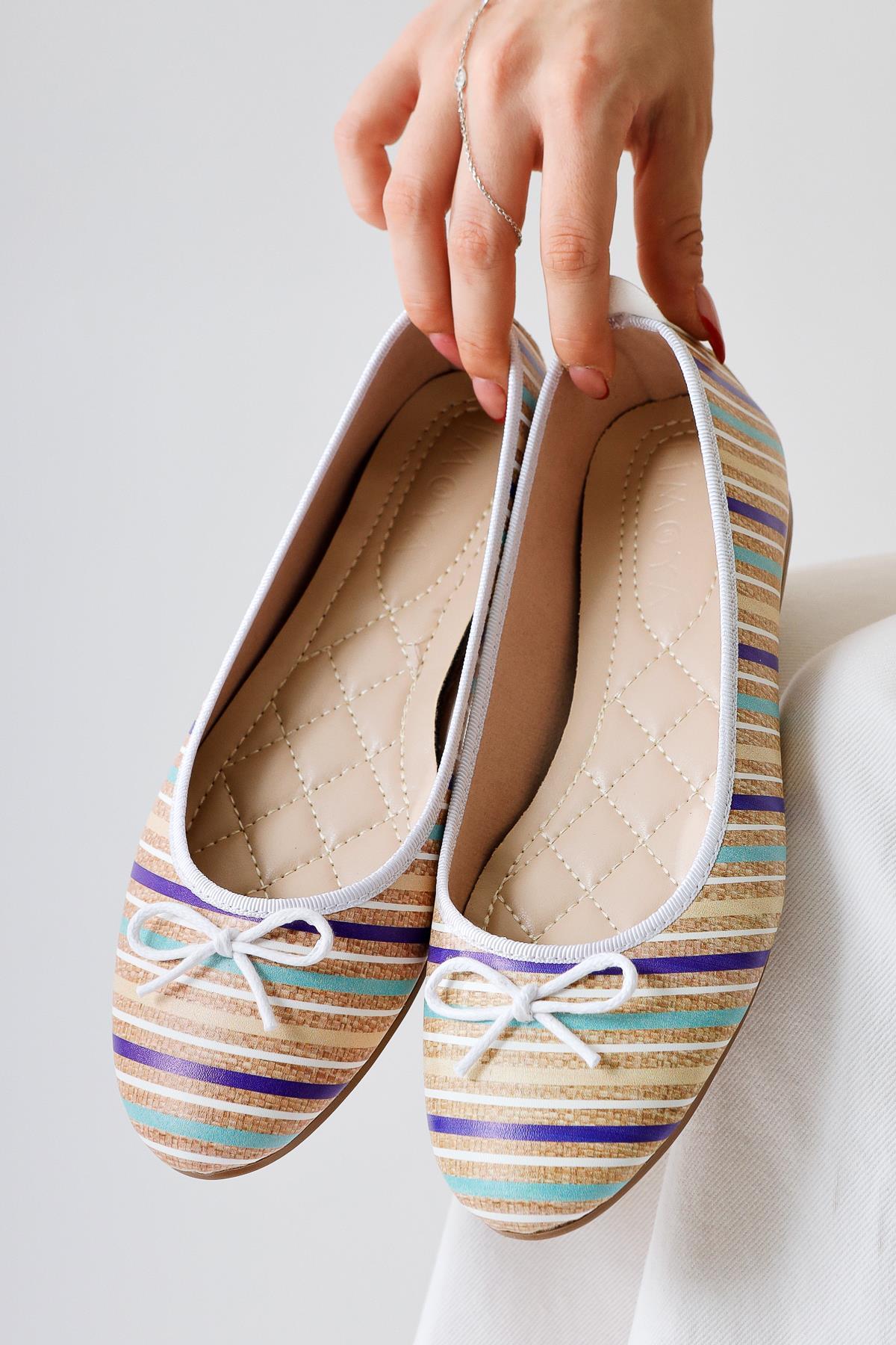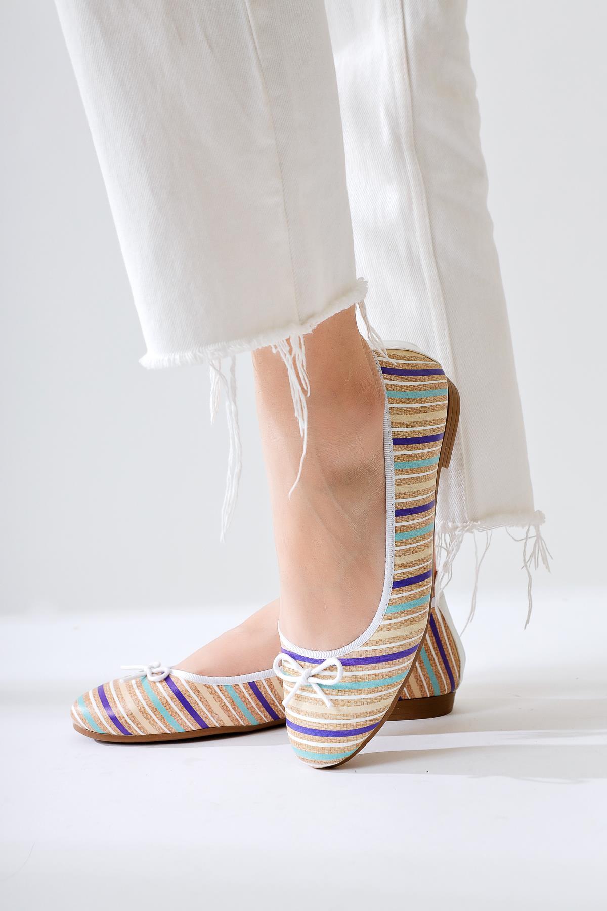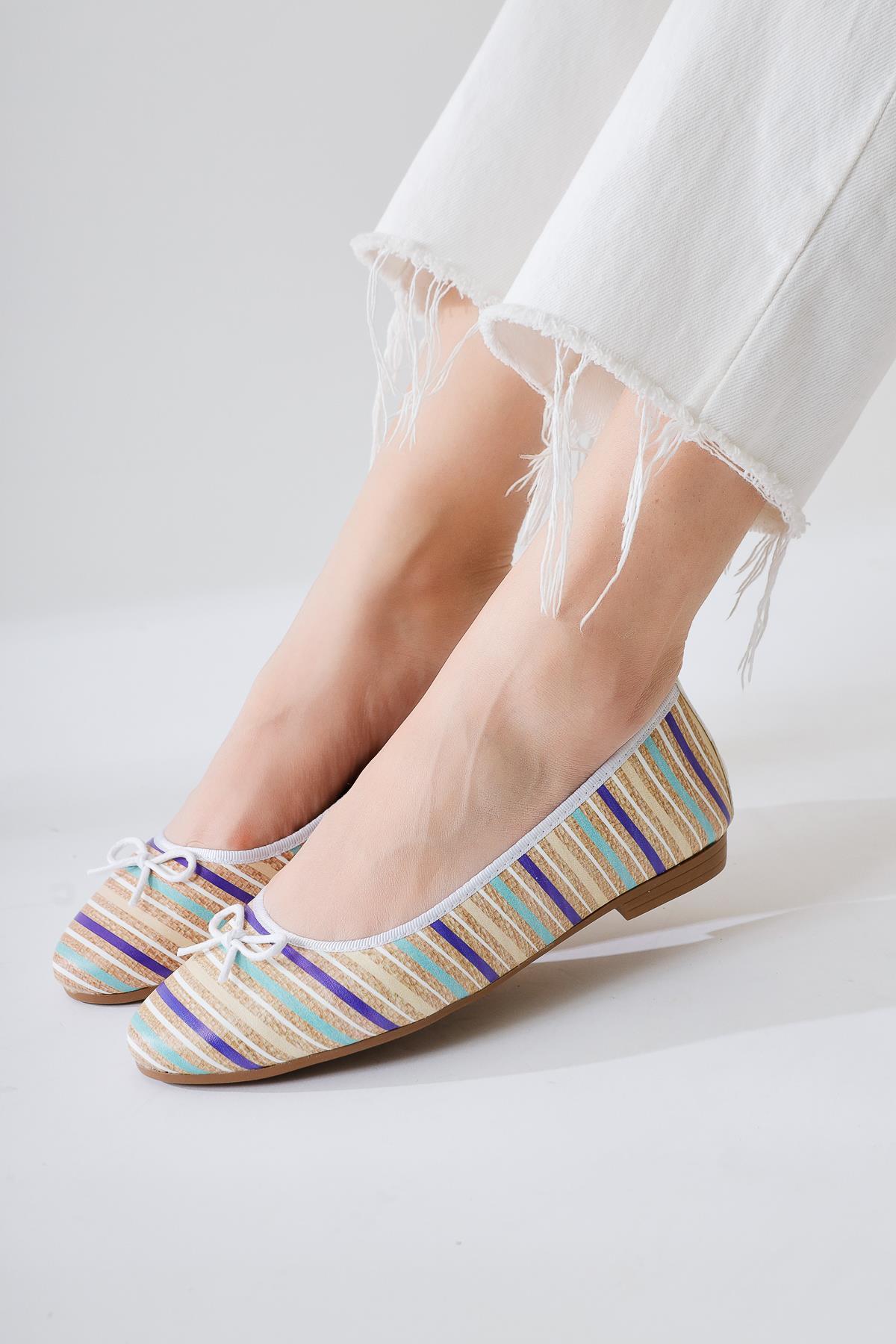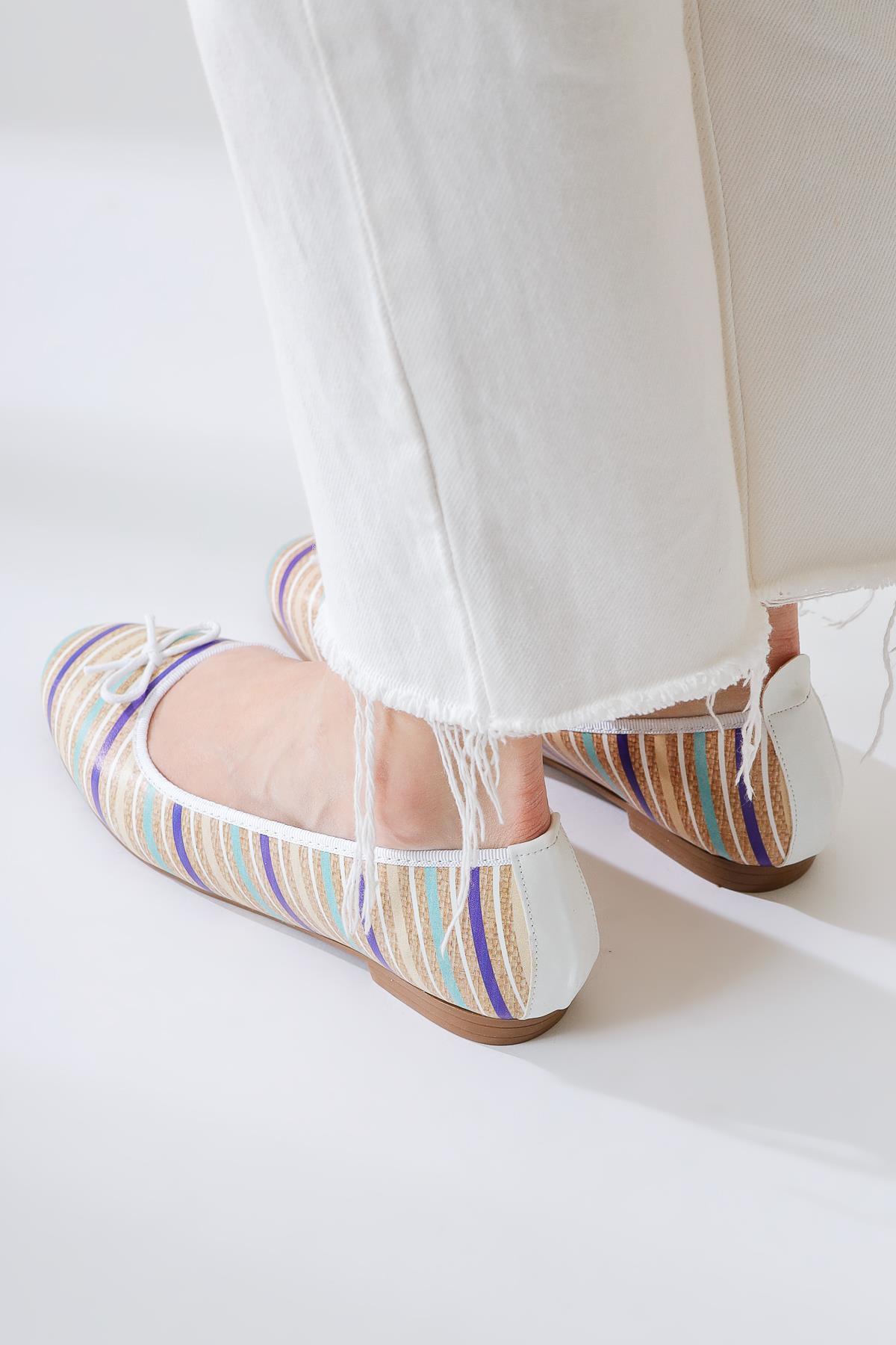 Melin Beyaz Çizgili Baskılı Fiyonk Detaylı Babet