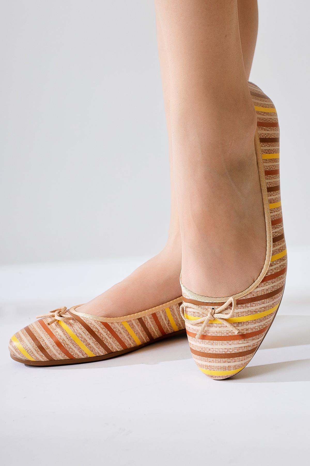 Melin Krem Çizgili Baskılı Fiyonk Detaylı Babet