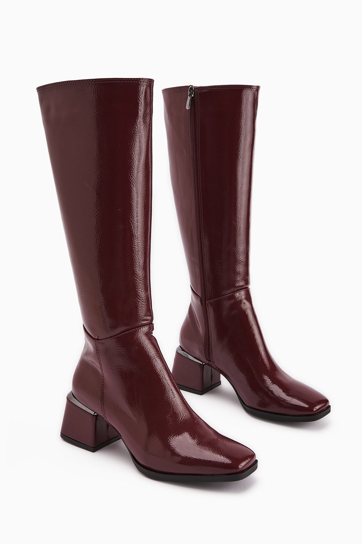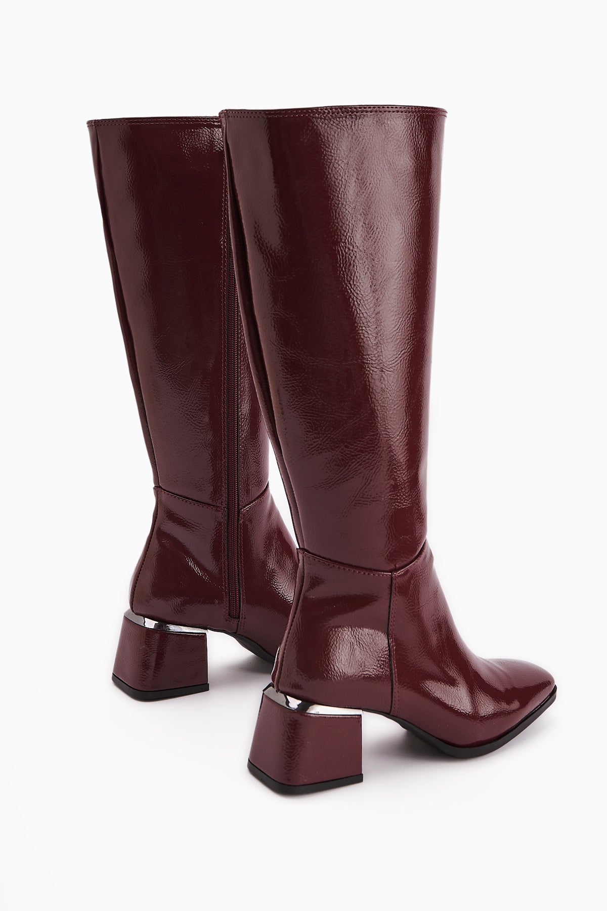 Miami Bordo Kırışık Rugan Küt Burunlu Çizme