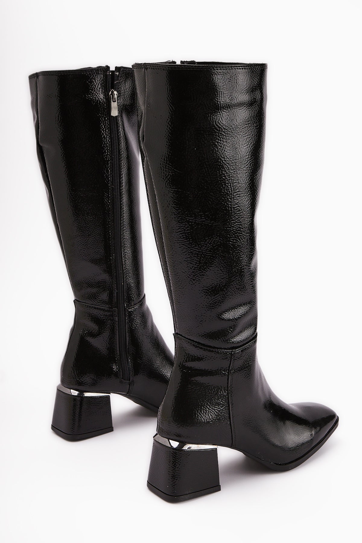 Miami Siyah Kırışık Rugan Küt Burunlu Çizme