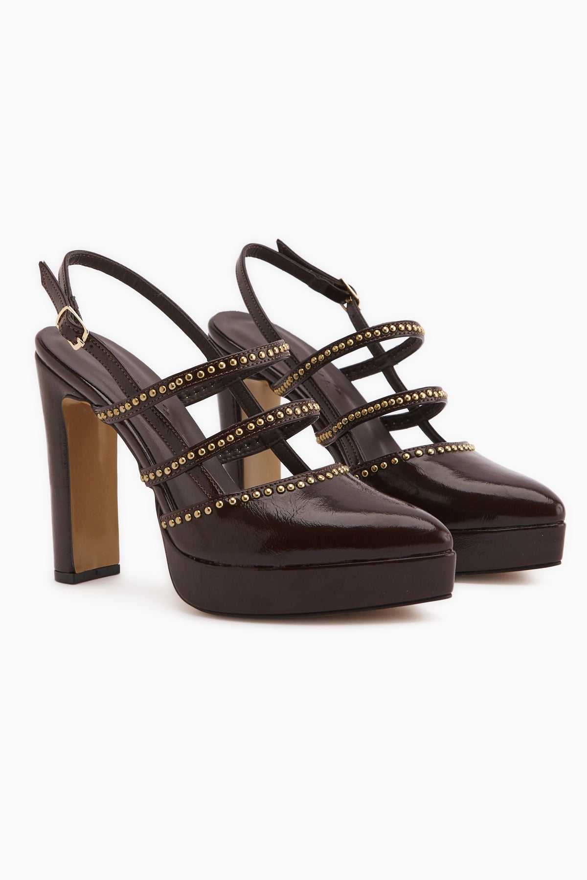 Milea Kahve Zımba Detaylı Kadın Platform Topuklu Ayakkabı