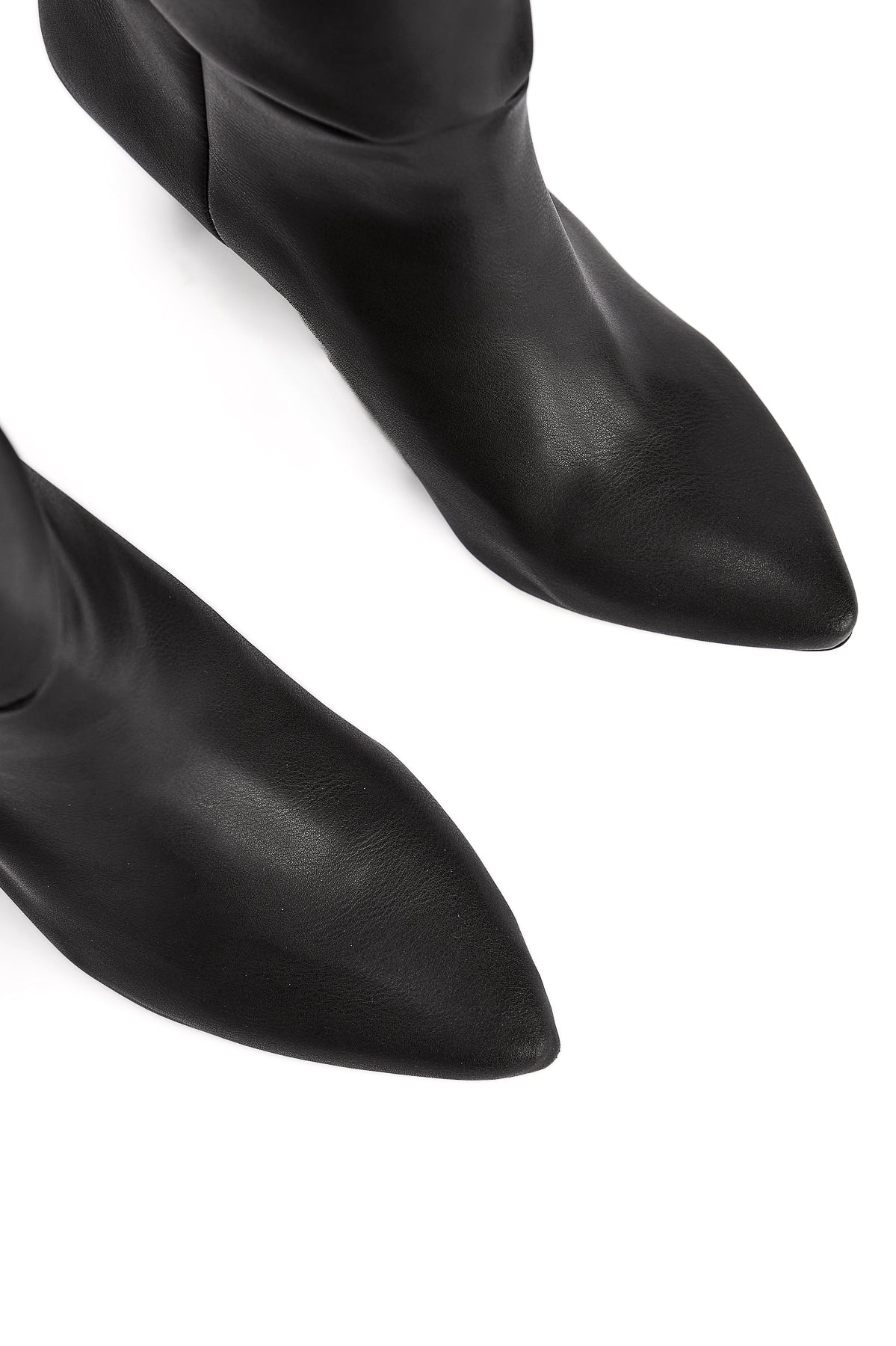 Milika Siyah Sivri Burunlu Kısa Topuklu Çekme Çizme