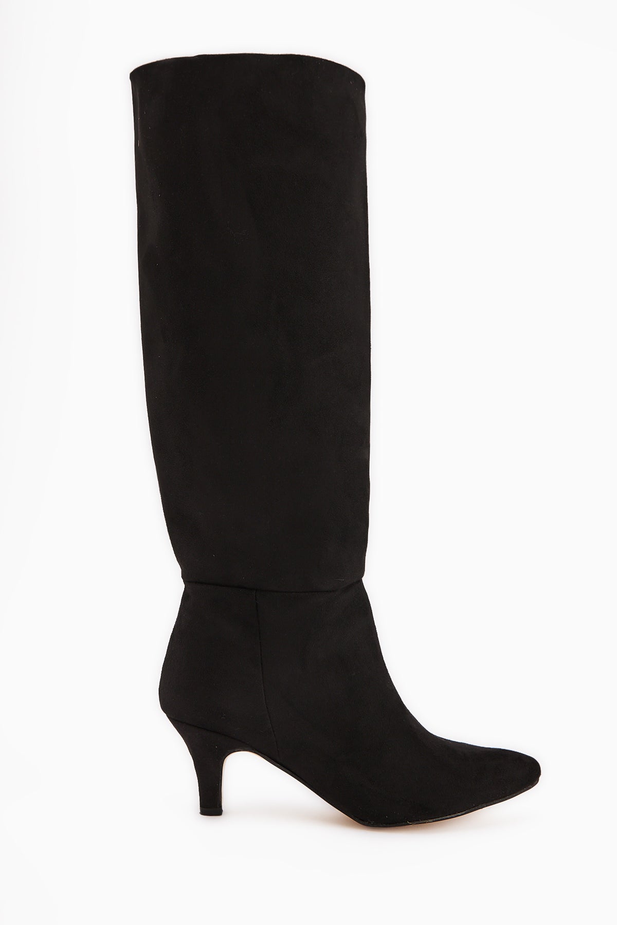 Milika Siyah Süet Sivri Burunlu Kısa Topuklu Çekme Çizme