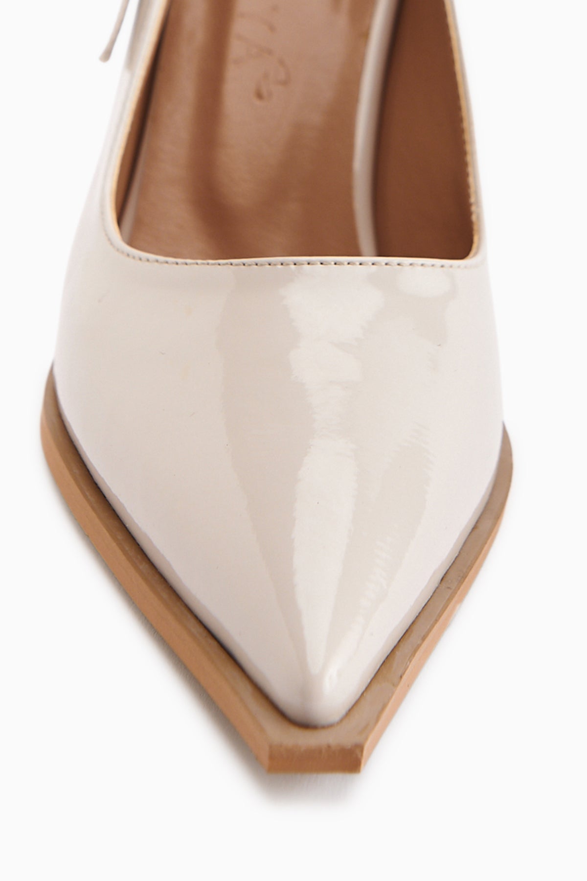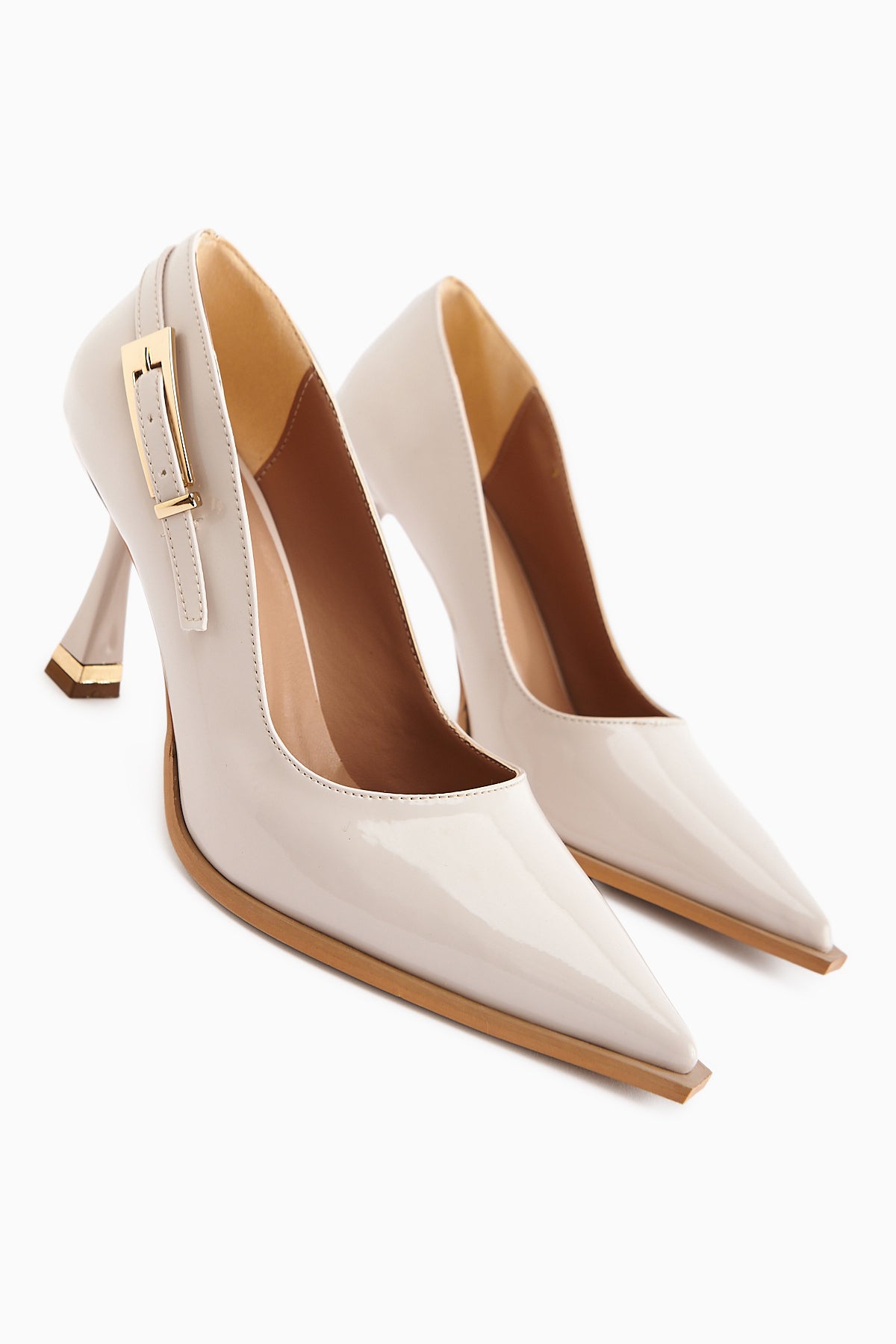 Mithra Bej Rugan Sivri Burunlu Toka Detaylı Topuklu Ayakkabı