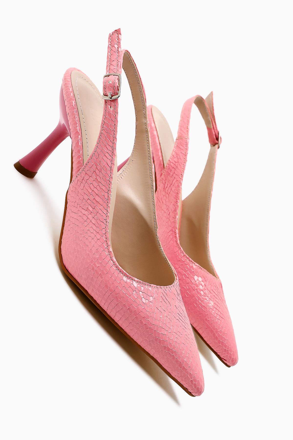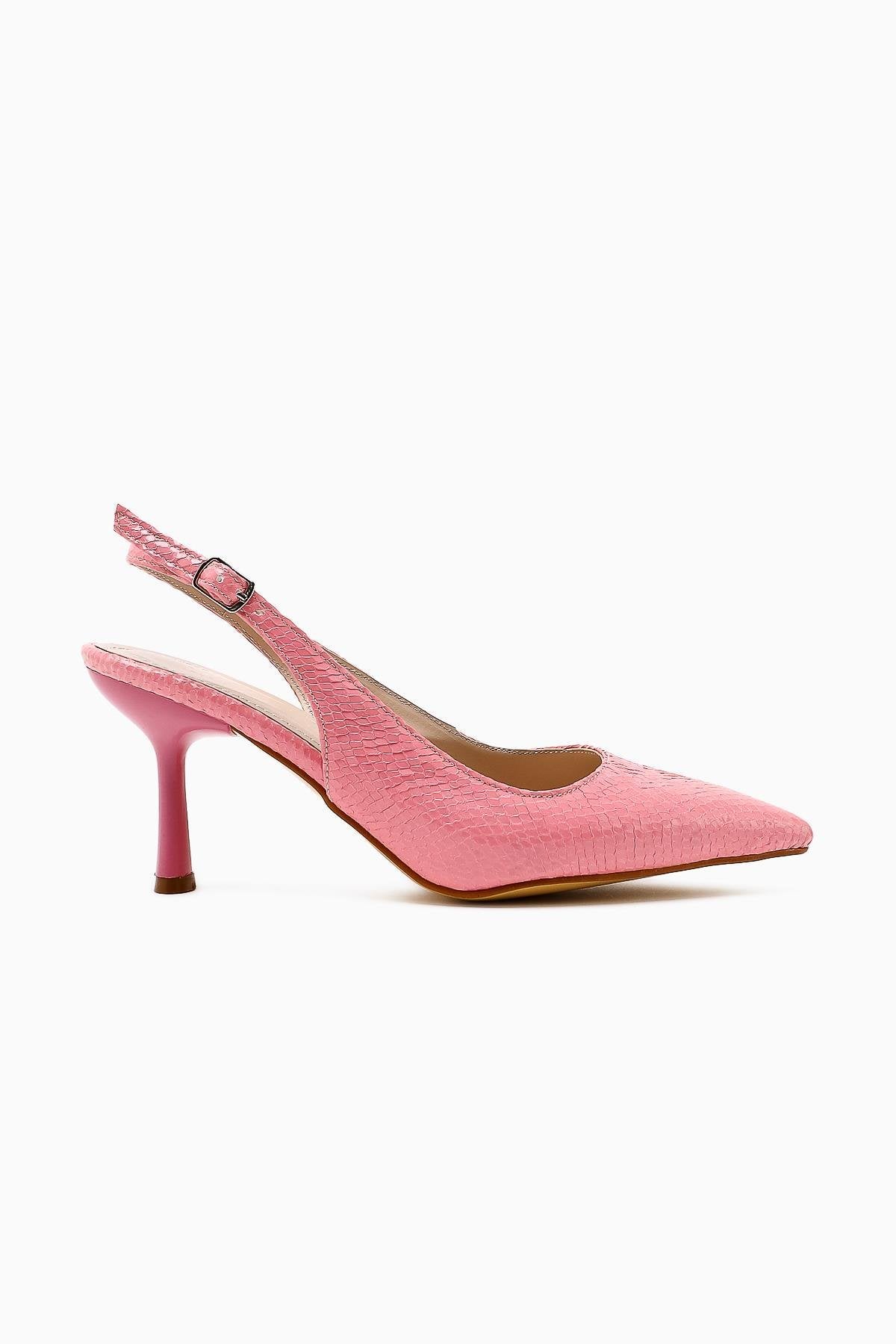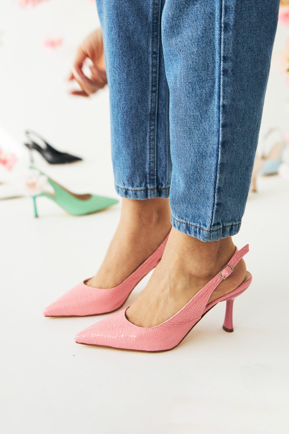 Moira Pudra Dokulu Deri Sivri Burunlu Kadın Topuklu Ayakkabı
