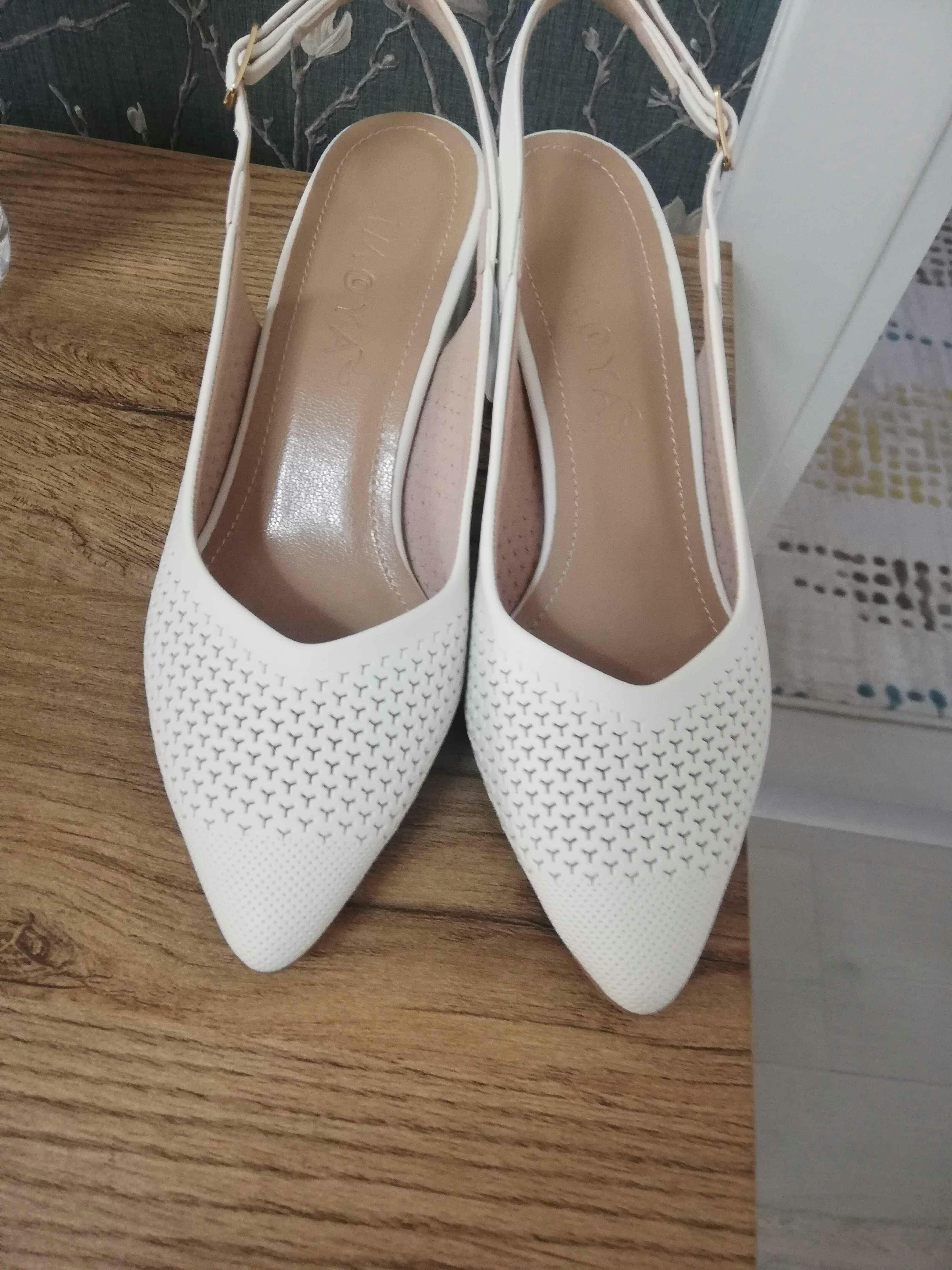 Narisara Beyaz Sivri Burunlu Lazer Delikli Toka Detaylı Topuklu Ayakkabı
