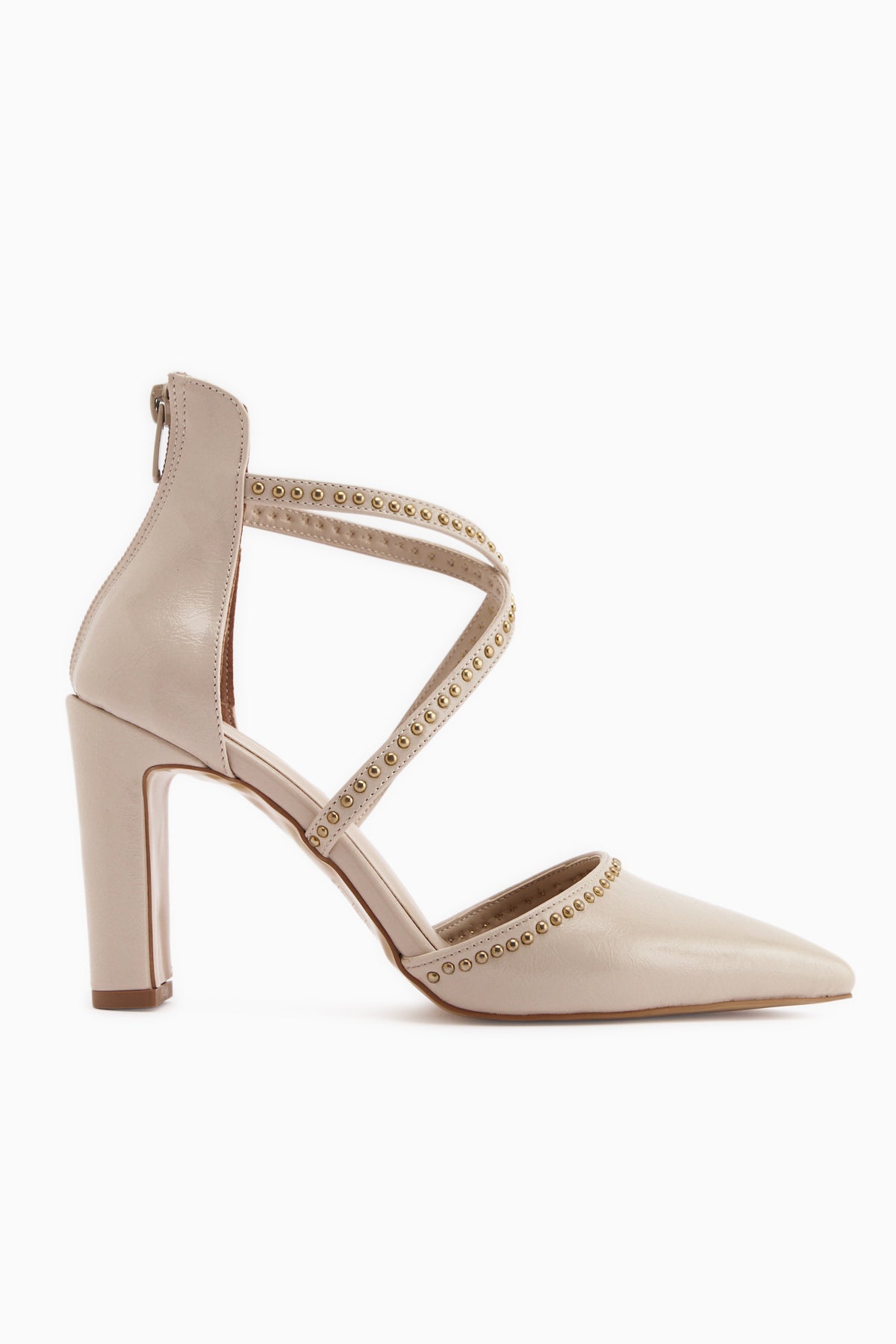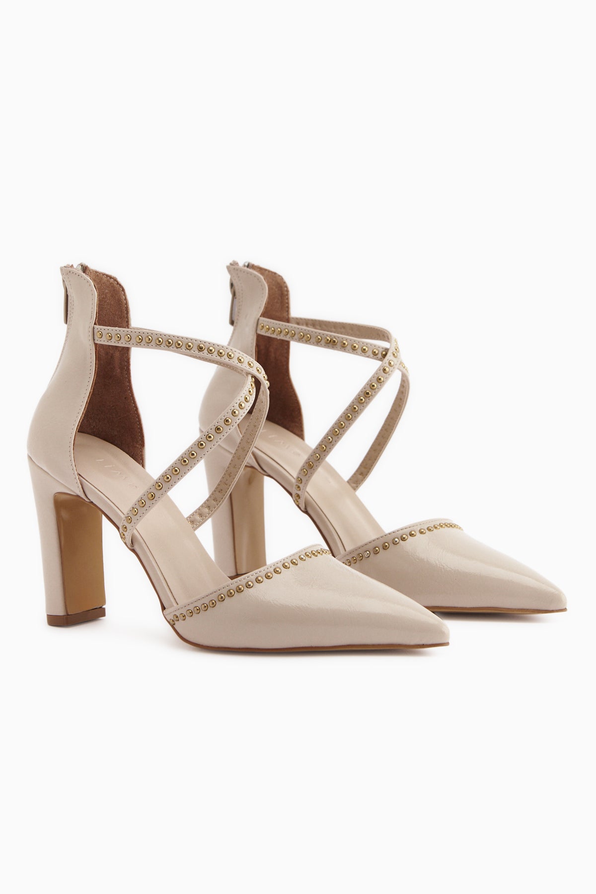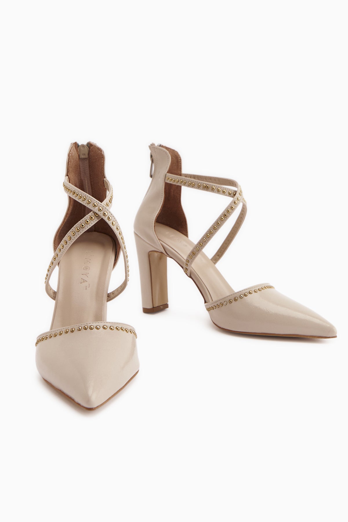 Neyla Bej Zımba Detaylı Çapraz Bantlı Sivri Burunlu Kadın Topuklu Ayakkabı