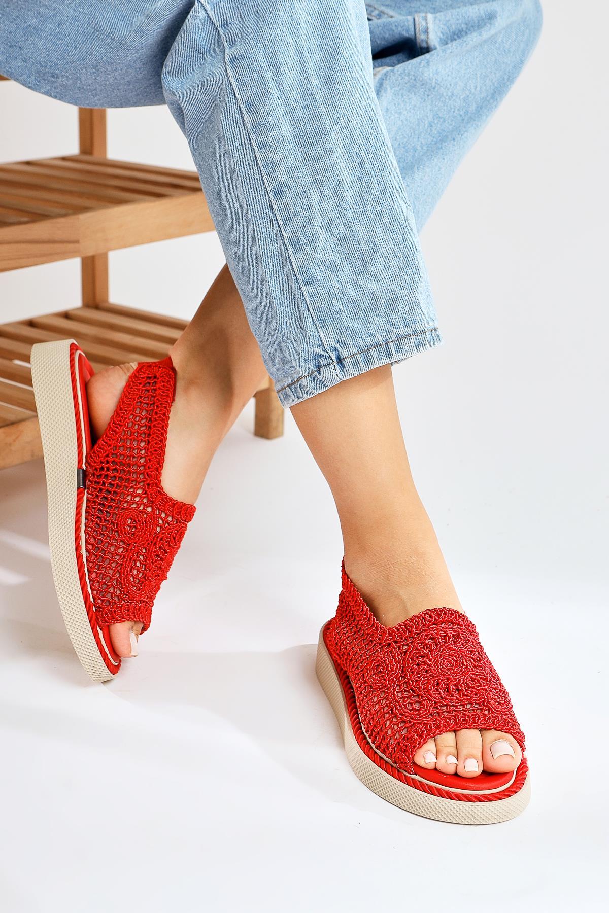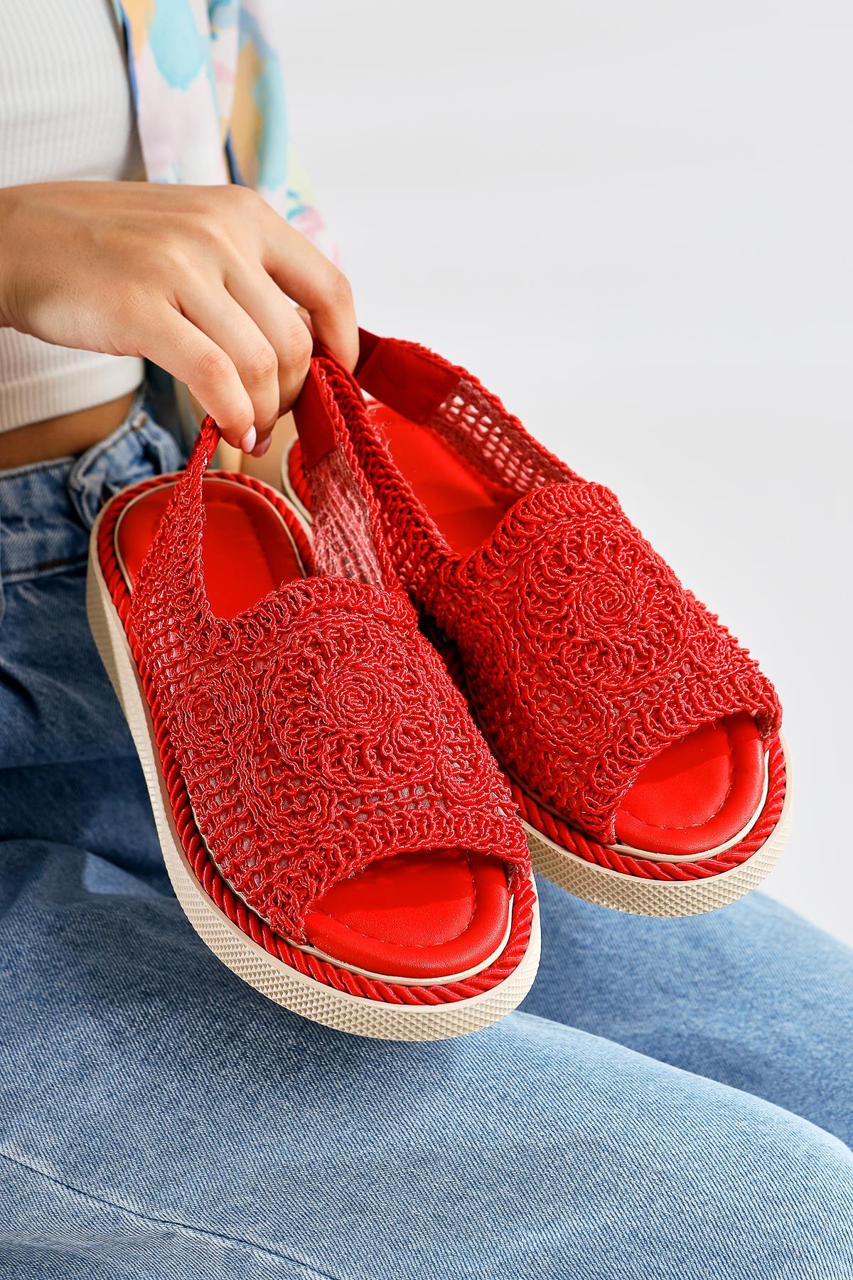 Nichola Kırmızı Örgü Sandalet