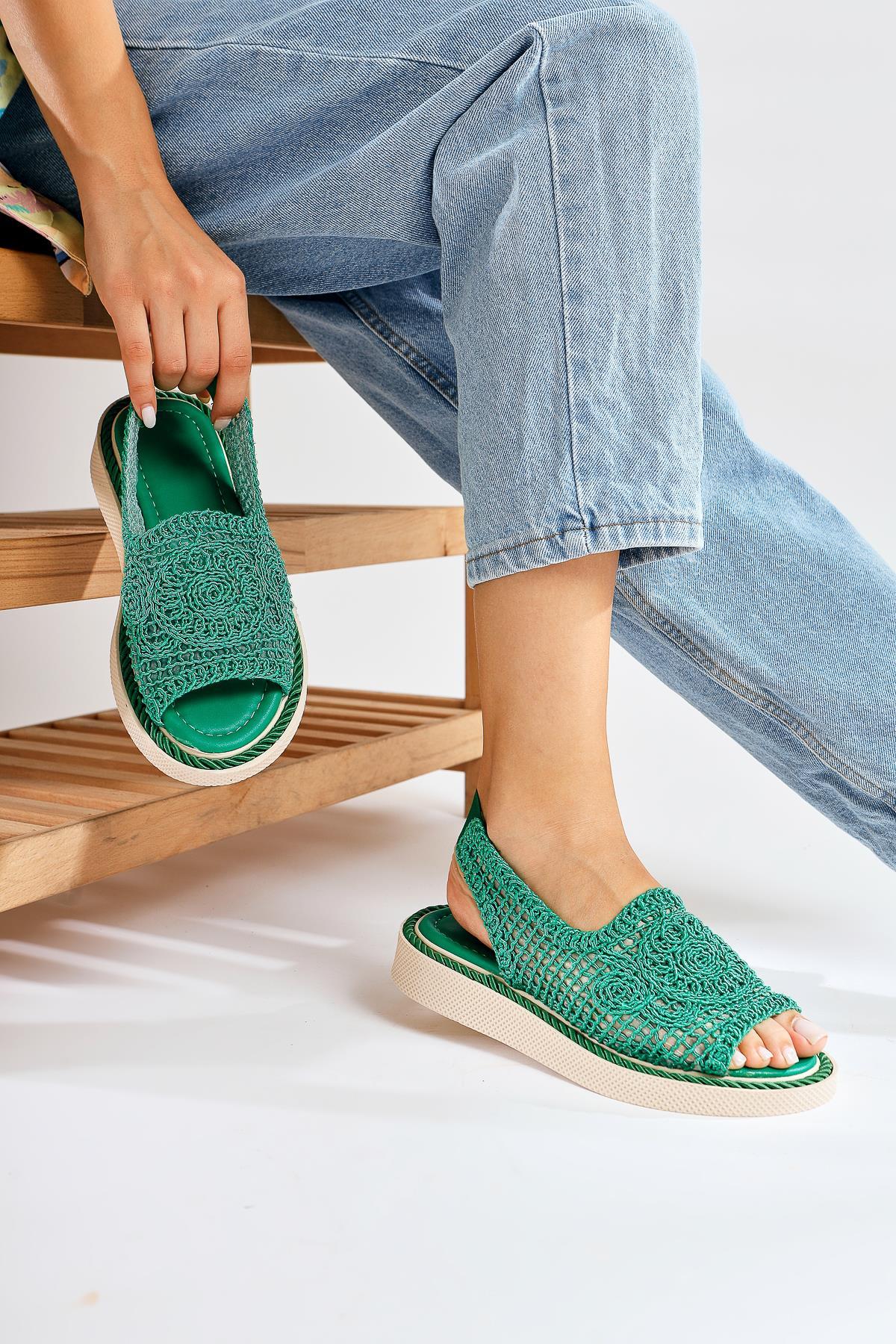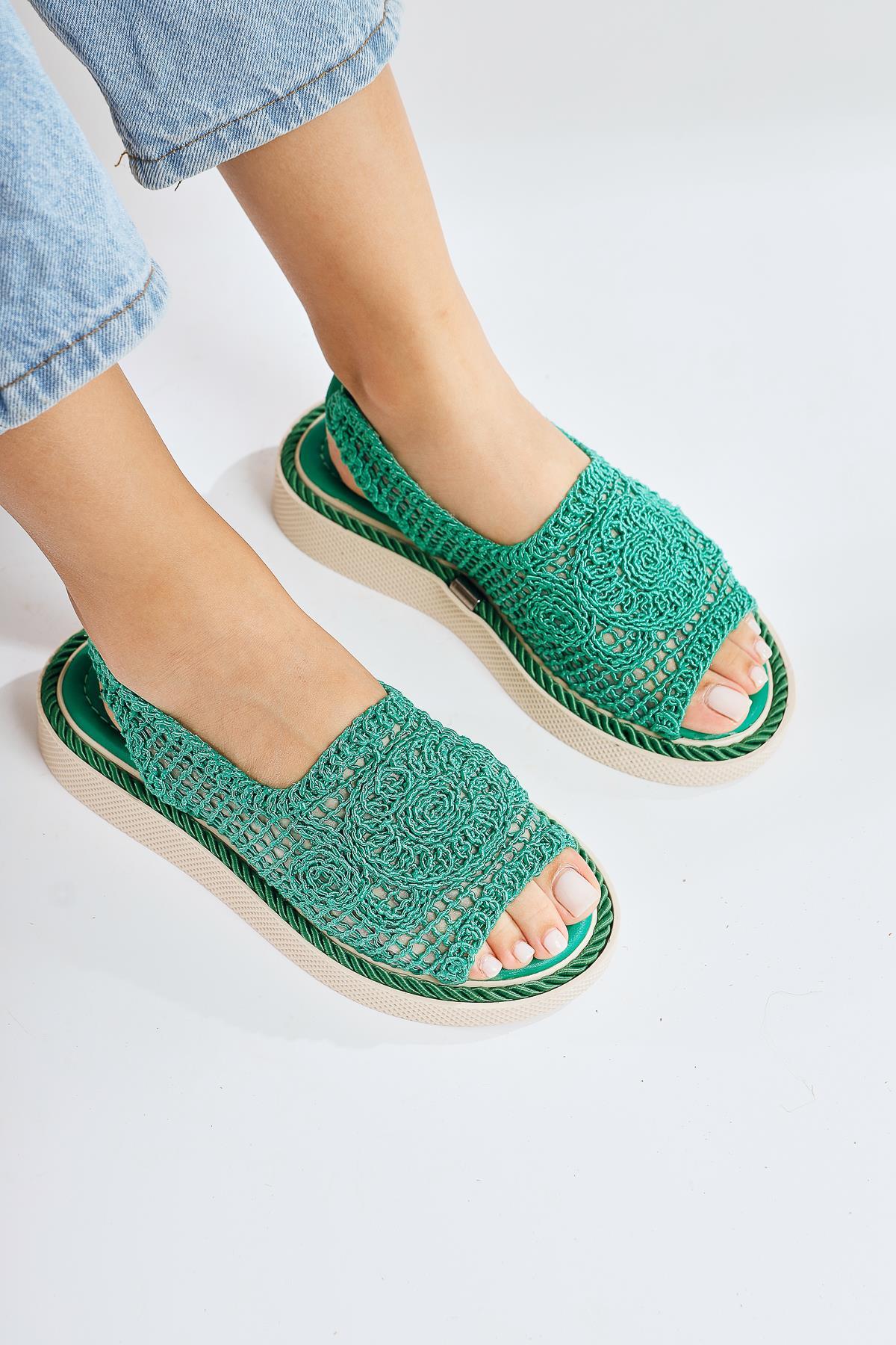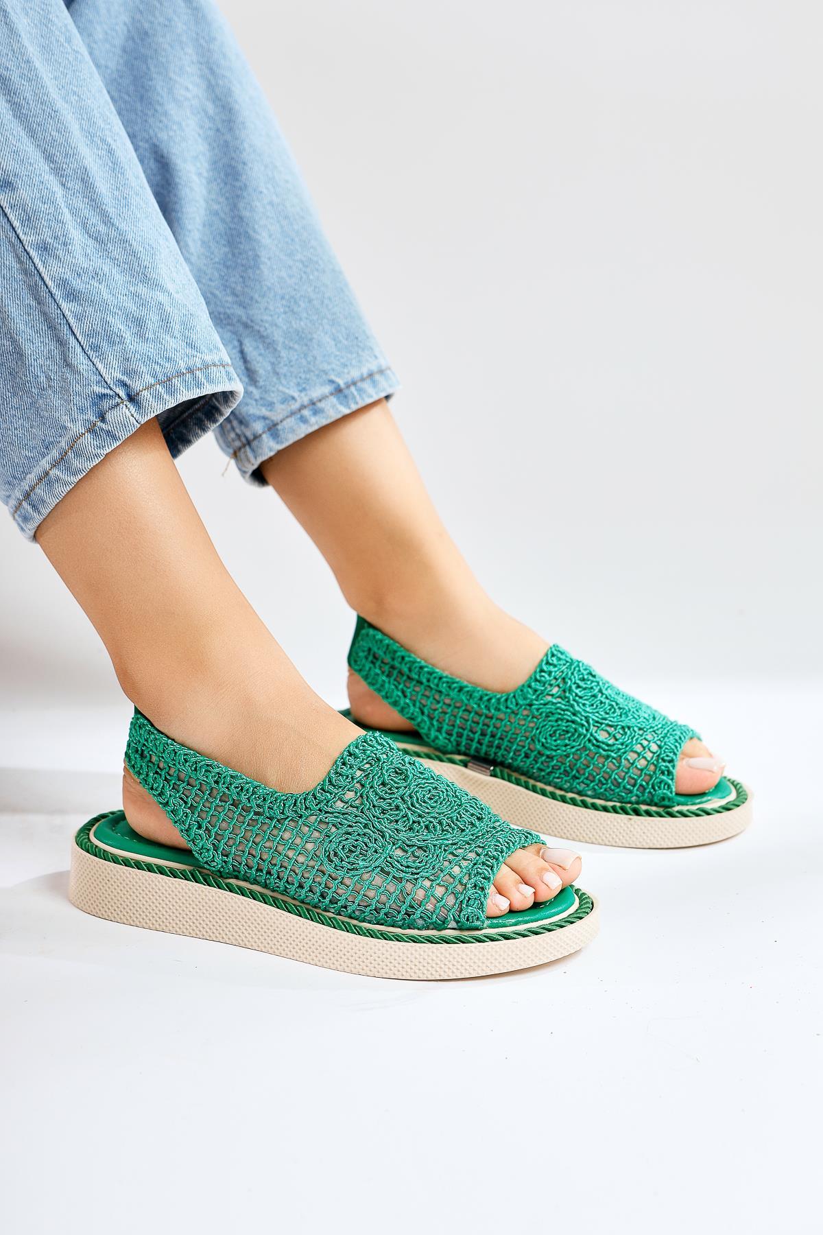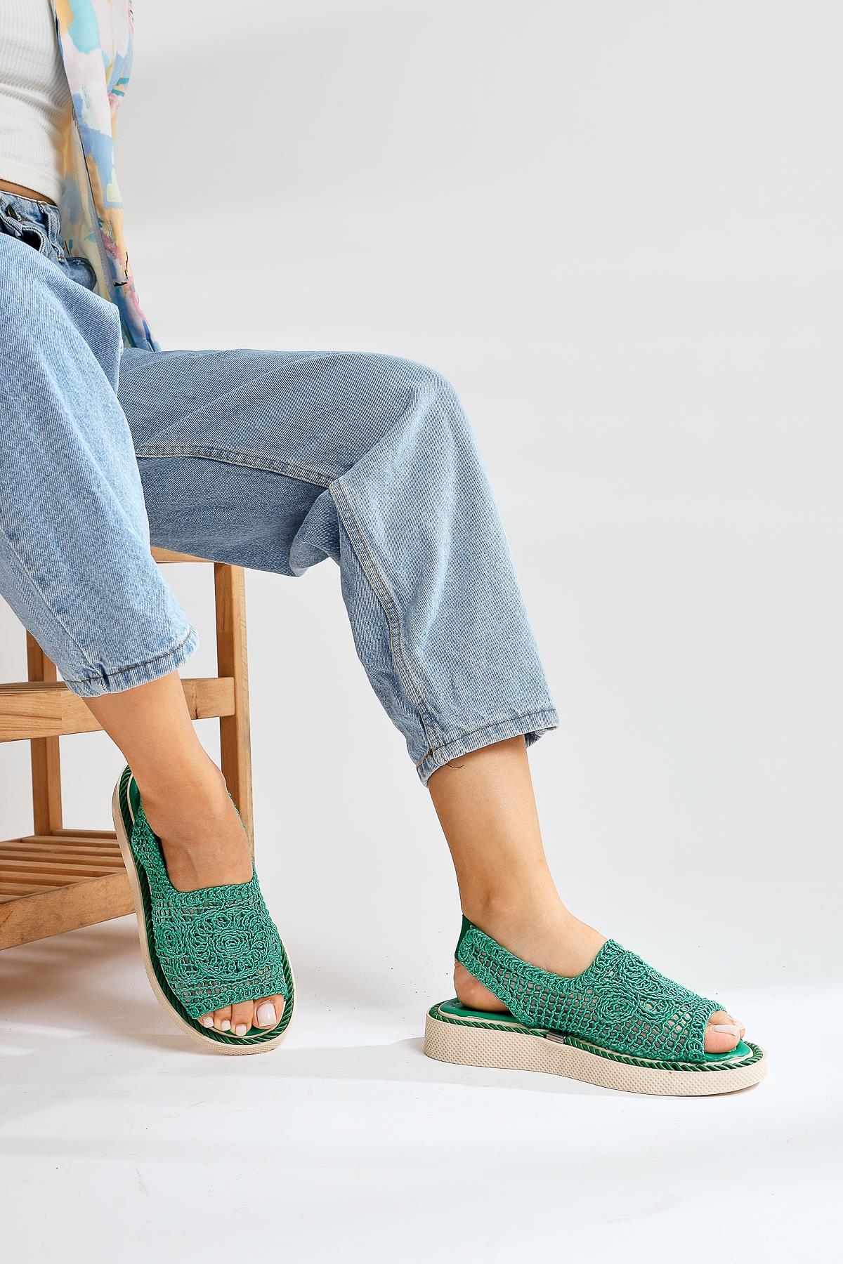 Nichola Yeşil Örgü Sandalet
