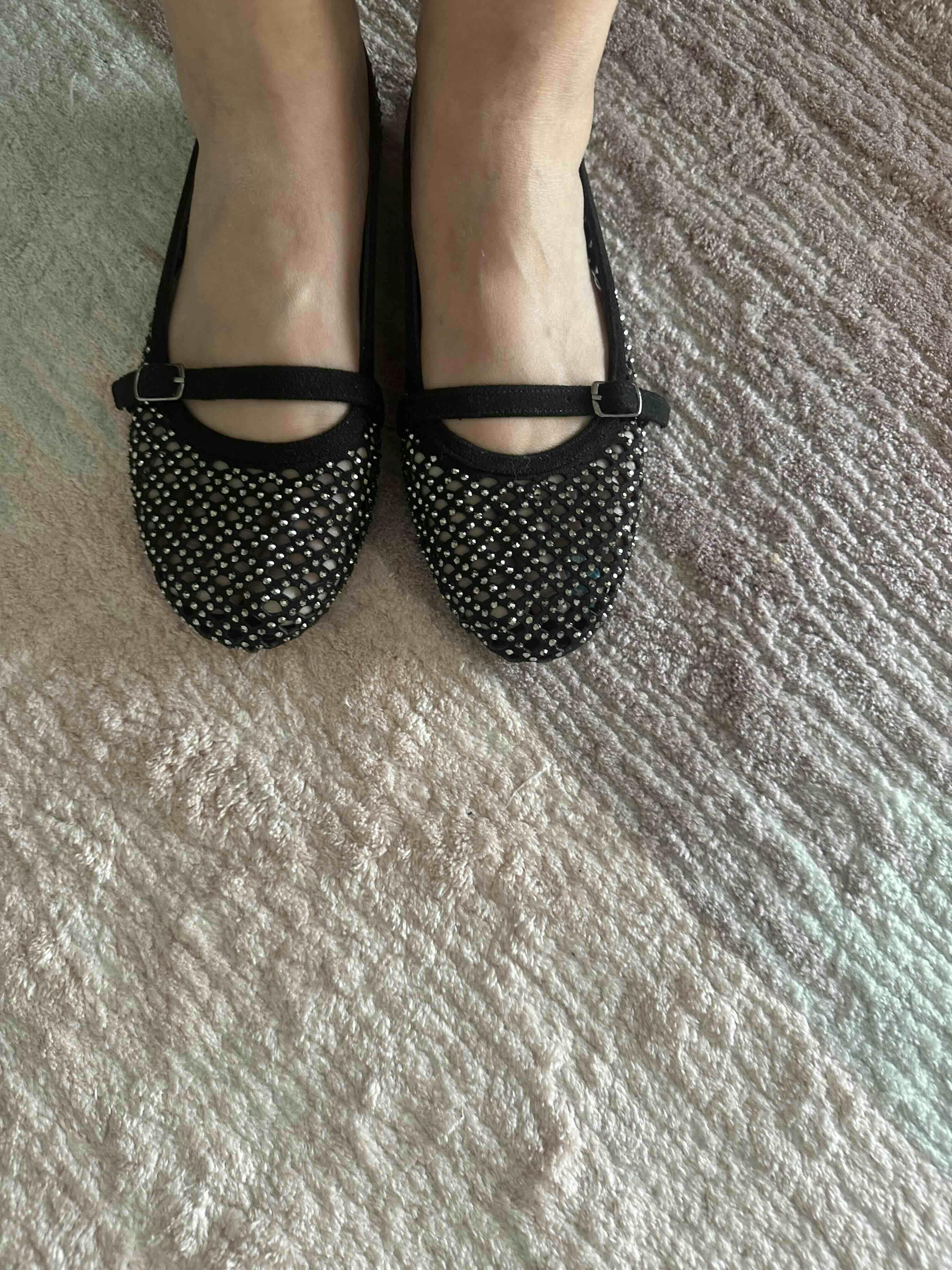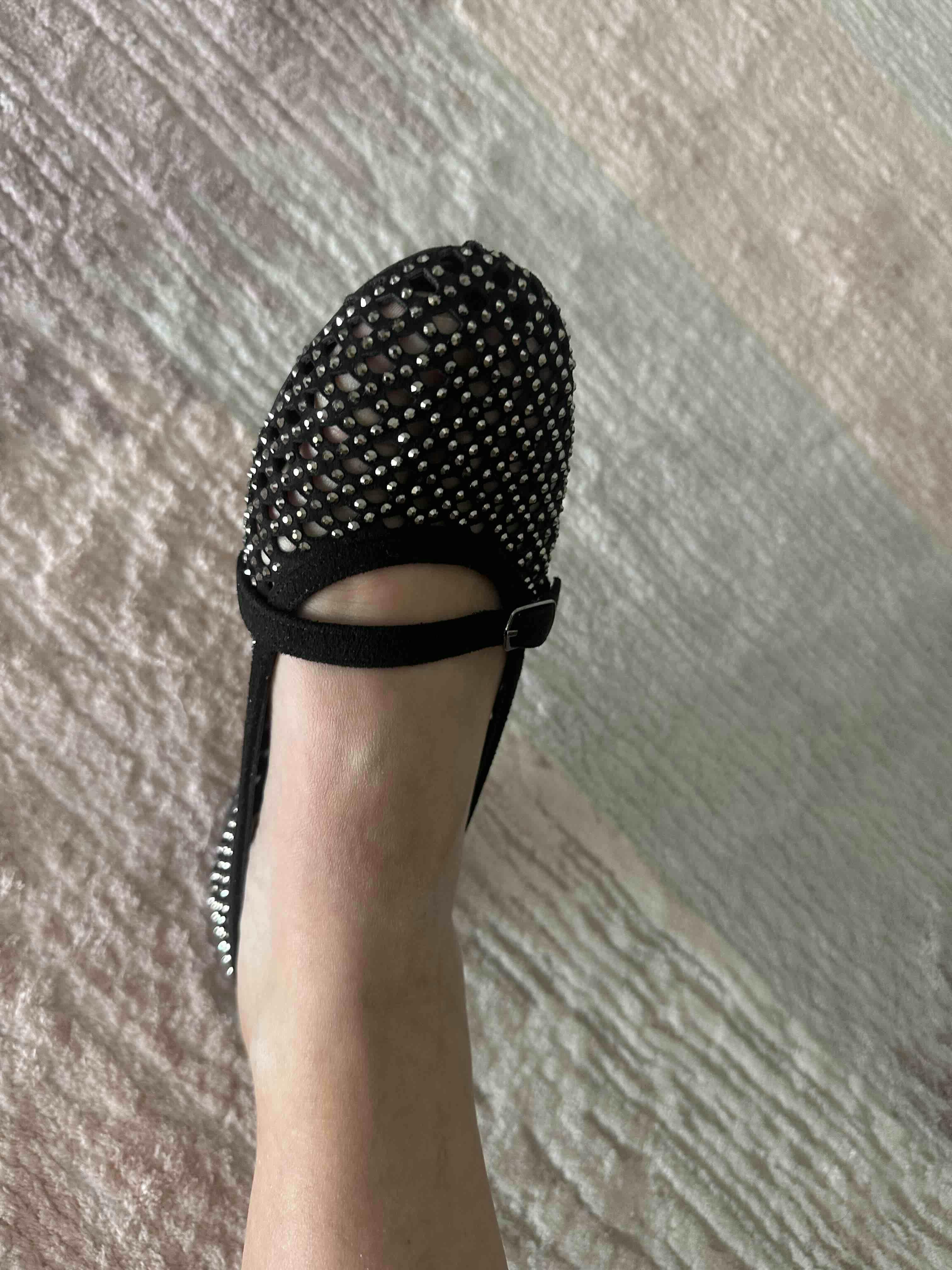 Nicole Siyah Süet Oval Burunlu Delikli Taş Detaylı Tek Bantlı Günlük Kadın Ayakkabı