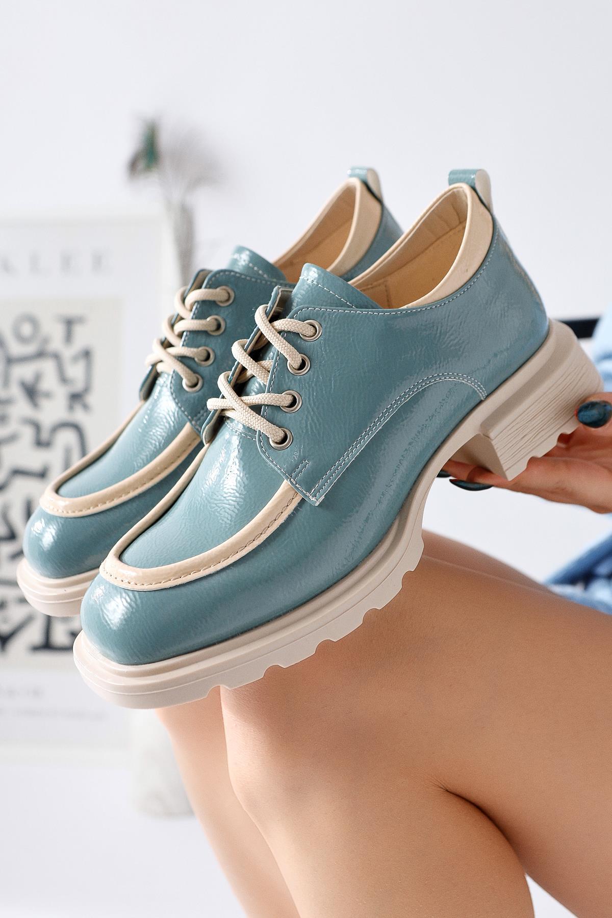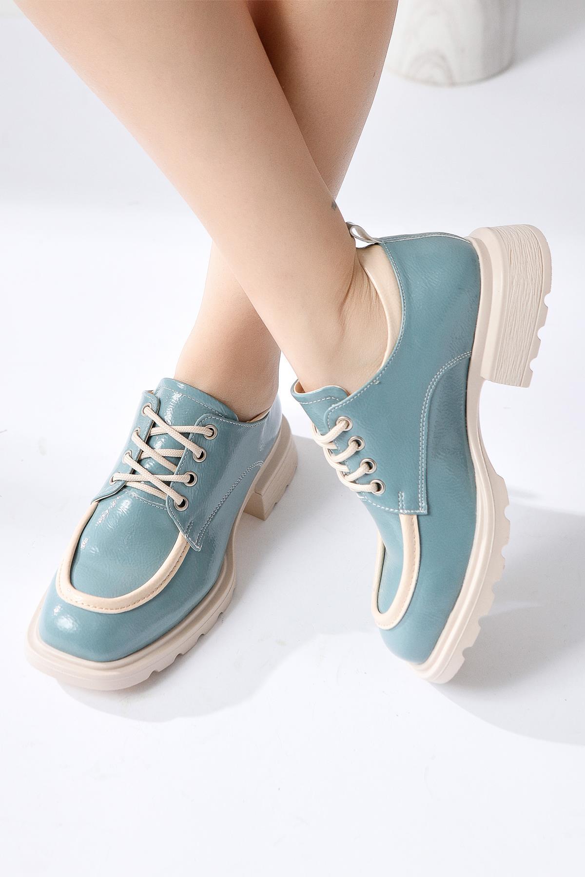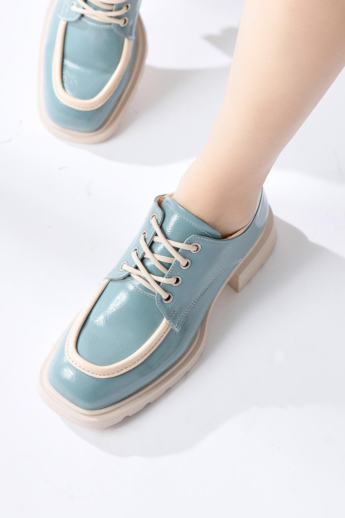 Niven Mint Kırışık Rugan Bej Detaylı Makosen Ayakkabı