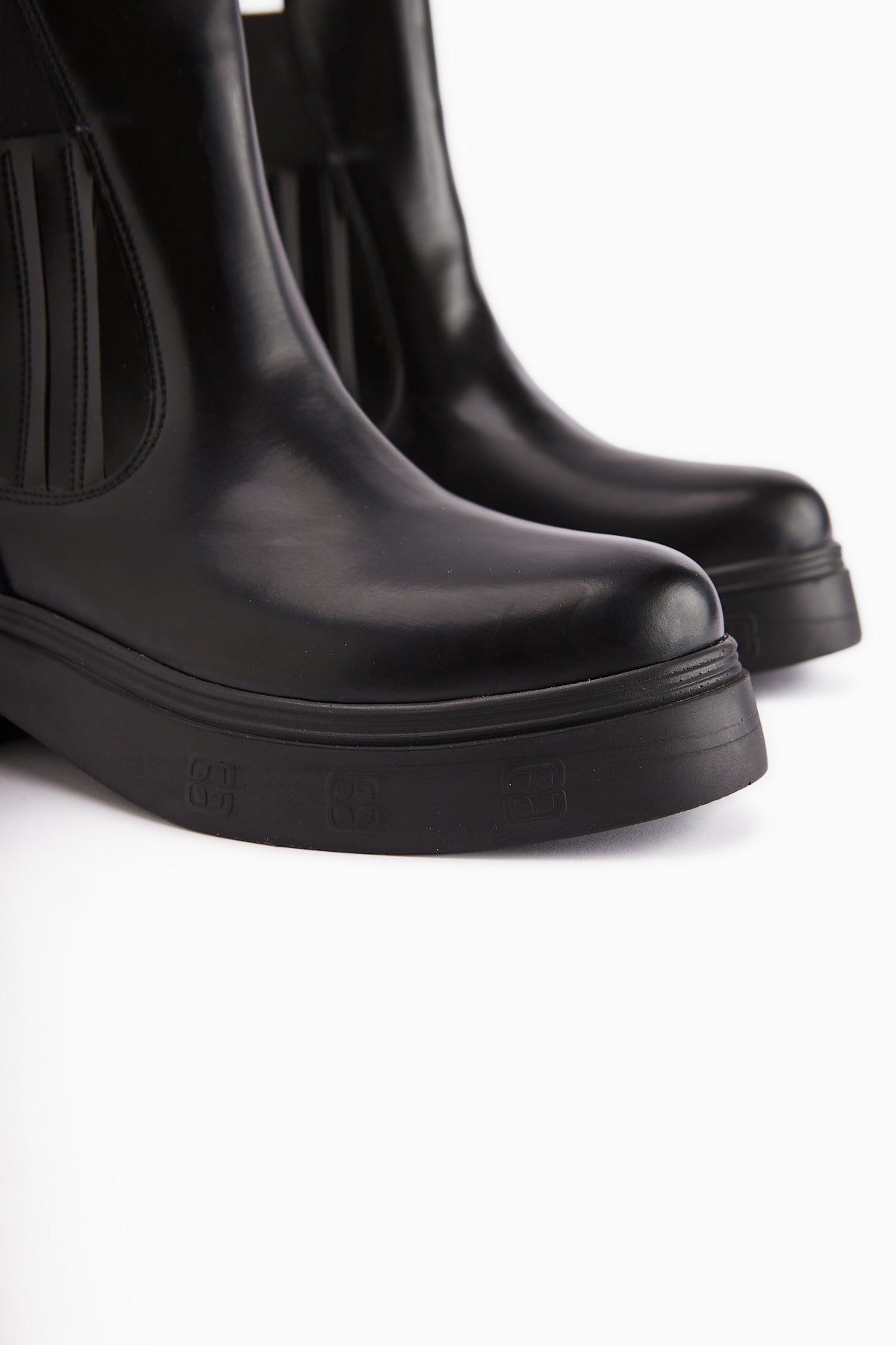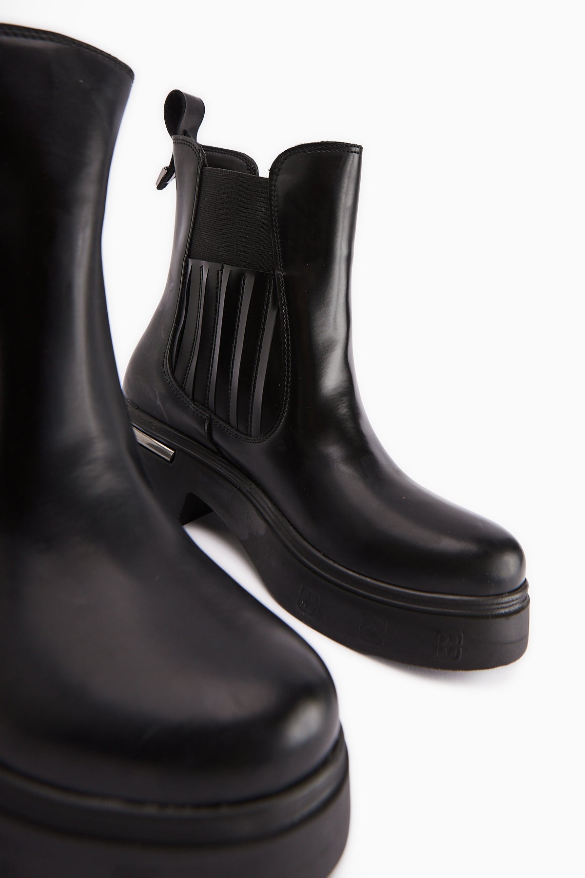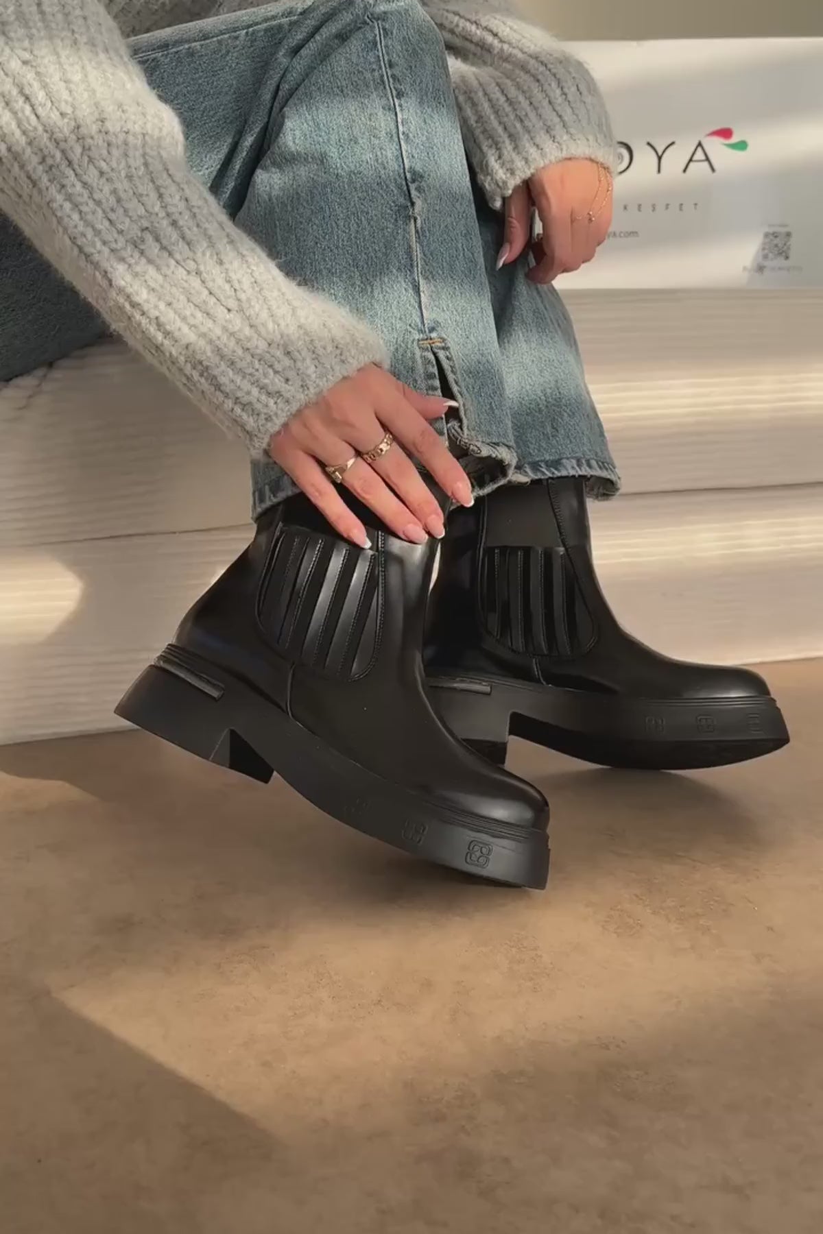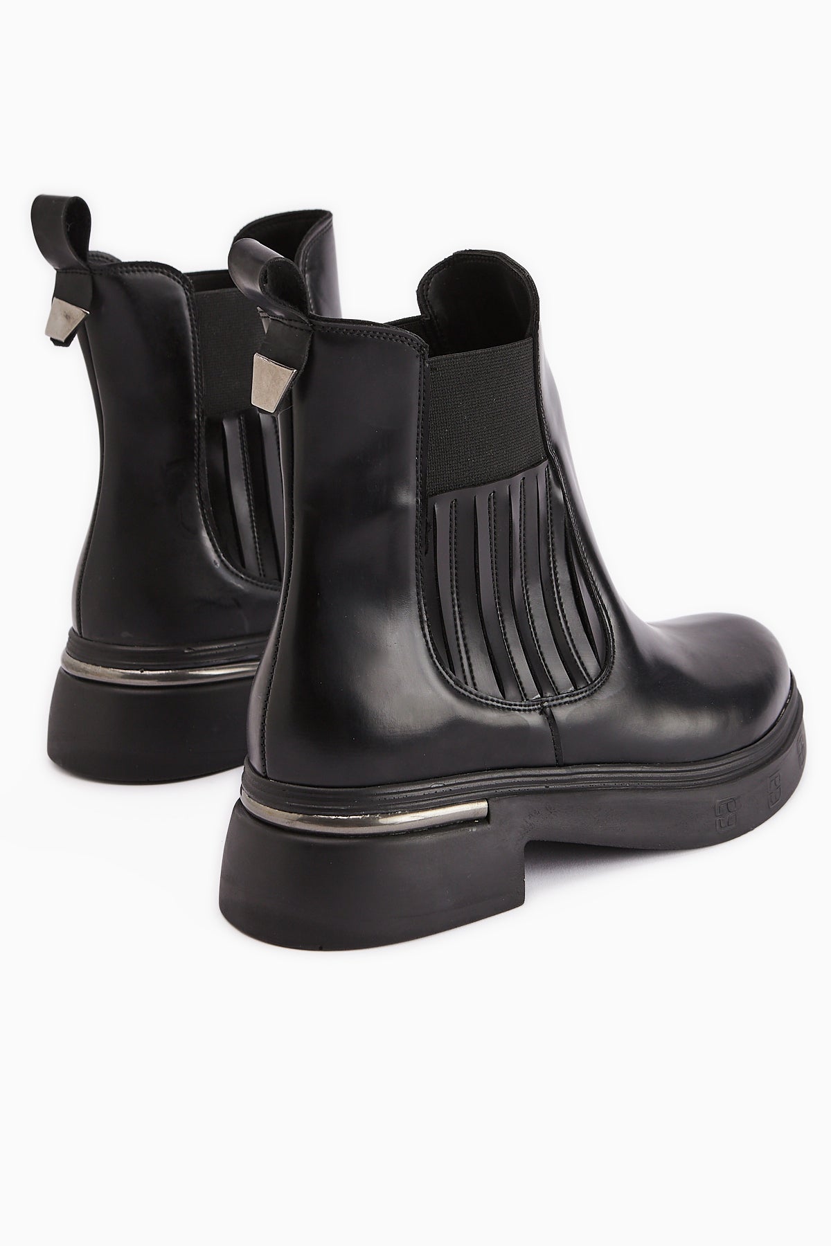 Pava Siyah Rugan Topuk Detaylı Çekme Bot
