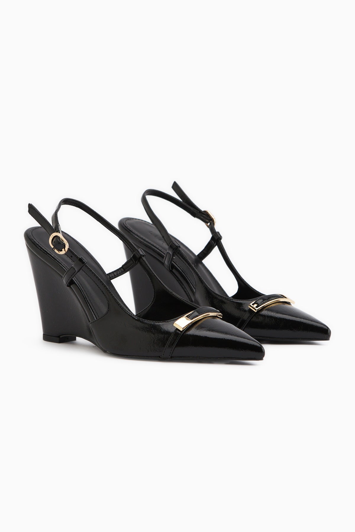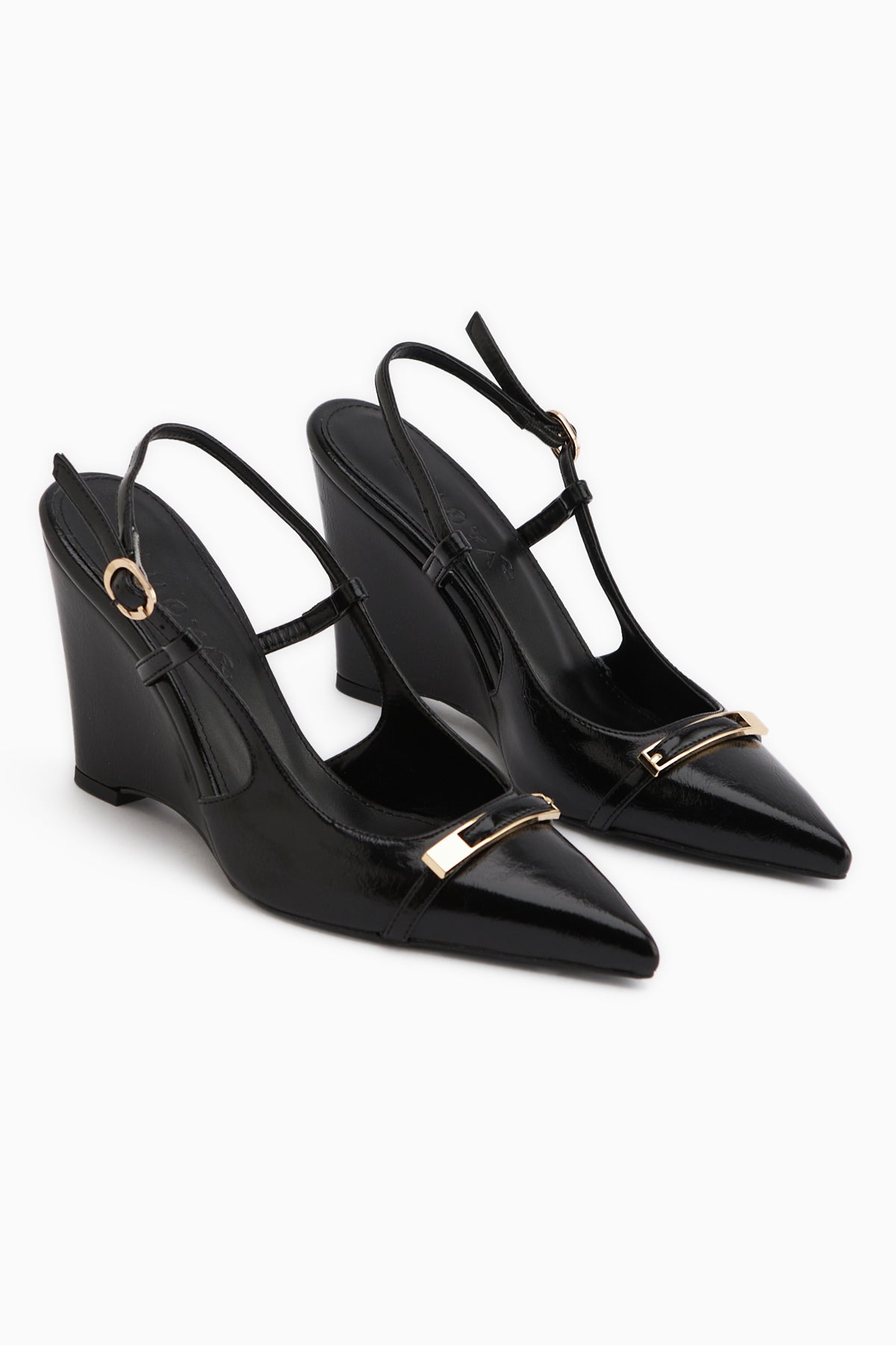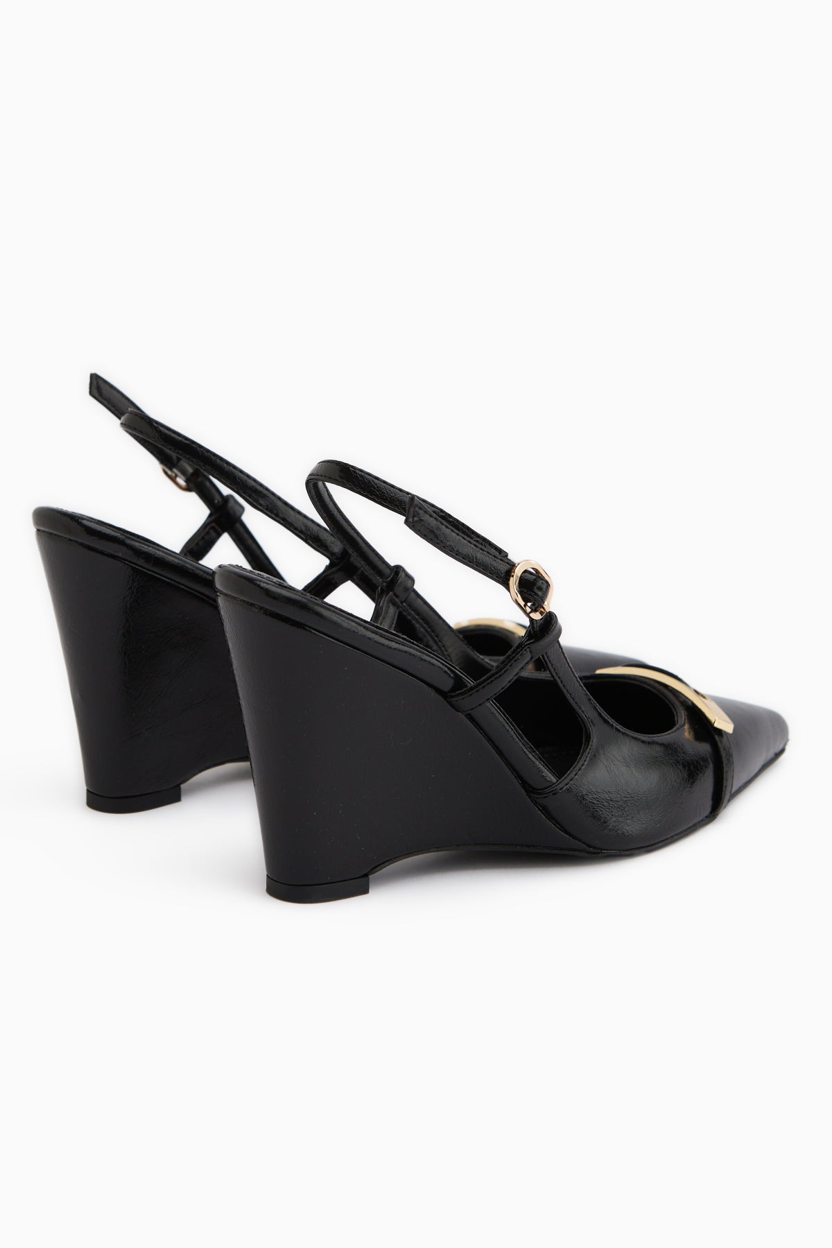 Phia Siyah Tokalı Dolgu Topuklu Kadın Sandalet