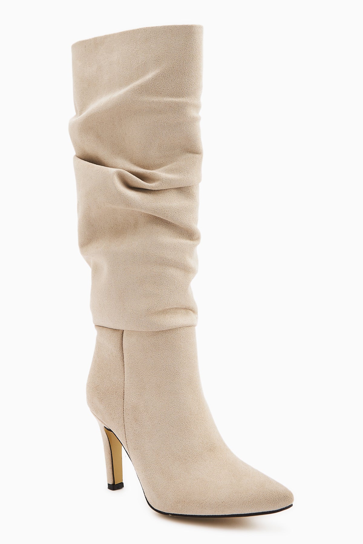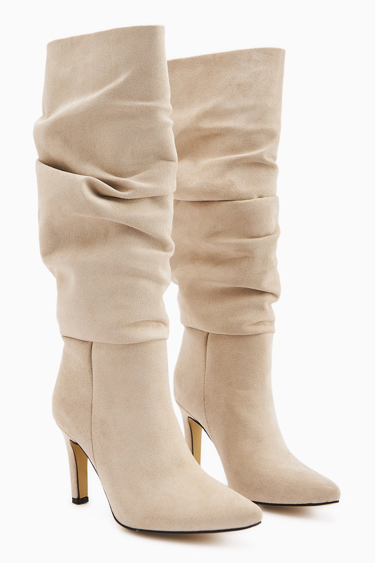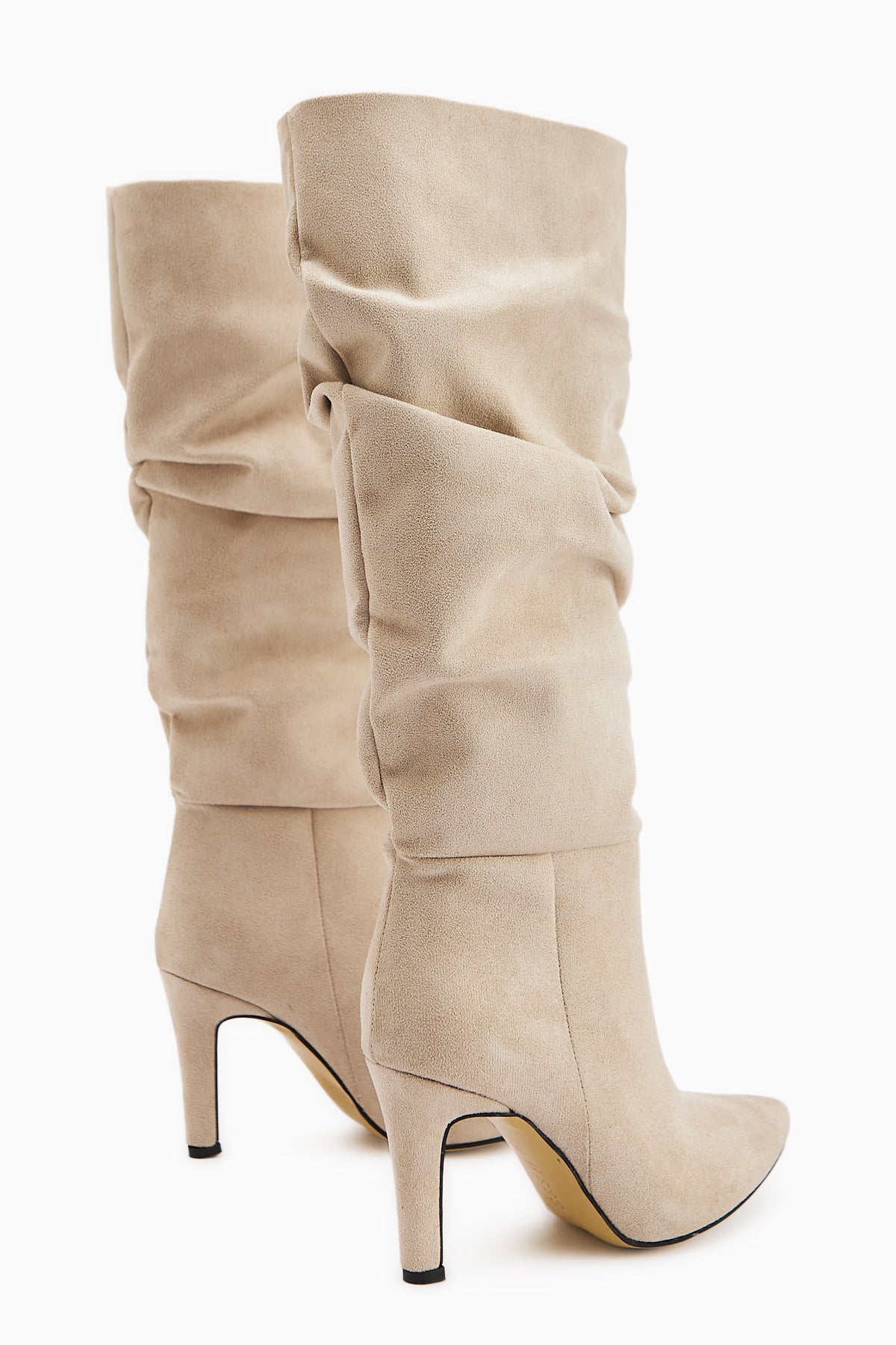 Rimaz Ten Süet Körüklü Uzun Sivri Topuklu Çizme