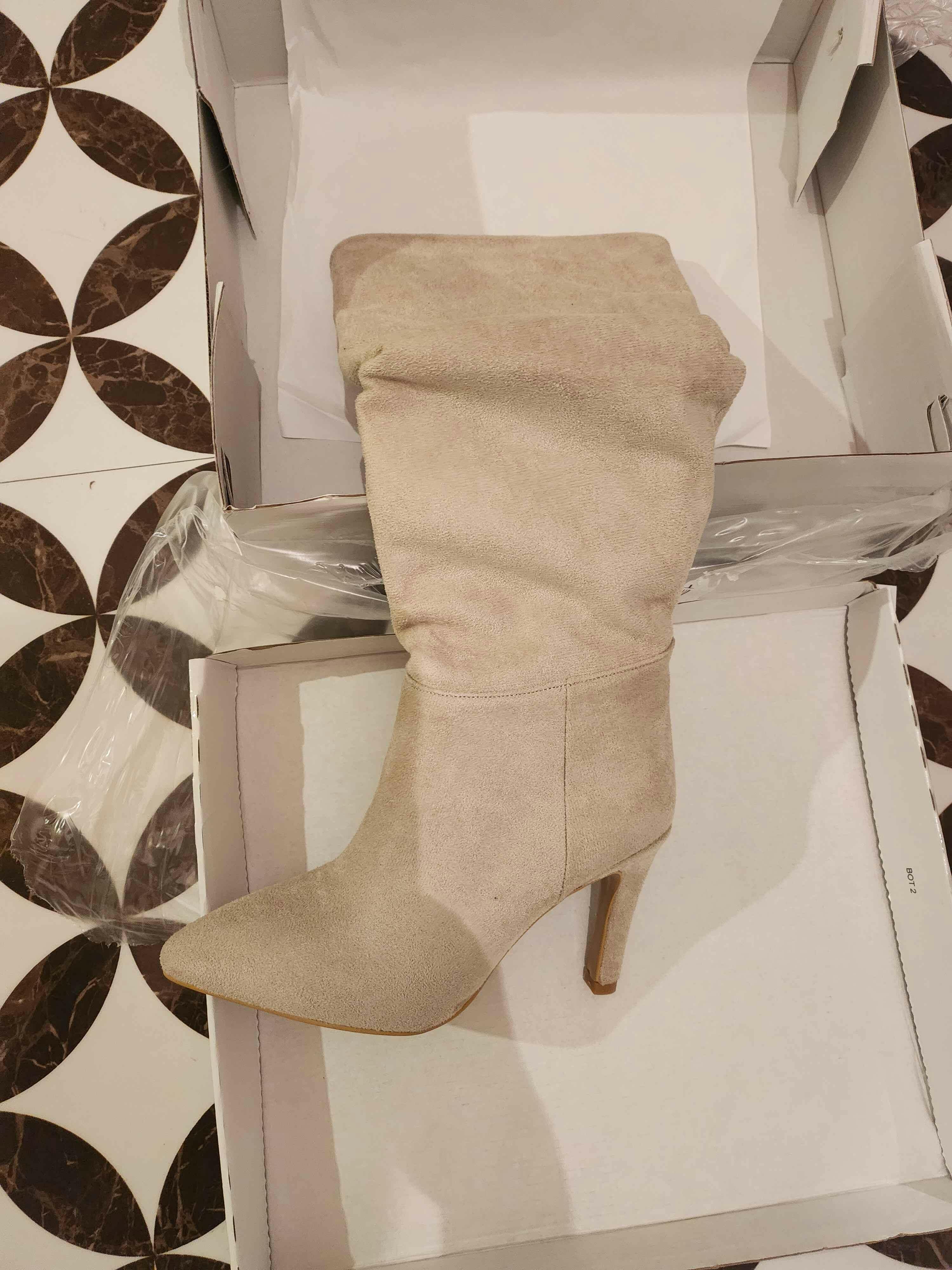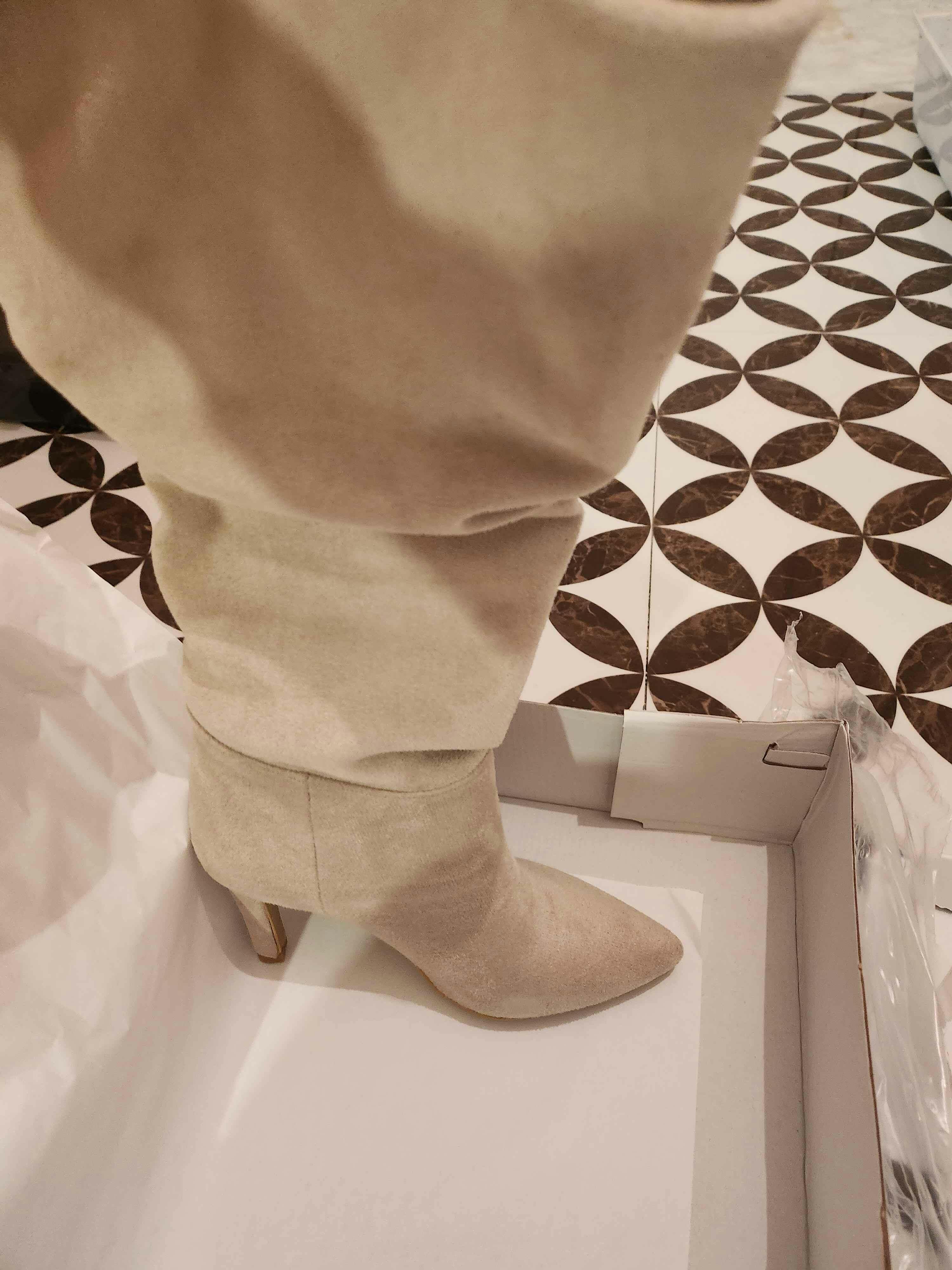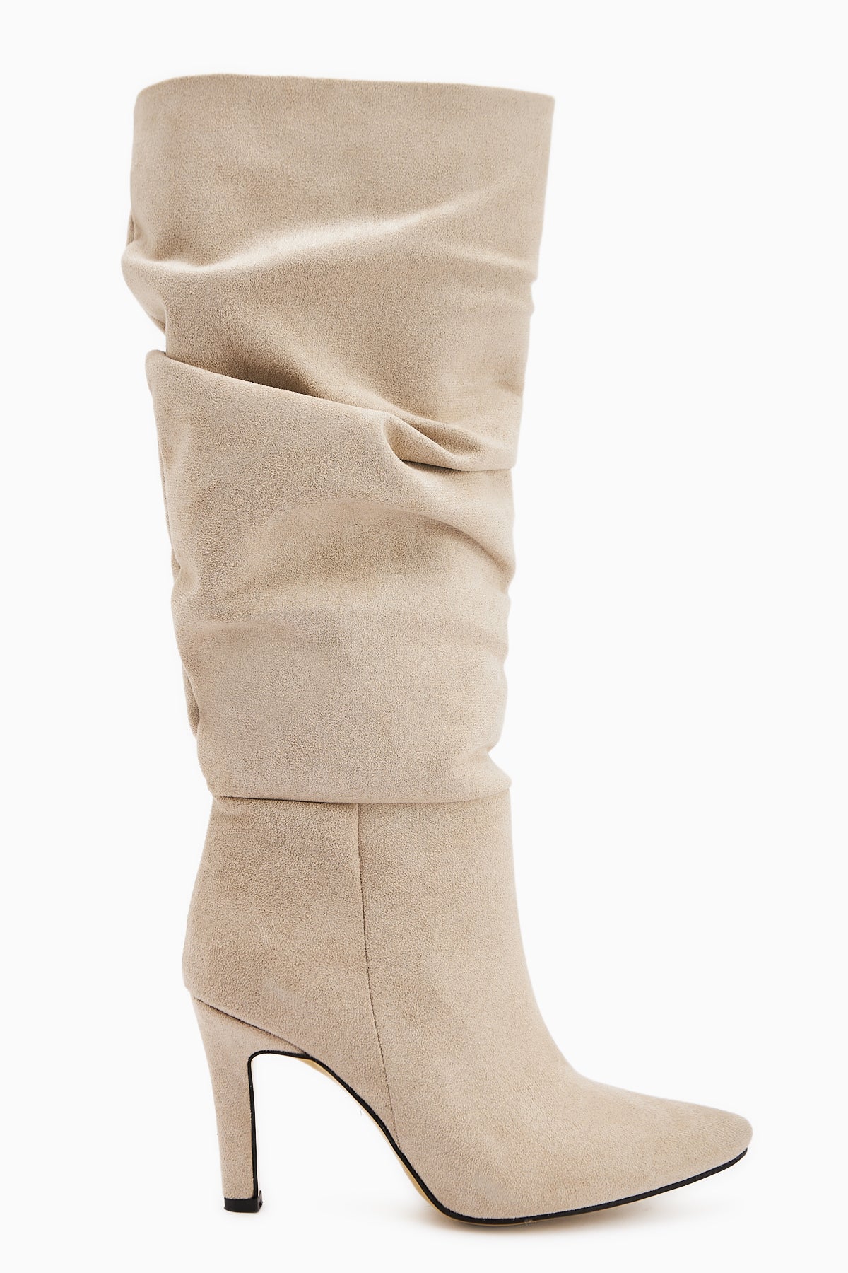 Rimaz Ten Süet Körüklü Uzun Sivri Topuklu Çizme