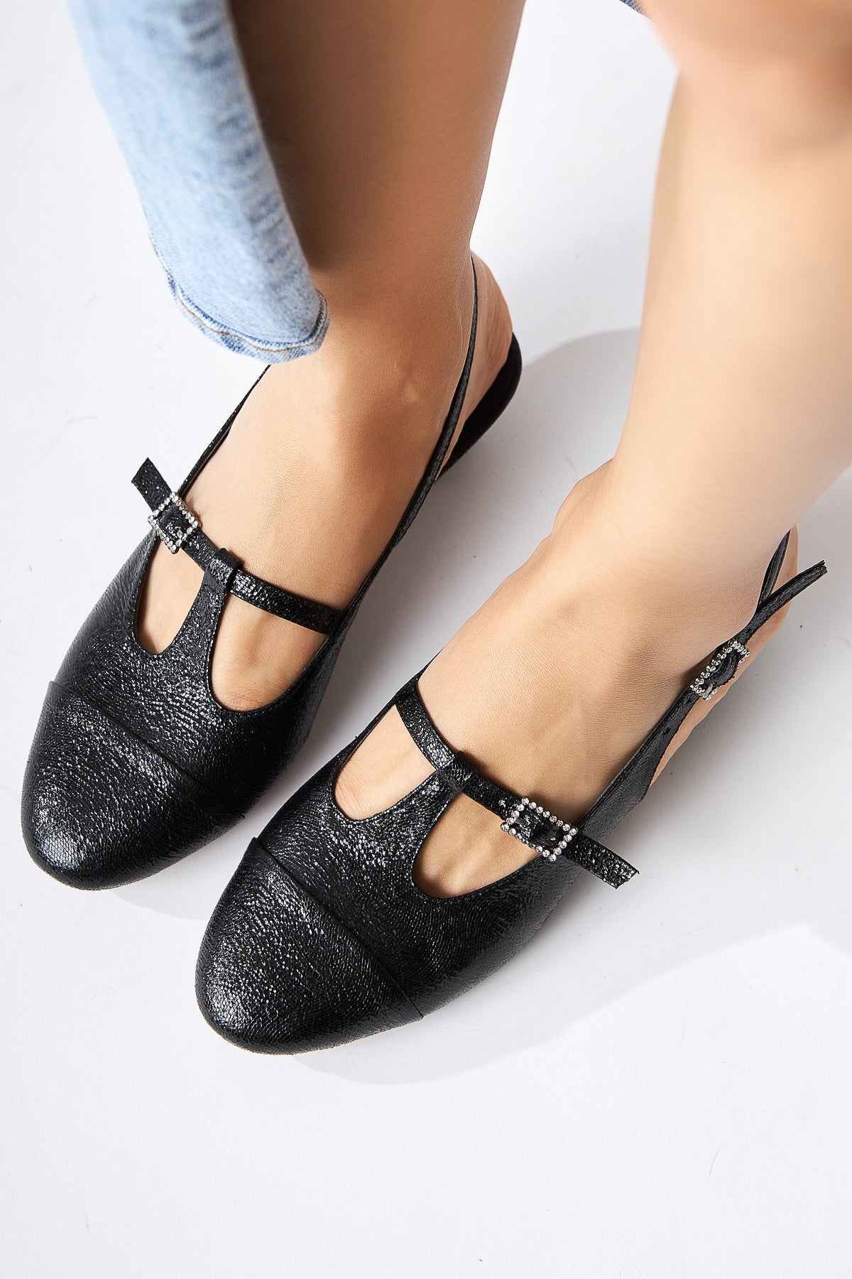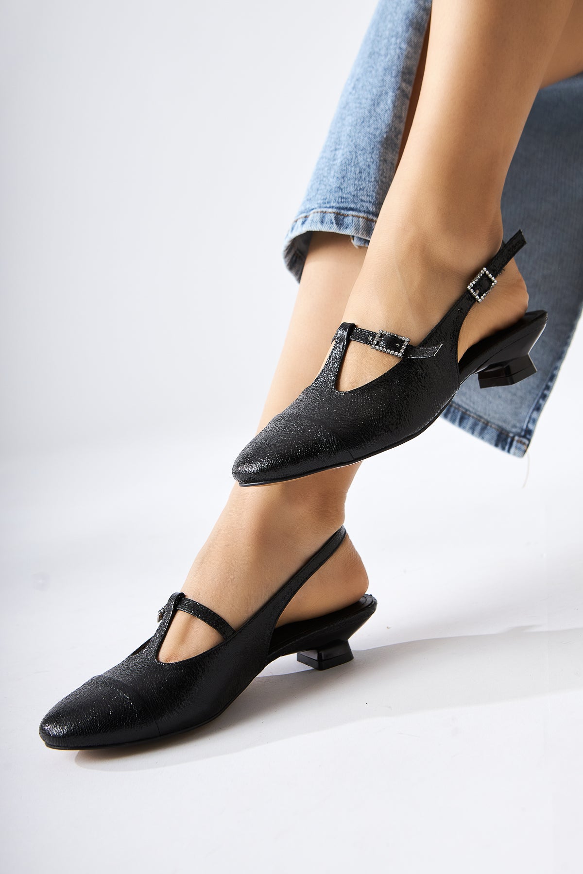 Roula Siyah Tokalı Önü Kapalı Kadın Sandalet