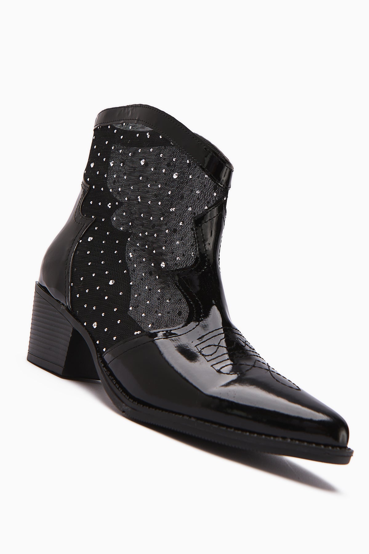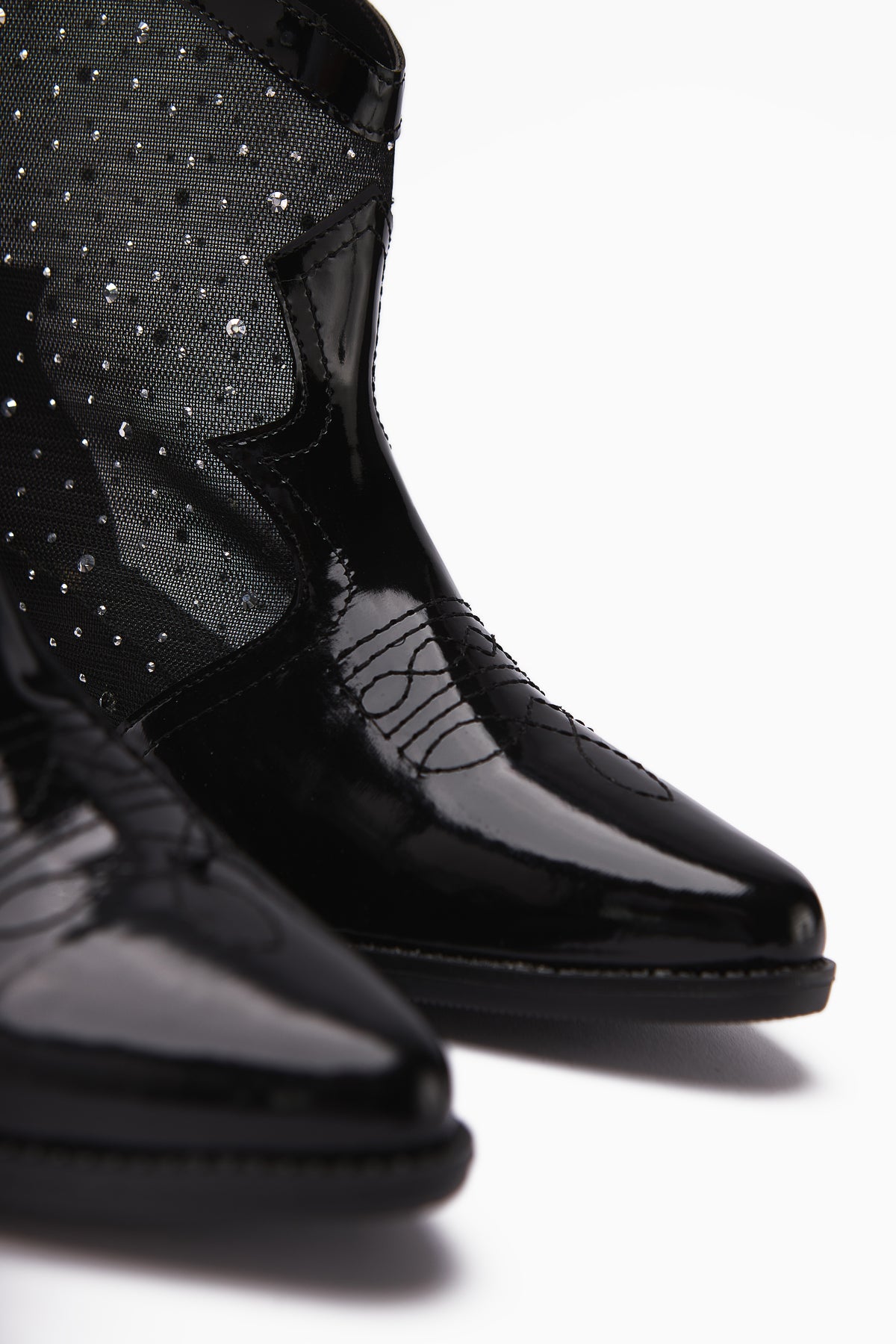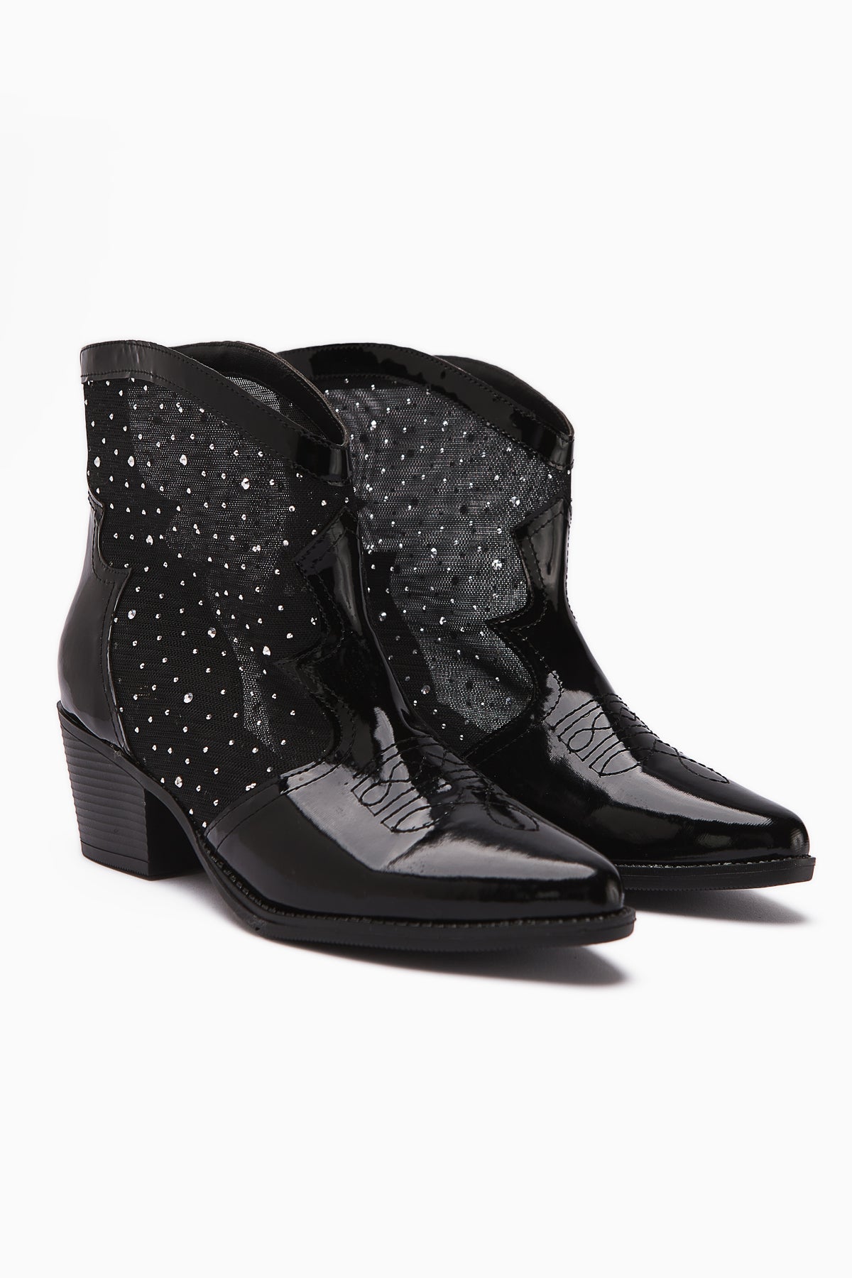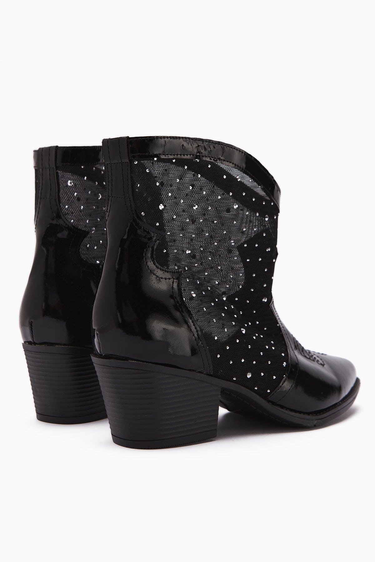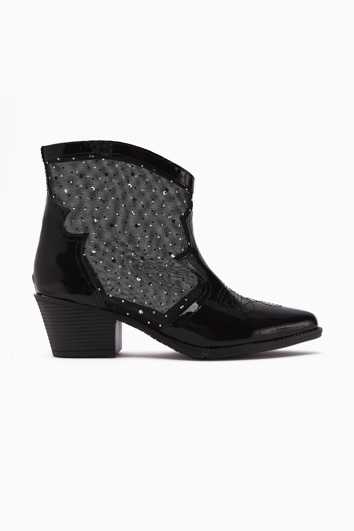 Rudi Siyah Rugan Nakışlı Western Kadın Taşlı Yazlık Bot