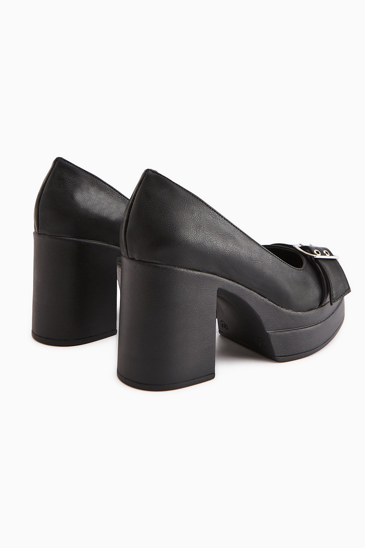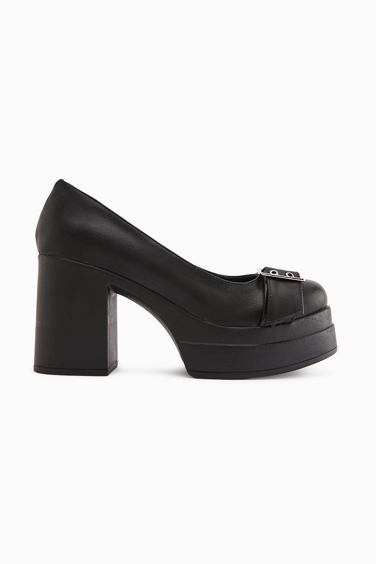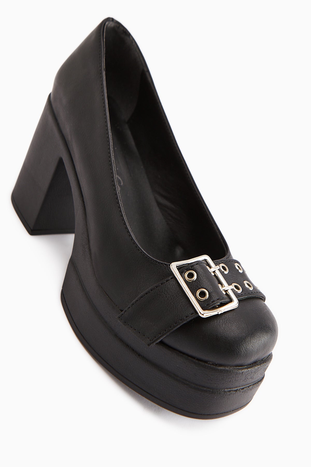 Salin Siyah Kemer Detaylı Dekolteli Topuklu Günlük Ayakkabı
