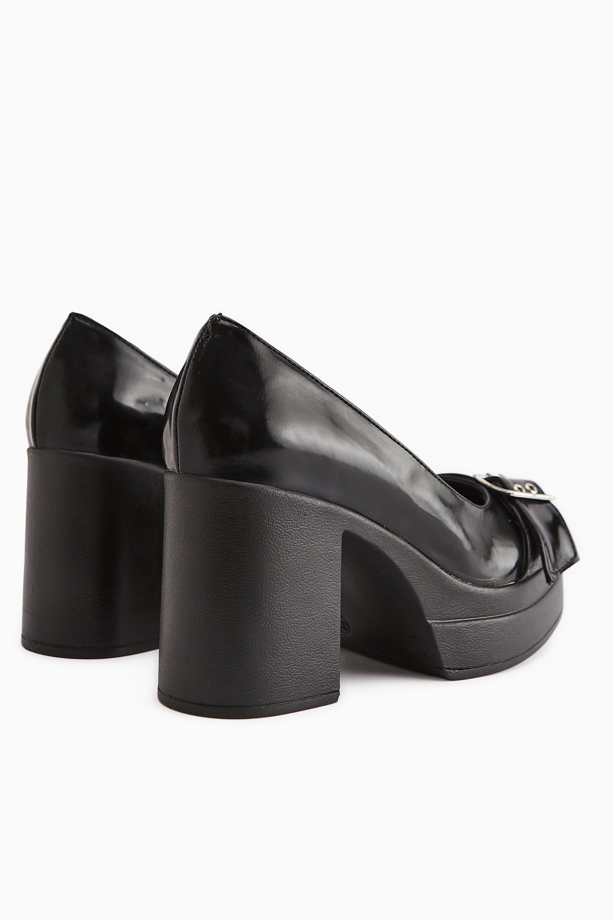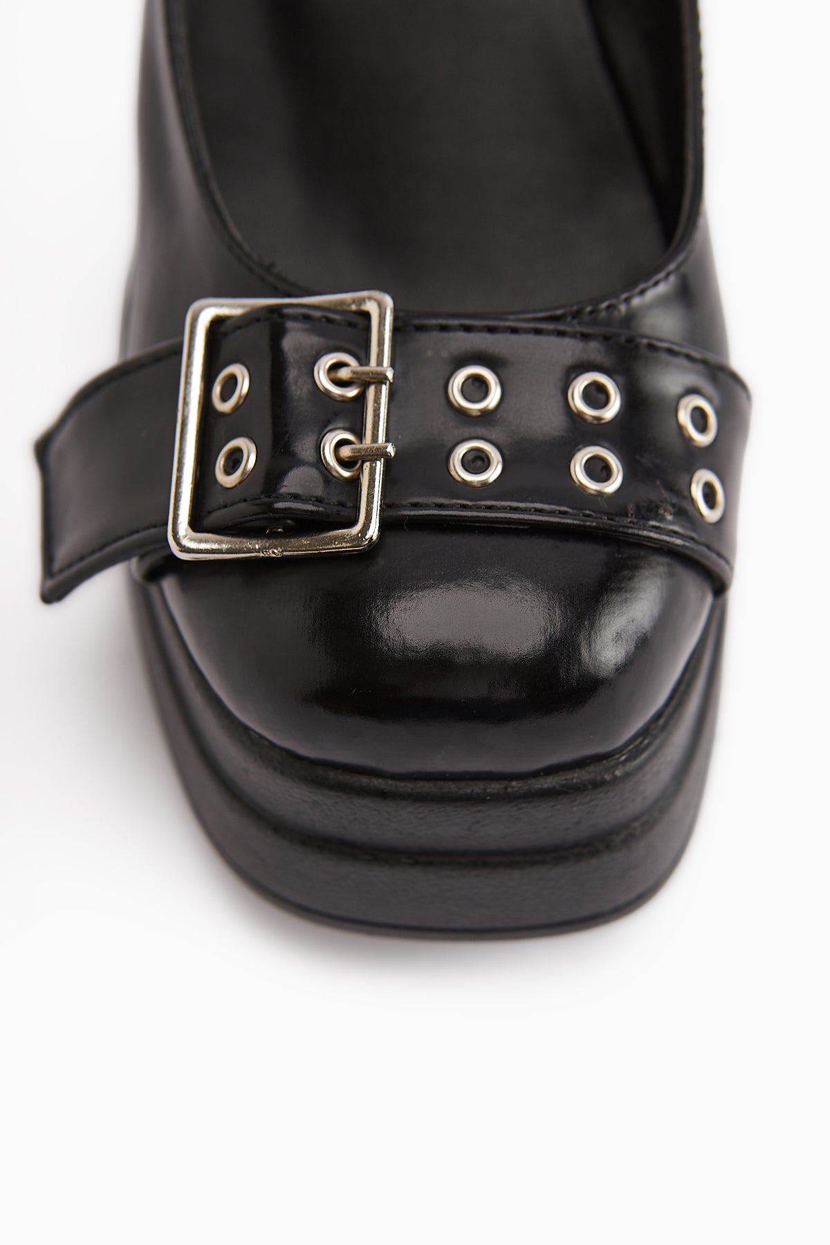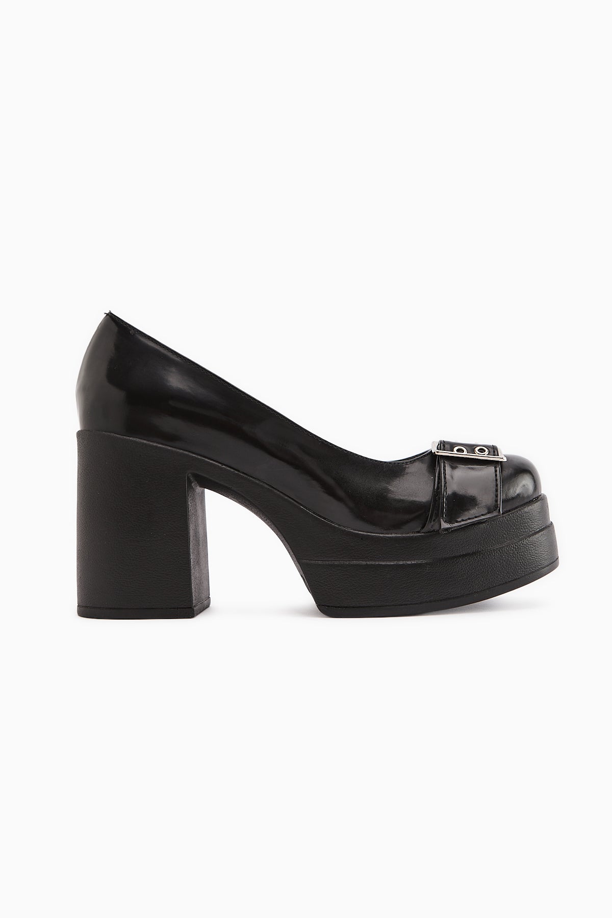 Salin Siyah Rugan Kemer Detaylı Dekolteli Topuklu Günlük Ayakkabı