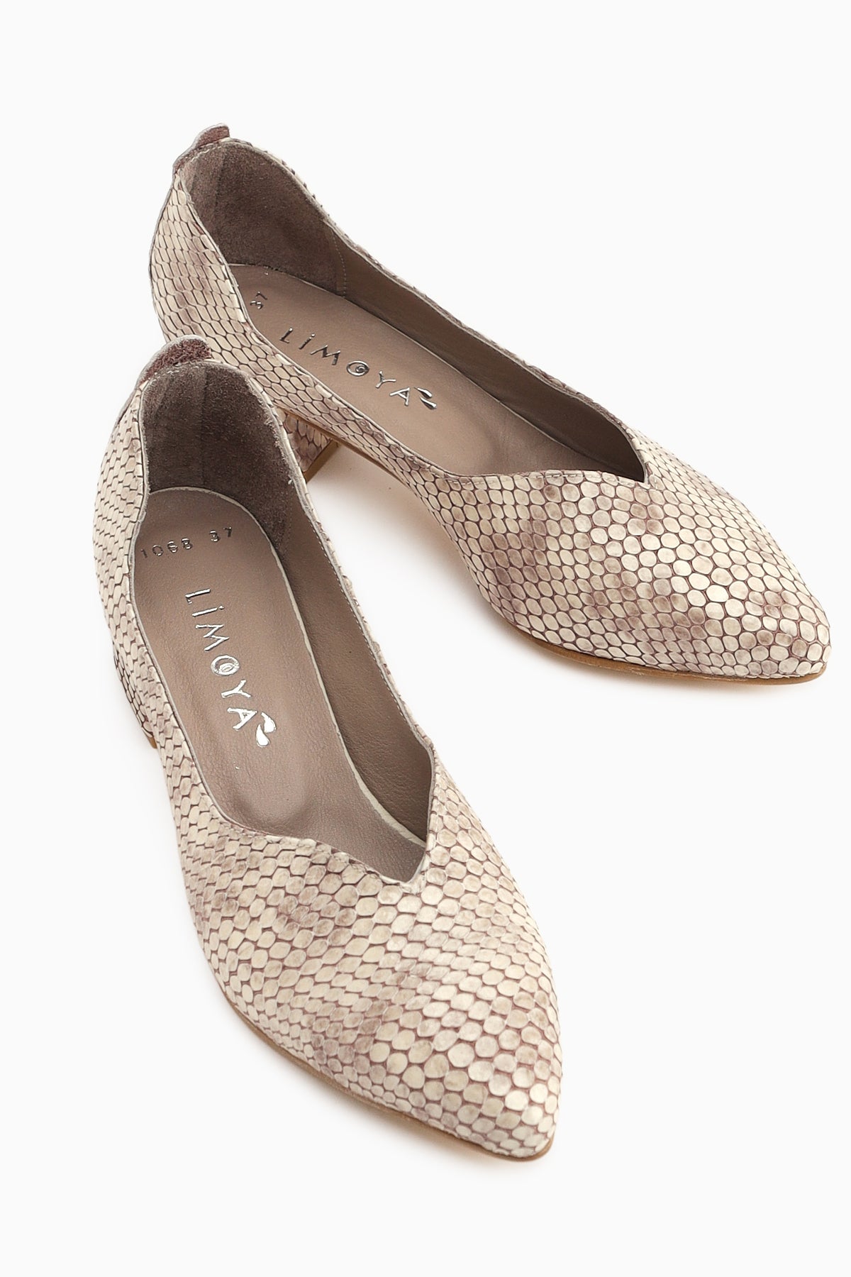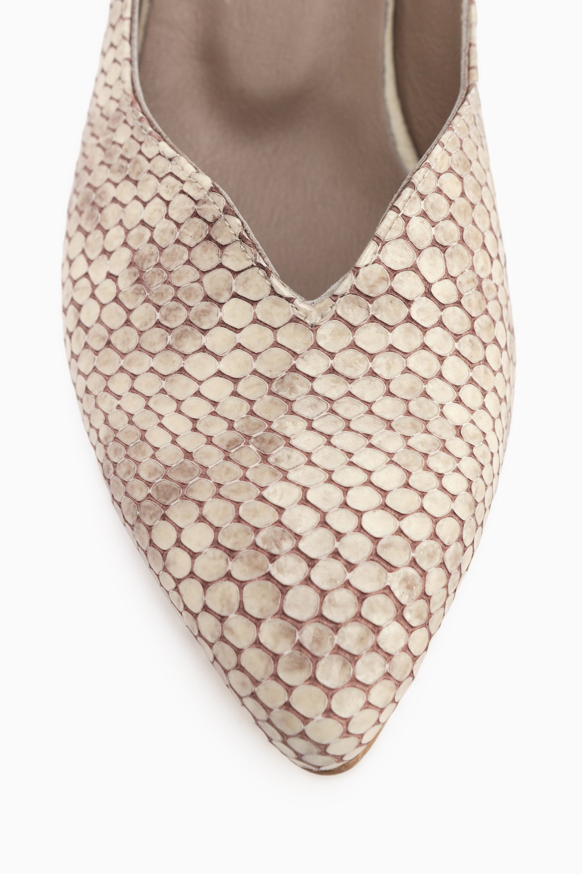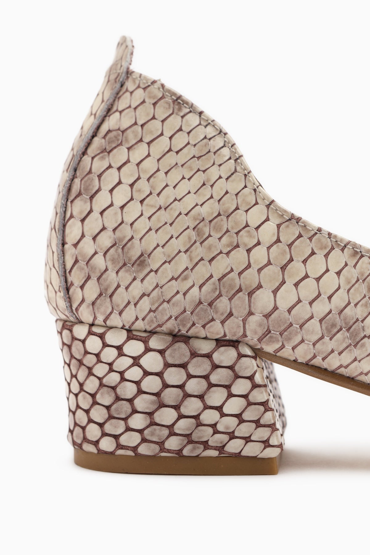 Samia Hakiki Deri Bej Yılan Desenli Kalın Topuklu Kadın Ayakkabı