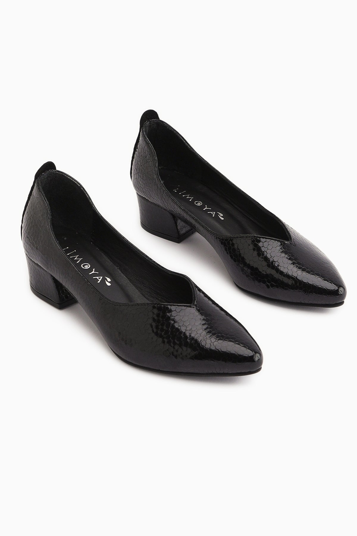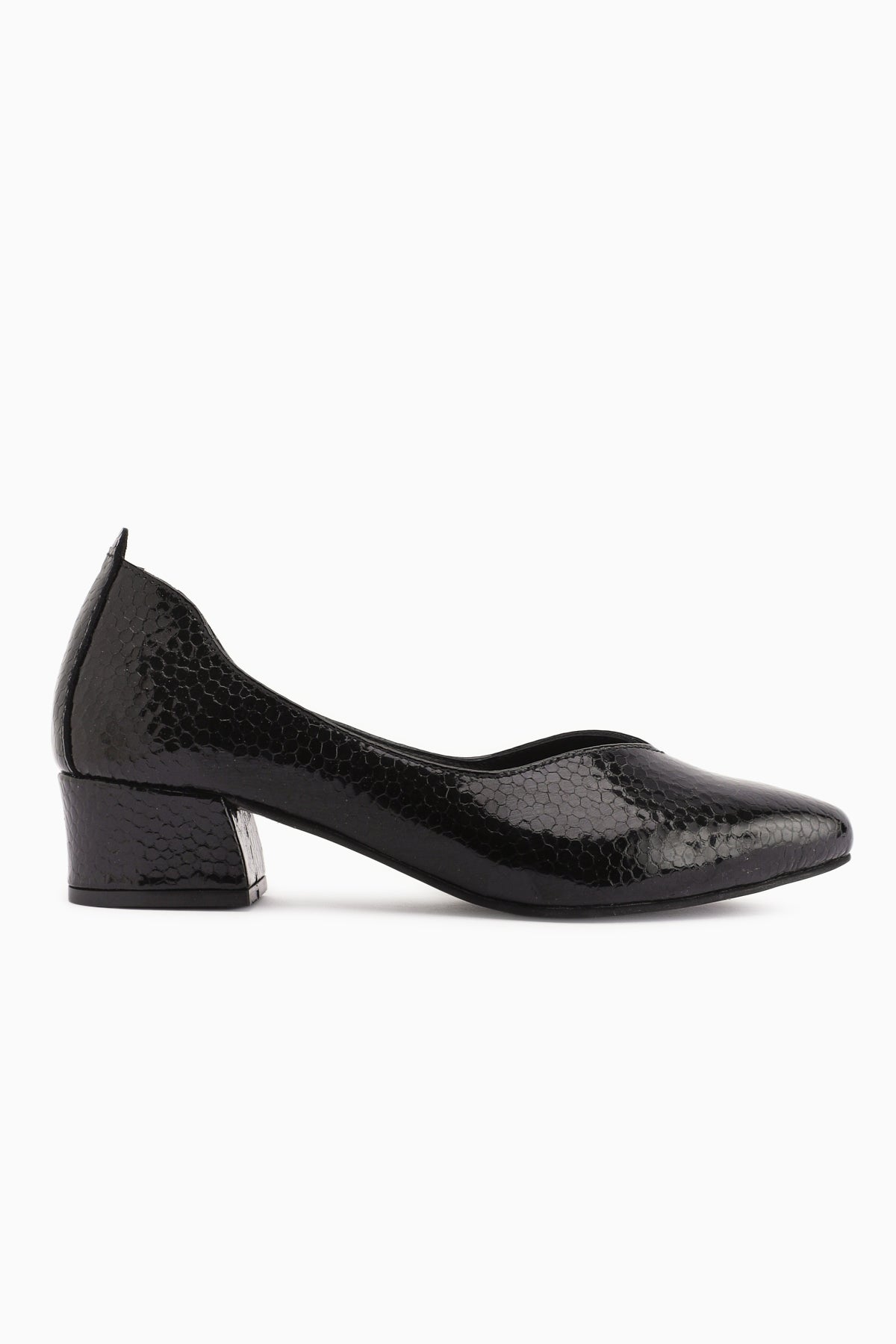 Samia Hakiki Deri Siyah Yılan Desenli Kalın Topuklu Kadın Ayakkabı