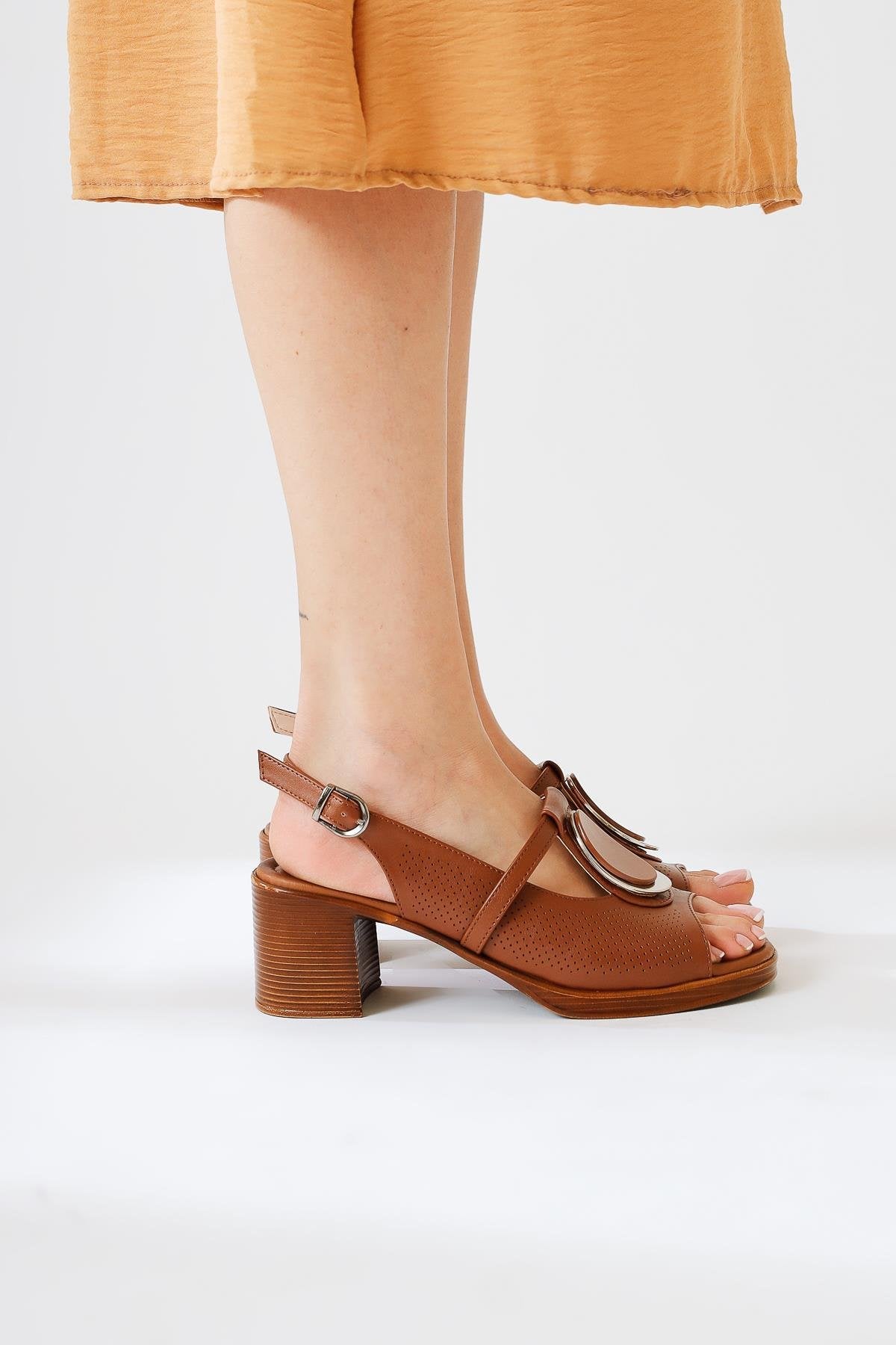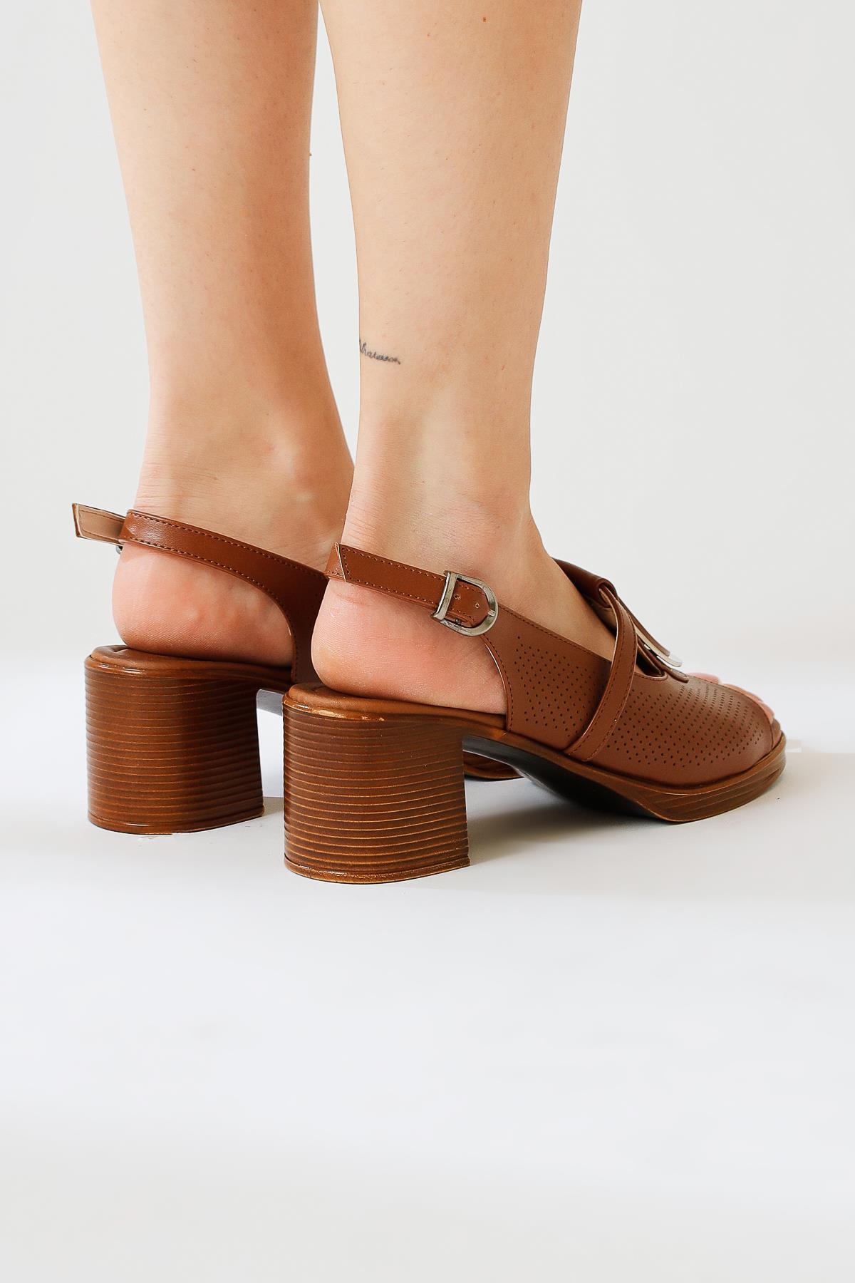 Shelby Taba Toka Detaylı Topuklu Sandalet