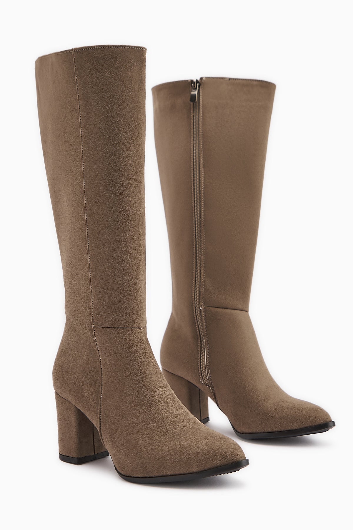 Tatum Vizon Süet Sivri Burunlu Orta Topuklu Çizme