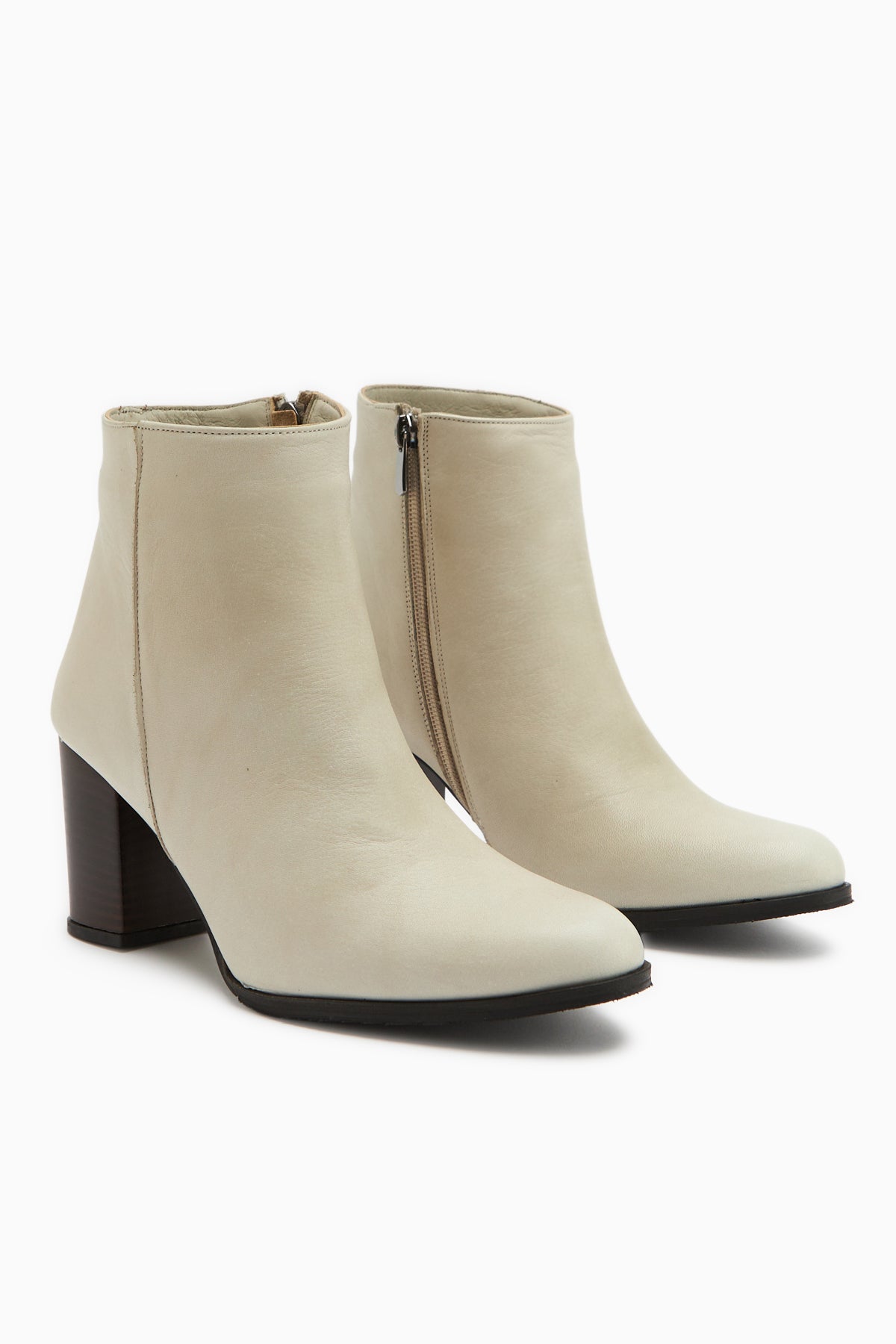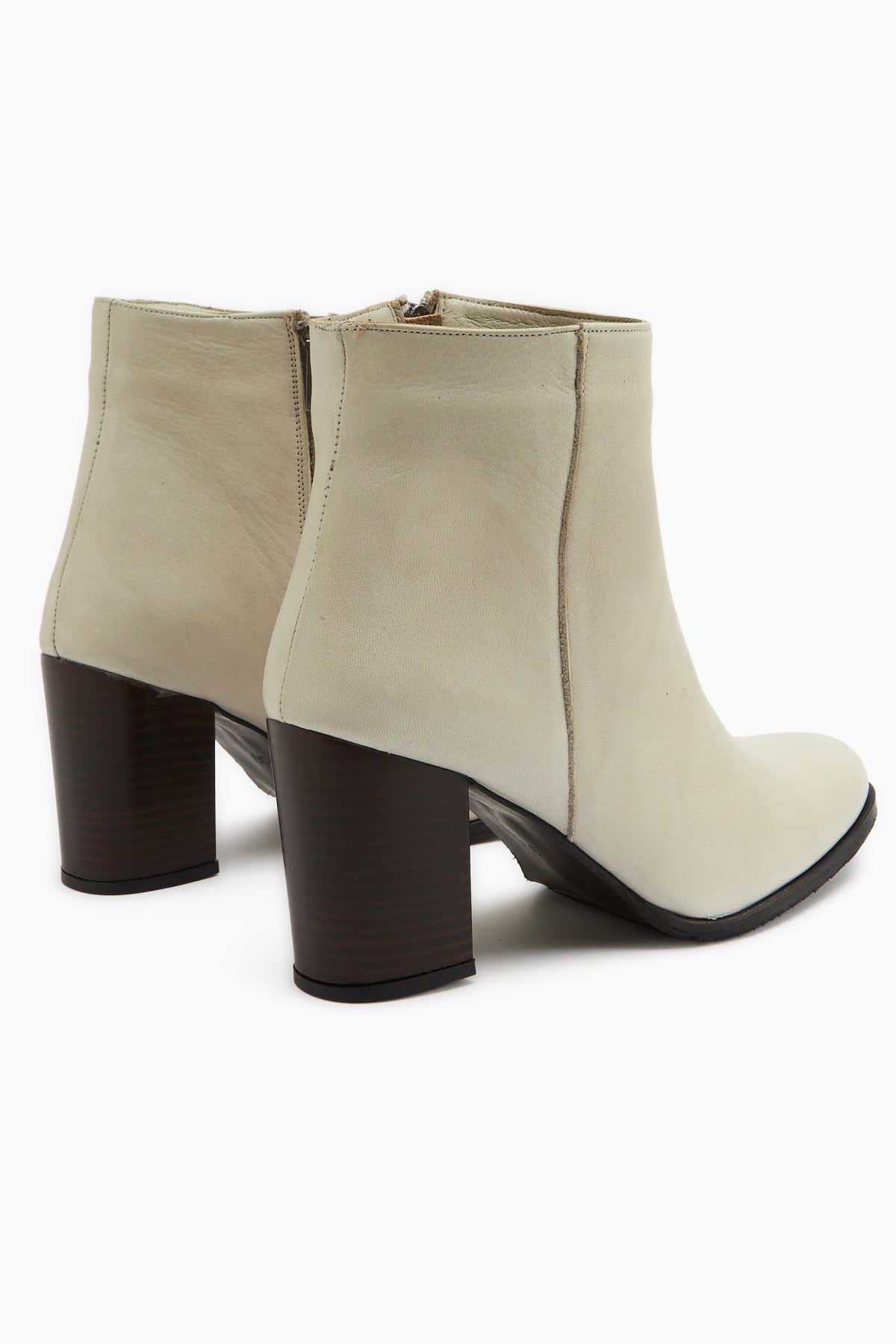 Teres Hakiki Deri Bej Topuklu Kadın Bot