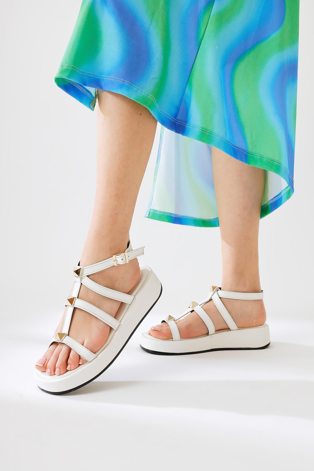 Thurza Beyaz Kalın Tabanlı Sandalet