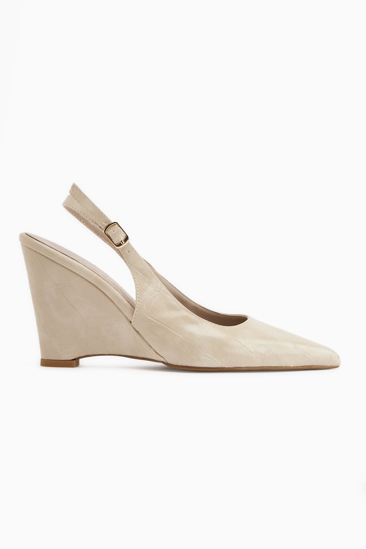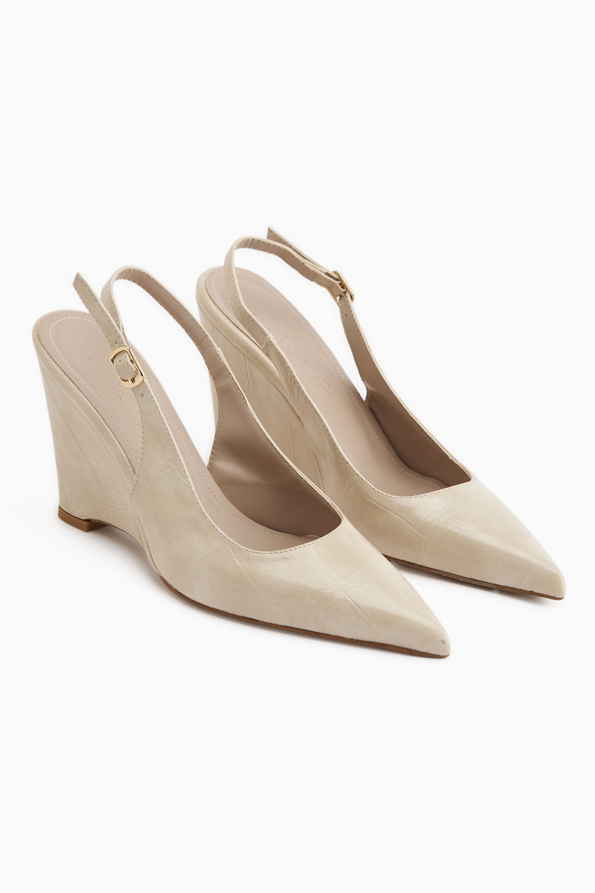 Tira Bej Dolgu Topuklu Sivri Burunlu Kadın Sandalet