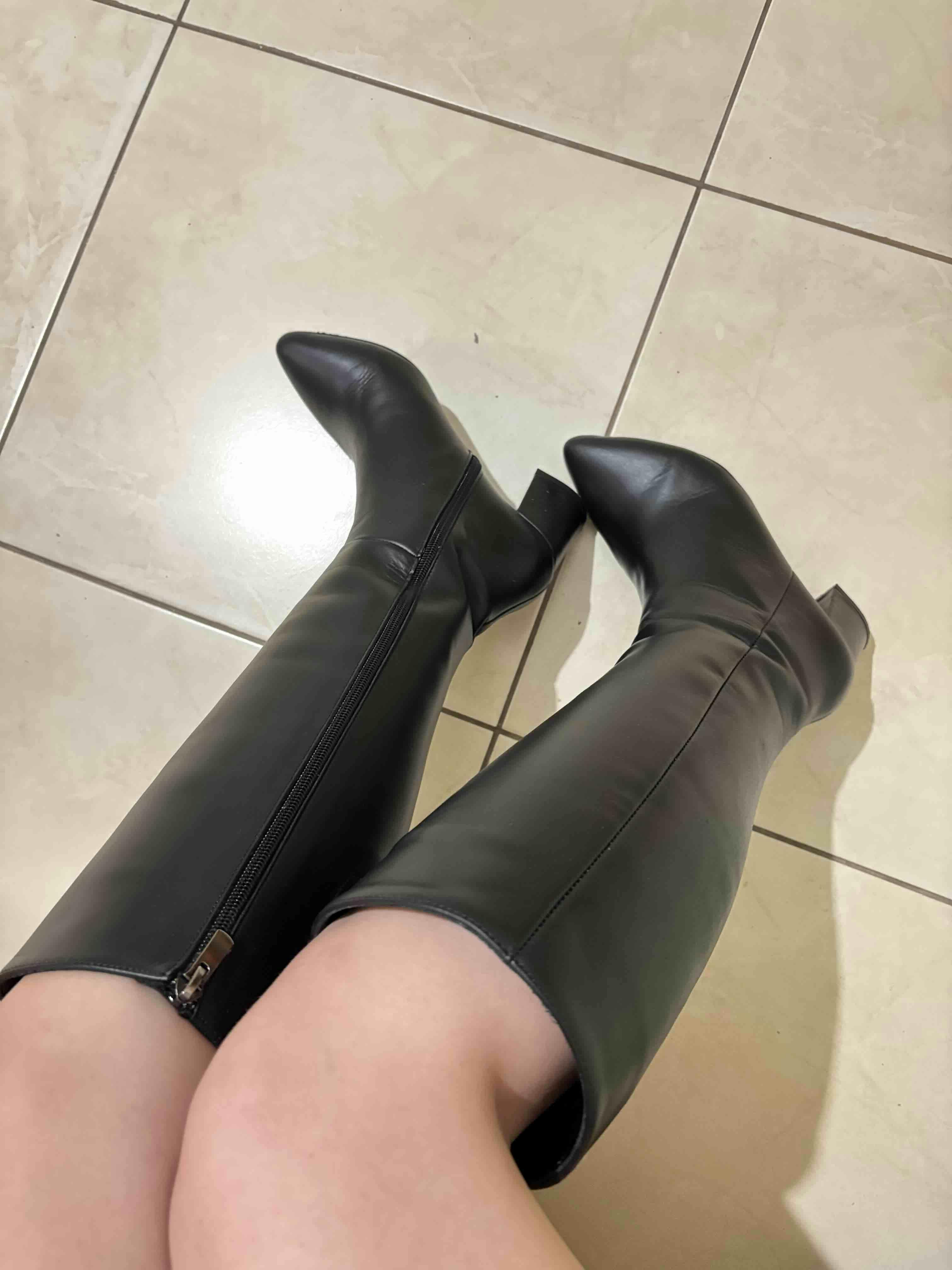 Velma Hakiki Deri Siyah Topuklu Kadın Çizme