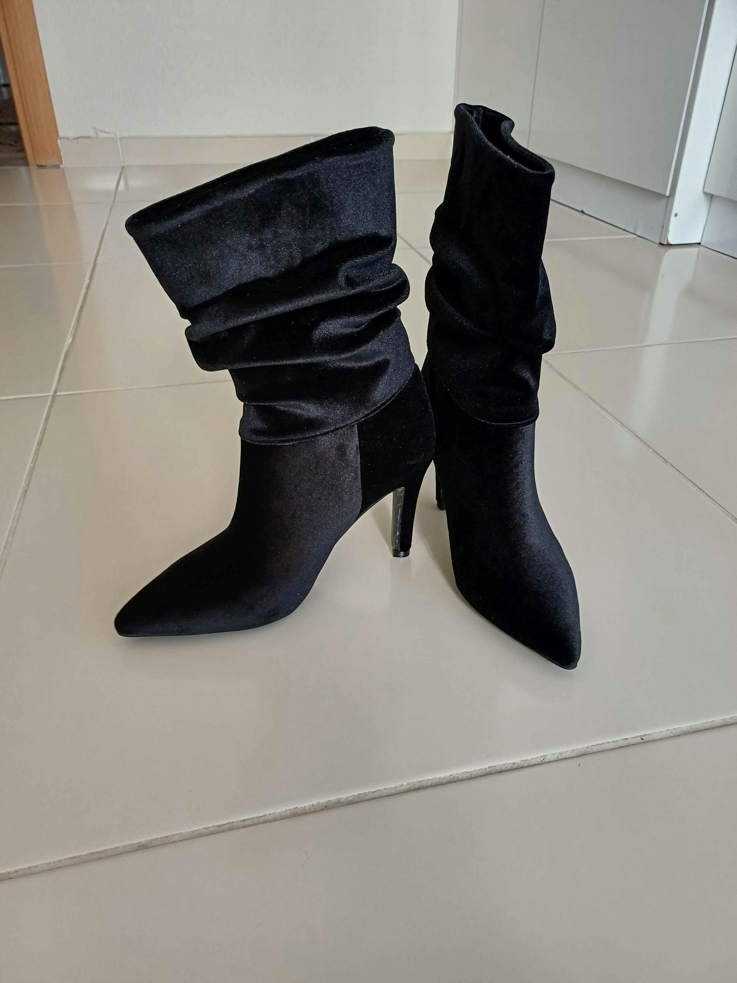 Wilma Siyah Kadife Körüklü İnce Topuklu Bot