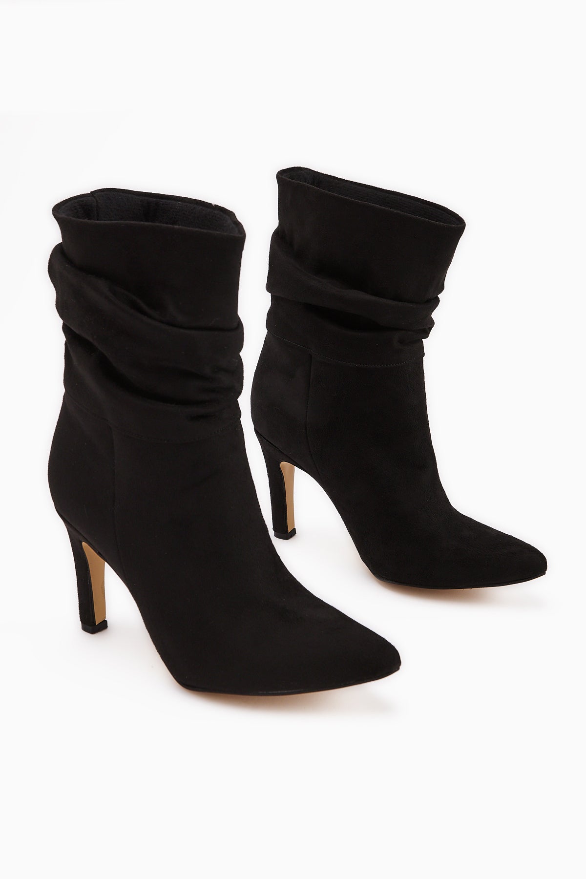 Wilma Siyah Süet Körüklü İnce Topuklu Bot