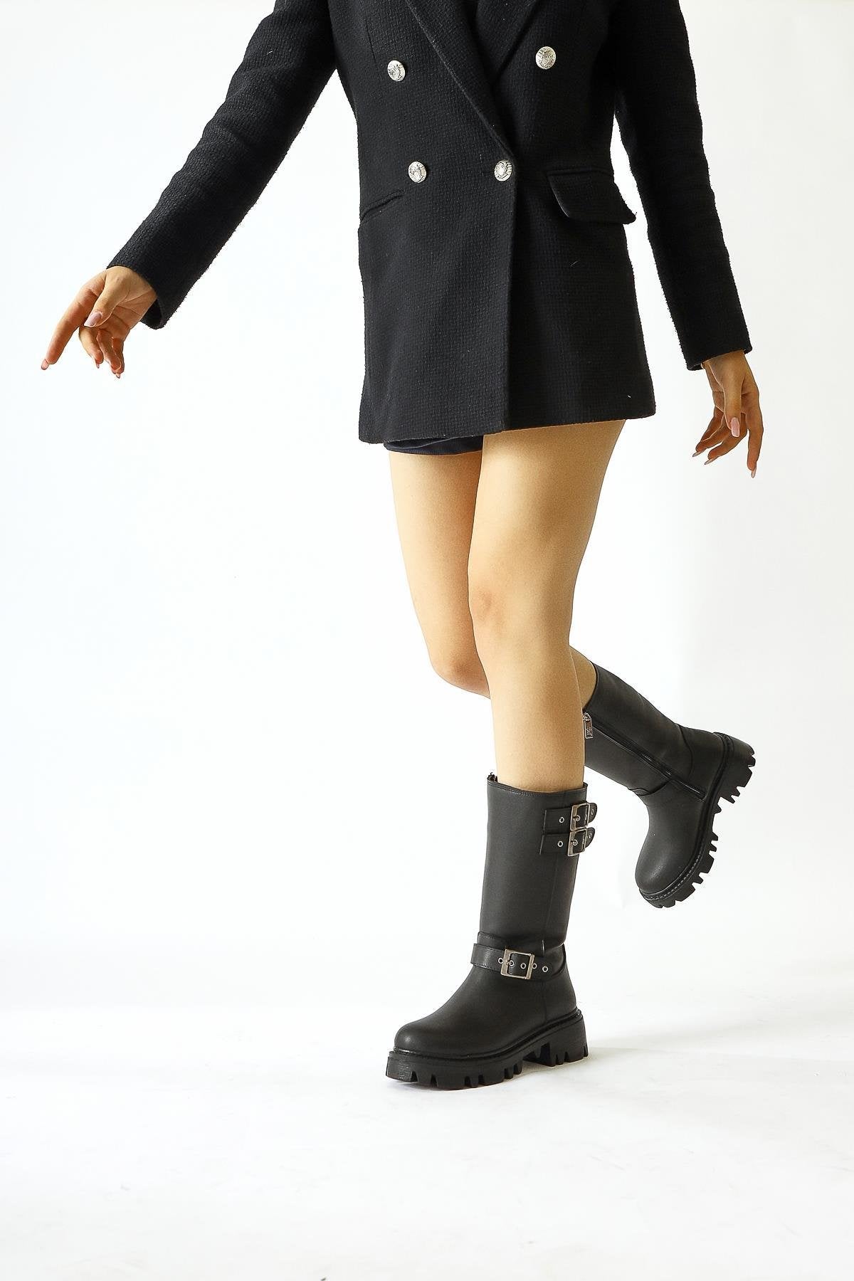 Winfred Siyah Kemer Detaylı Uzun Bot