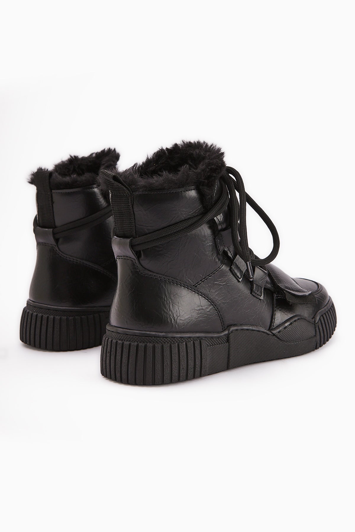 Yanisa Siyah Kürklü Bağcıklı Kadın Spor Bot