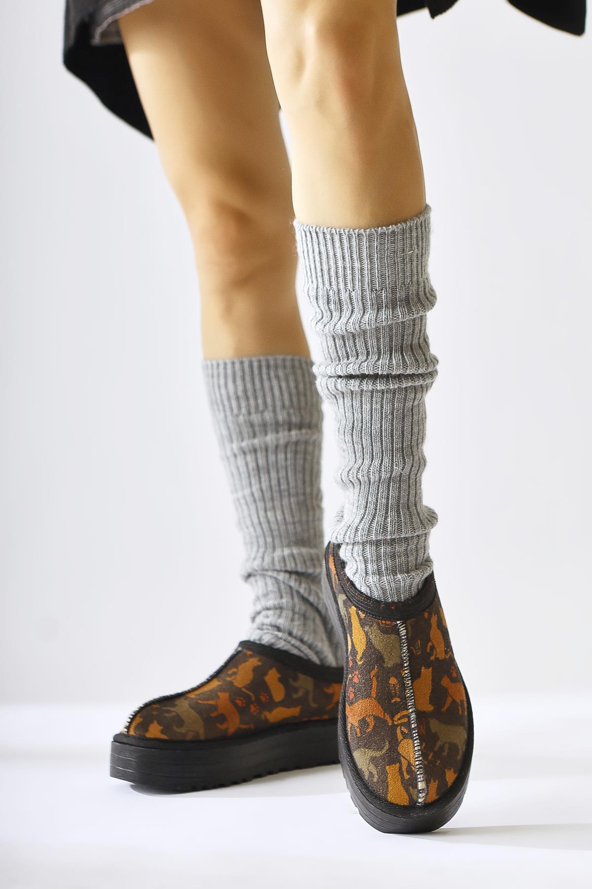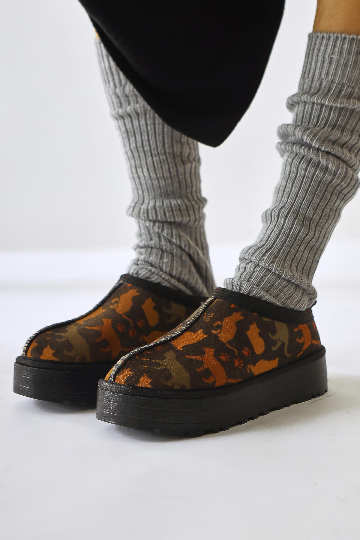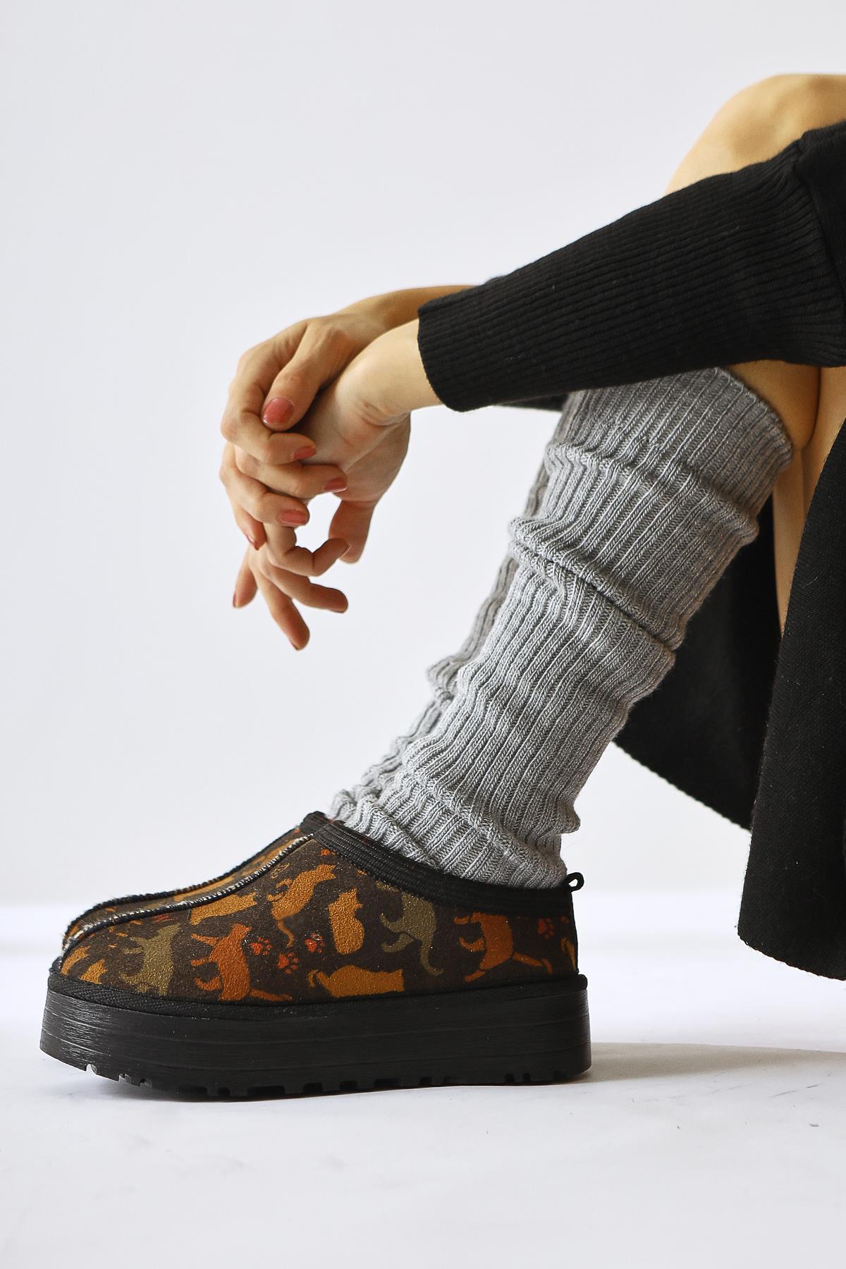 Yesica Siyah Süet Kedi Desenli İçi Kürklü Kısa Bot