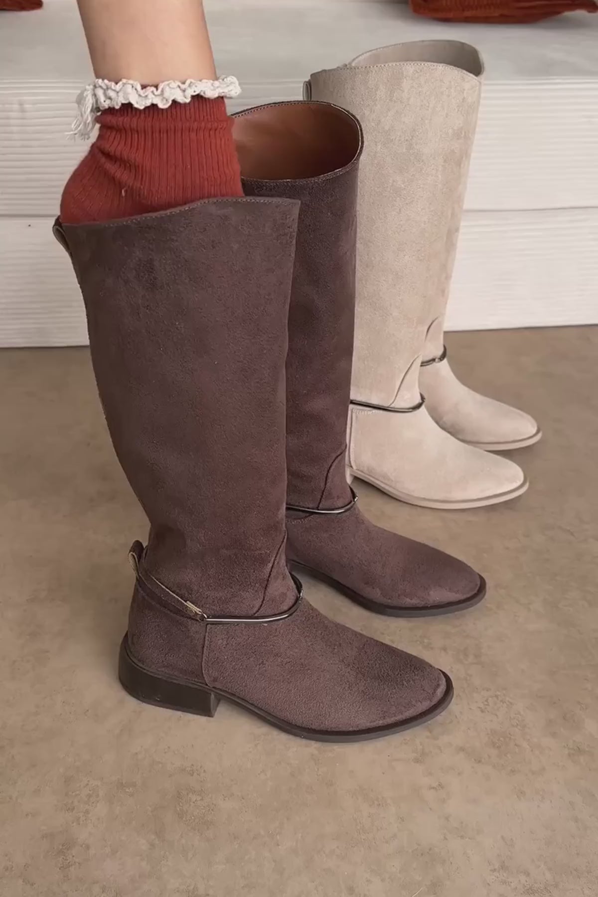 Zeina Kahve Süet Tokalı Kadın Çizme